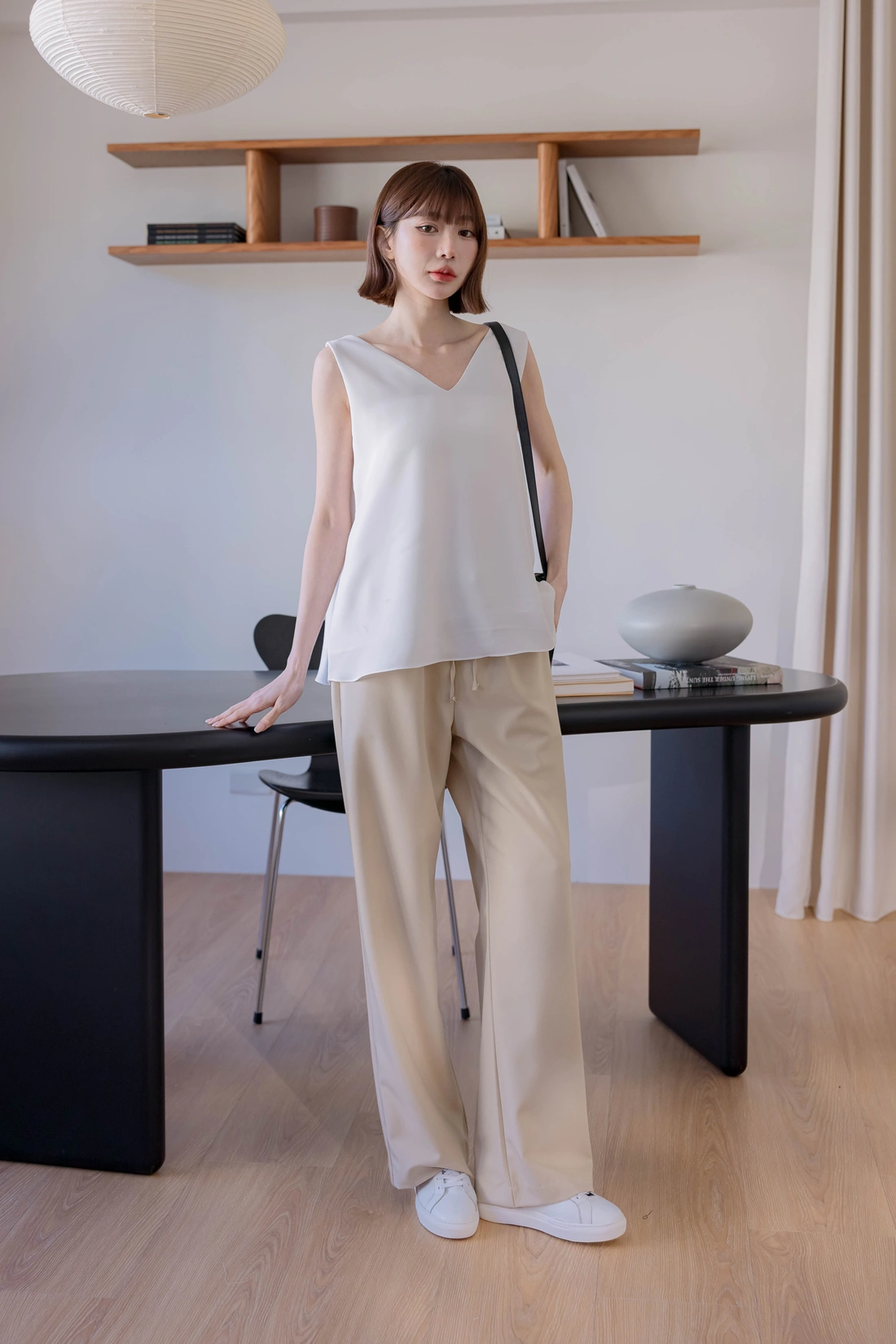 可調節式鬆緊腰圍/類西裝布料不易皺/基礎百搭色