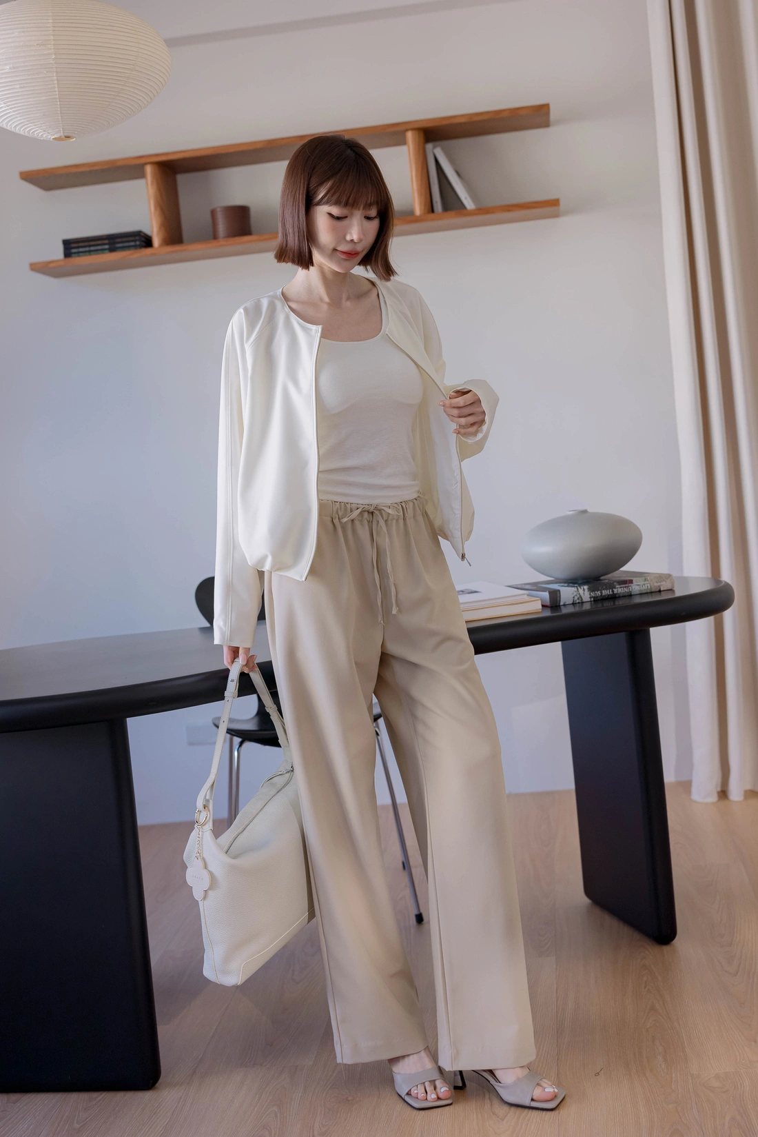 • 正韓製 奶霜系柔軟無領外套