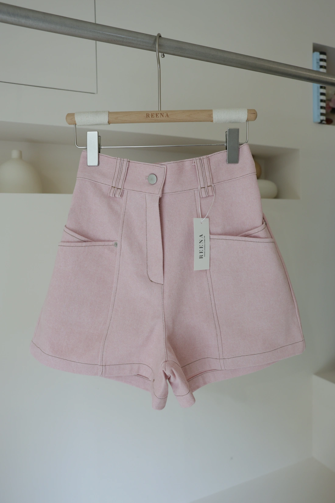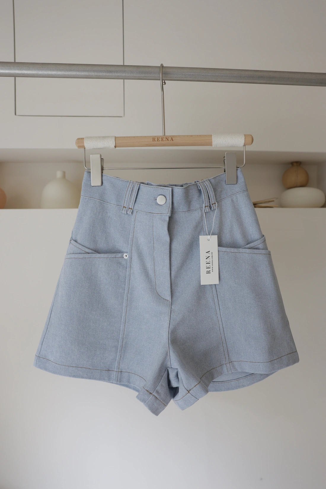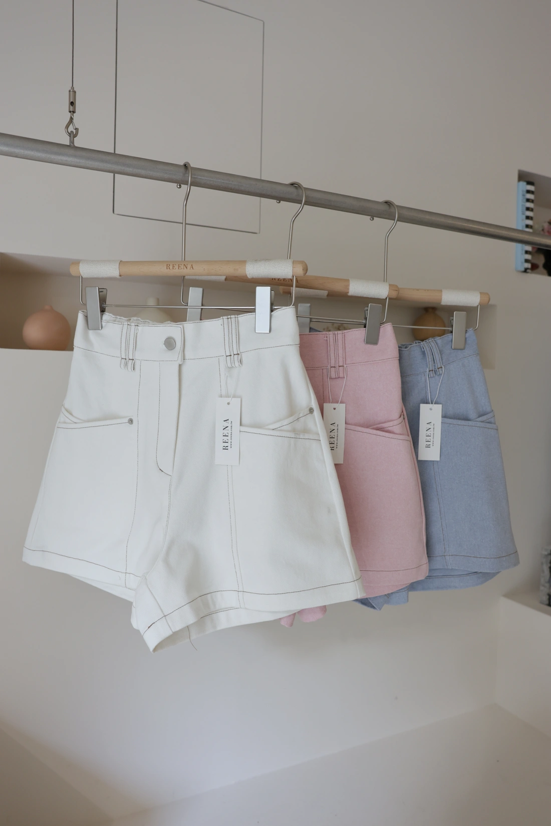 正韓製 後鬆緊口袋交叉牛仔短褲