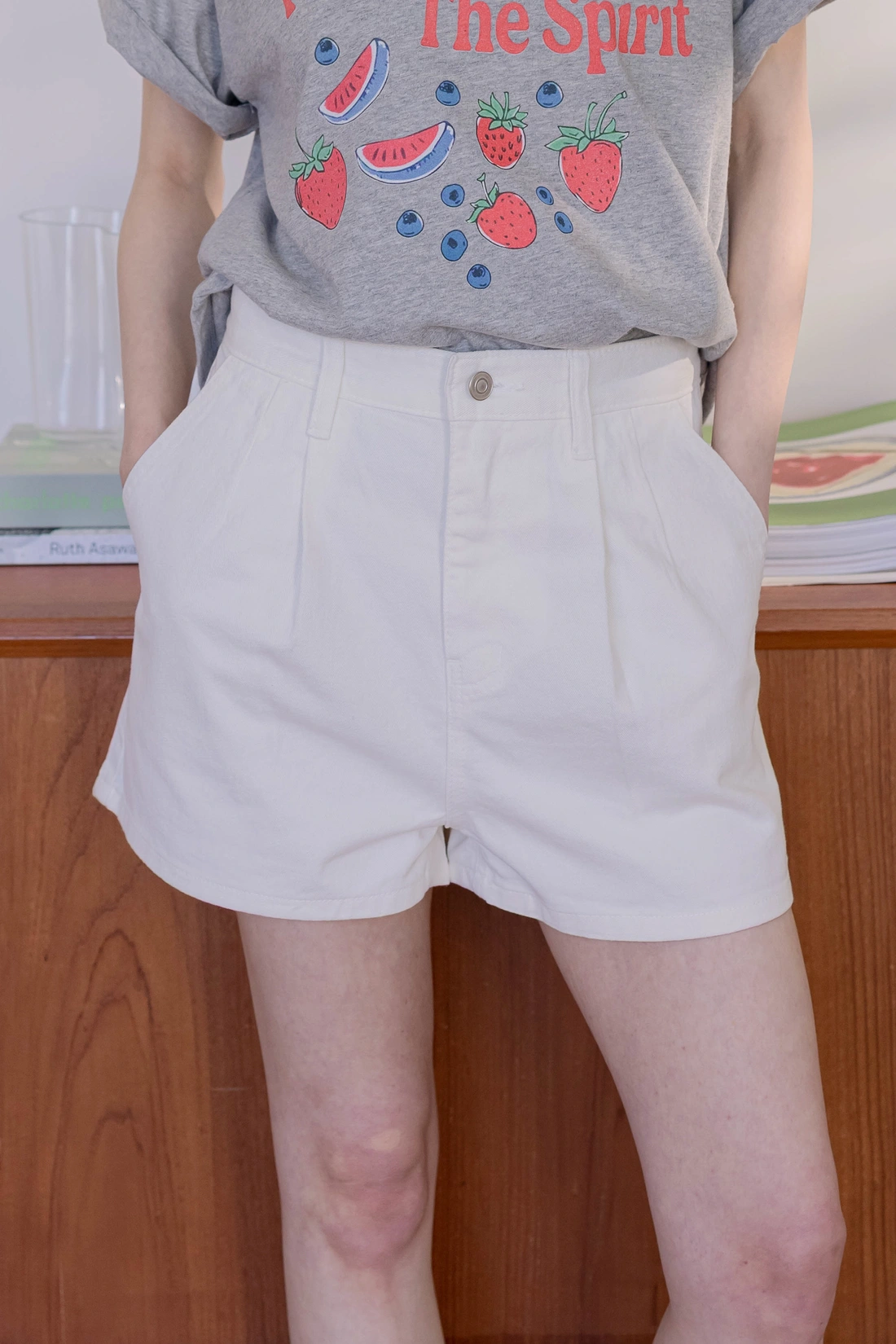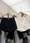 牛仔斜紋布料/前打褶修飾小腹/黑白基本色