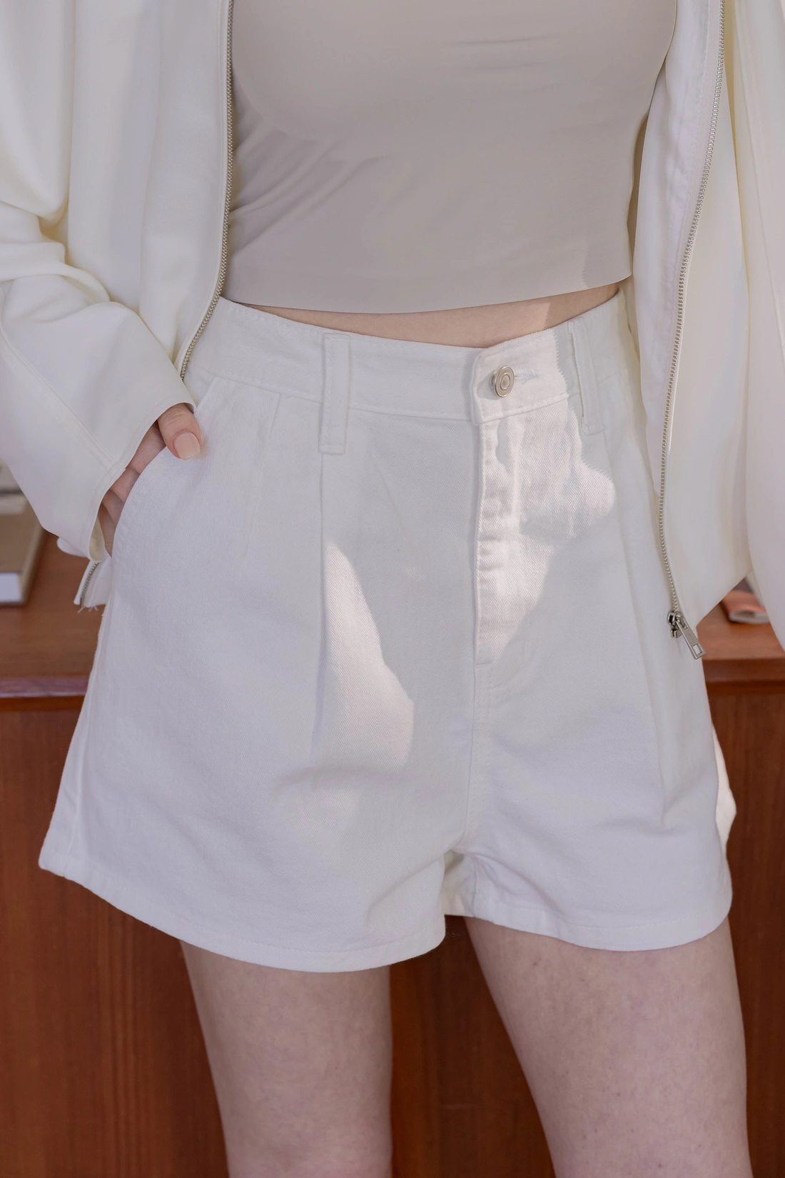 前方斜口袋 後側裝飾性口袋/顯瘦A字版型