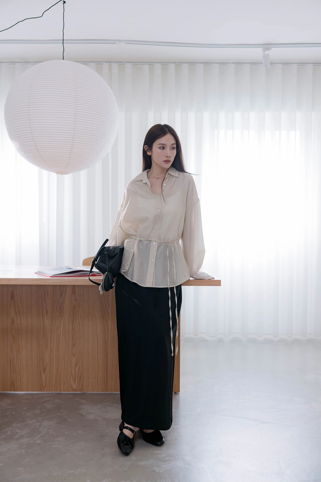 後拉鍊設計/內側有半截內裡/無開衩無後鬆緊