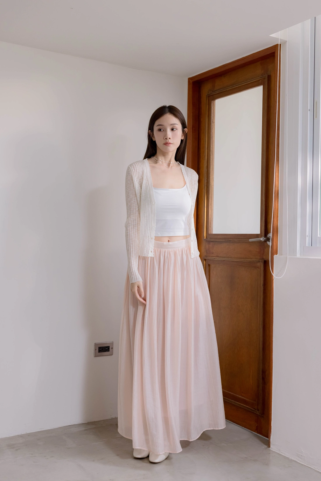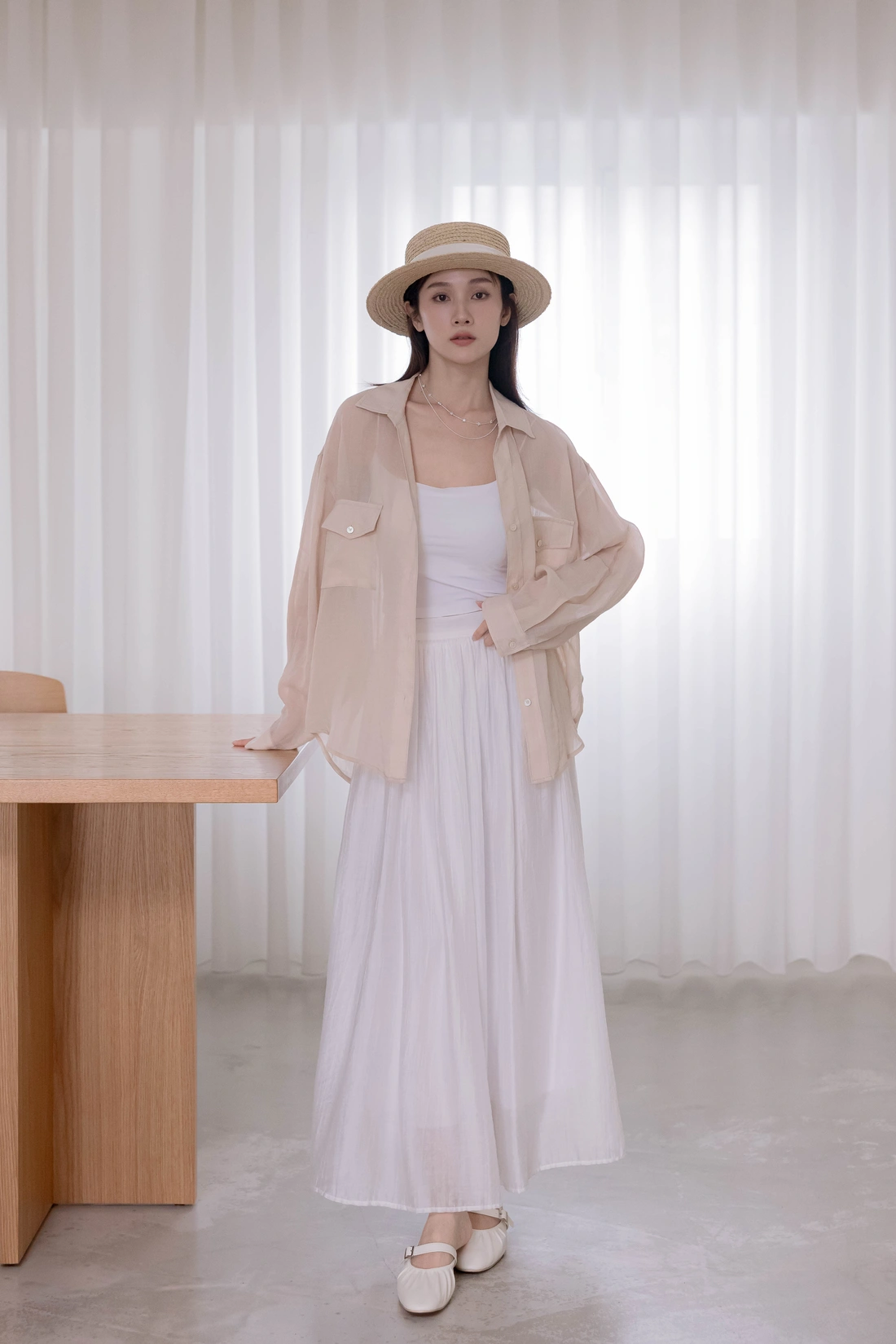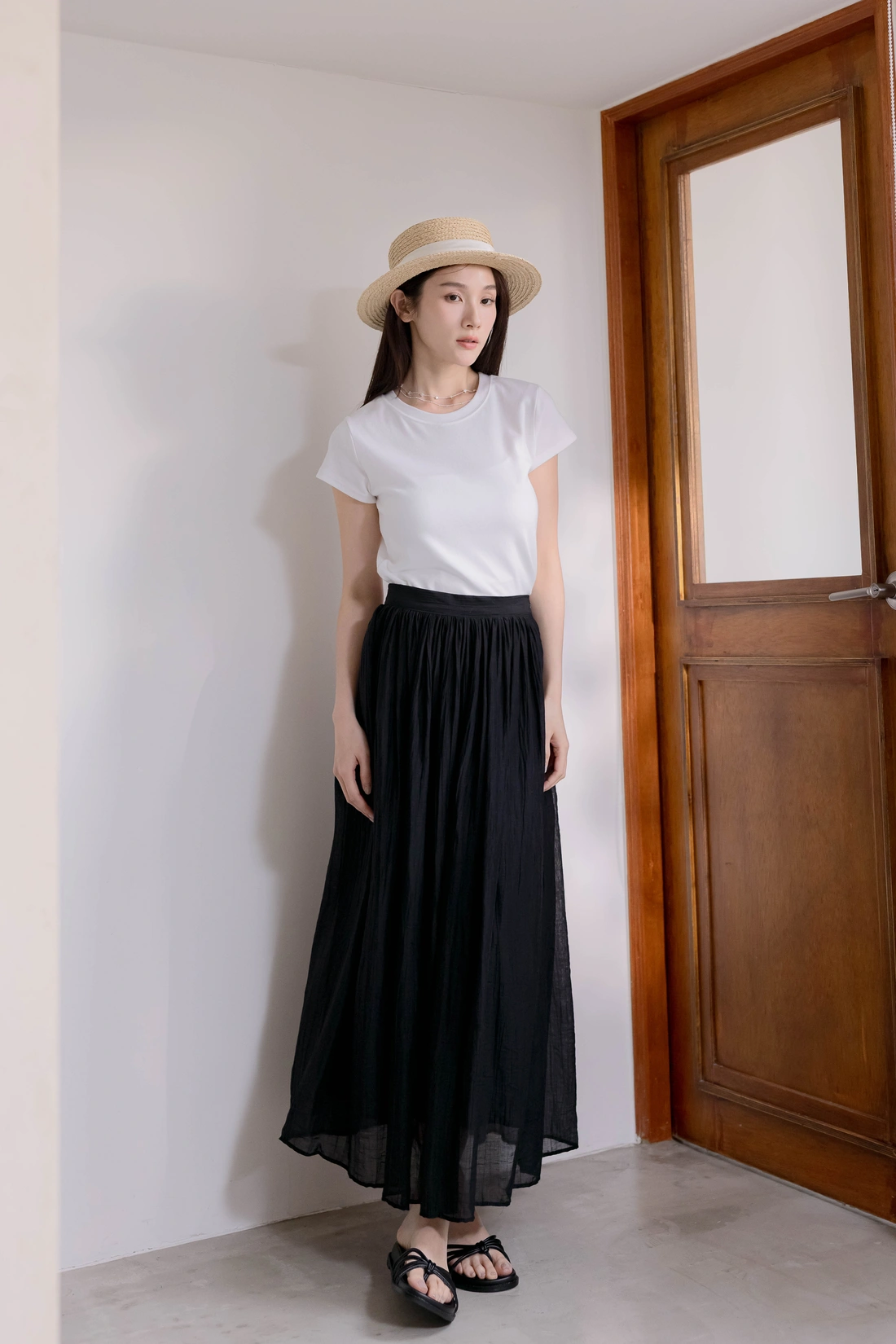 細百褶設計/後鬆緊腰圍/側拉鍊