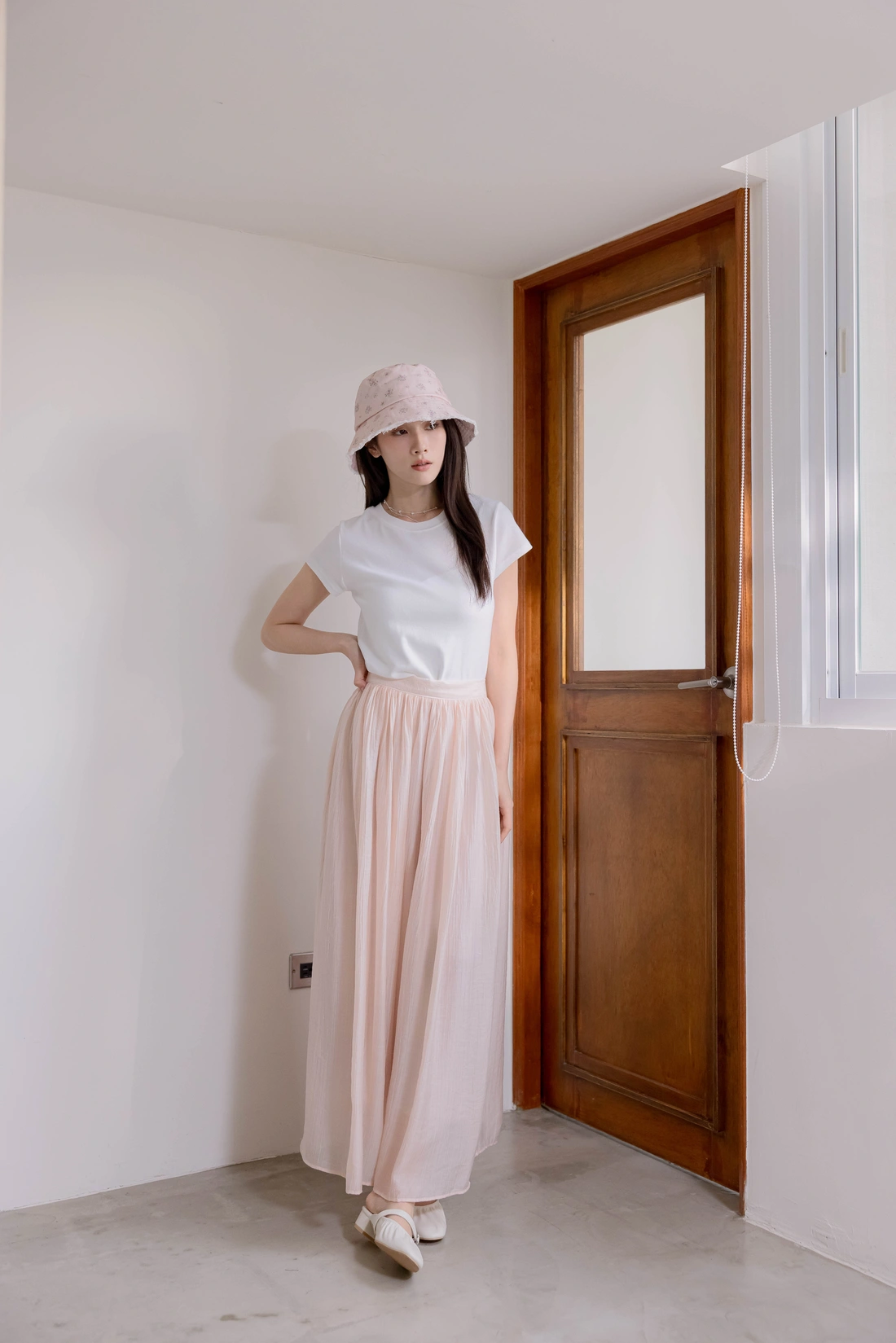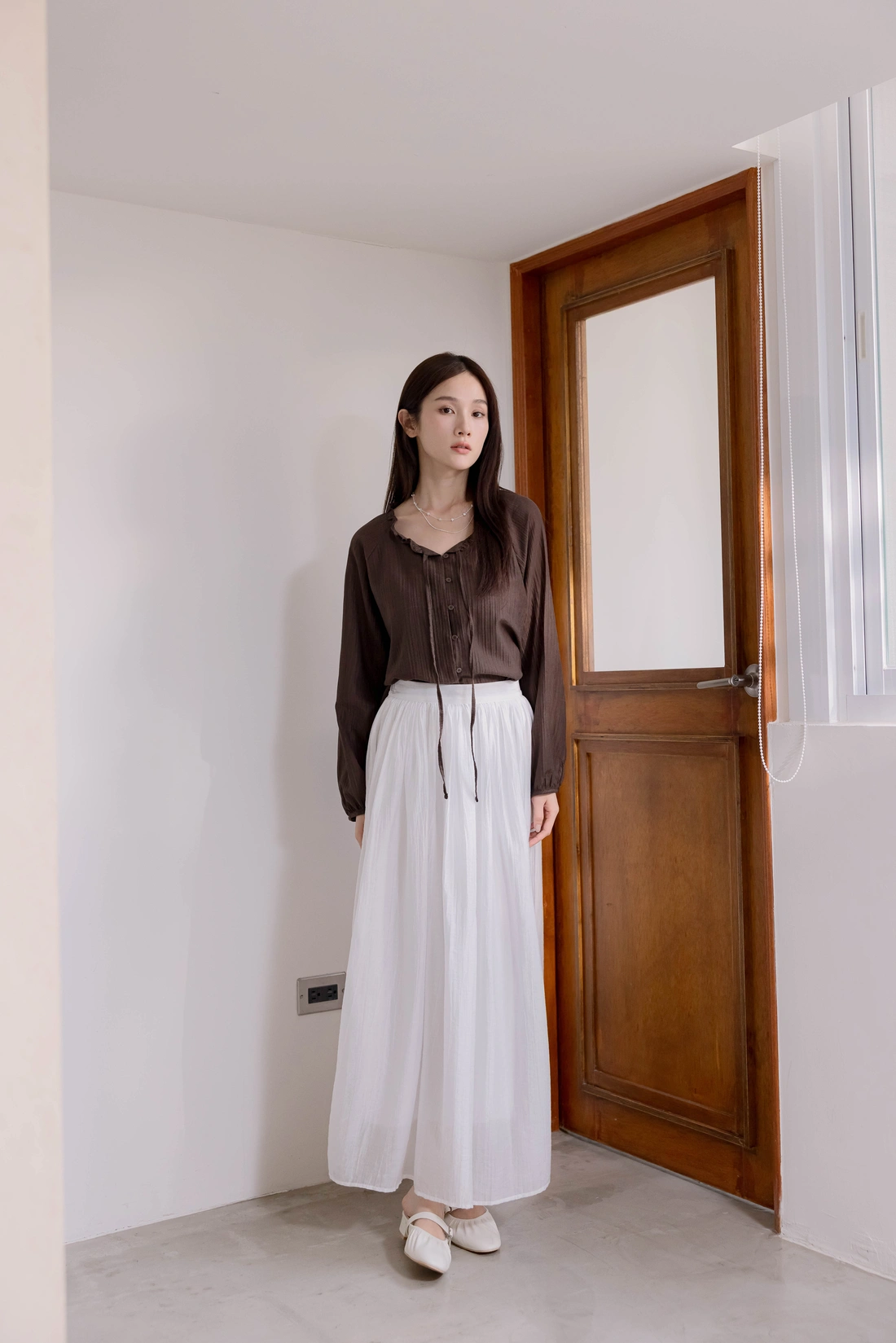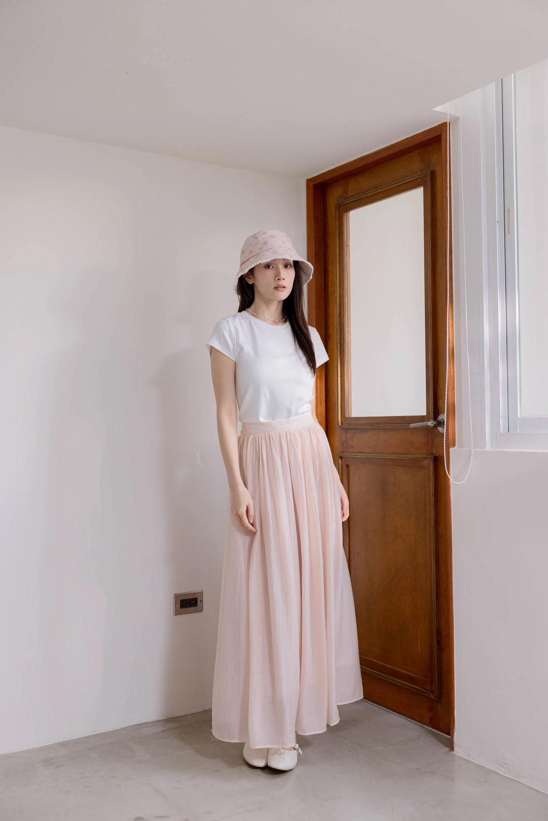 細百褶設計/後鬆緊腰圍/側拉鍊
