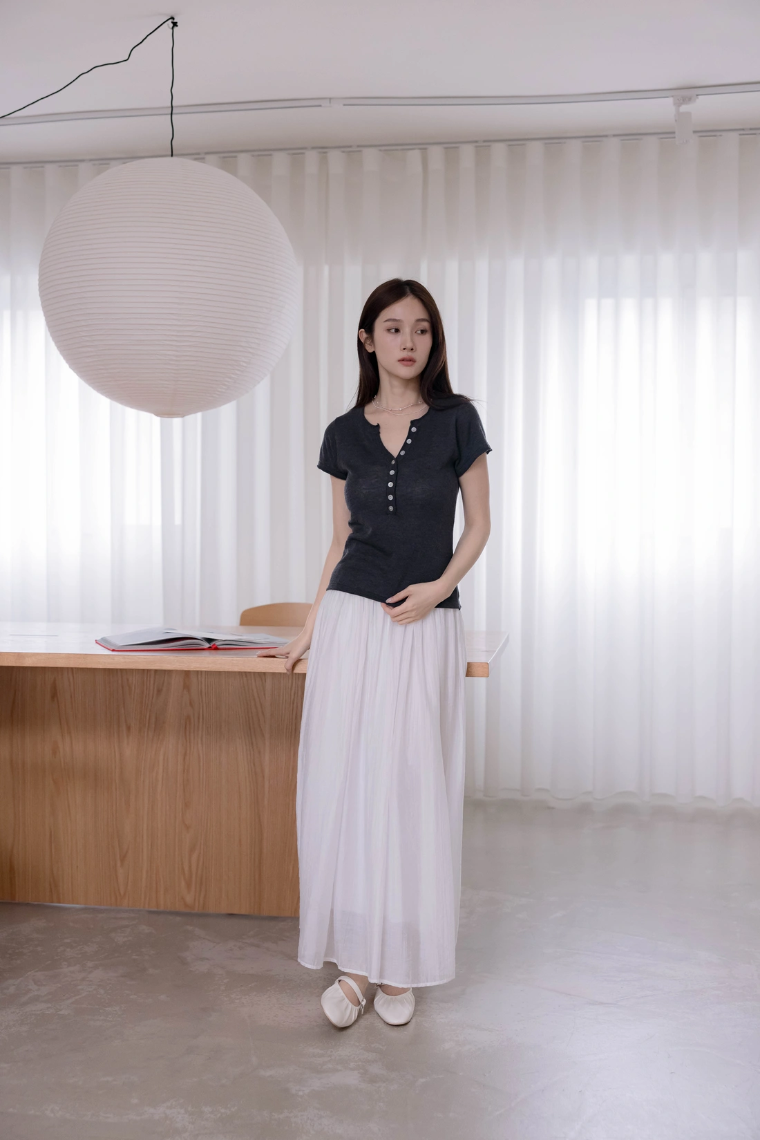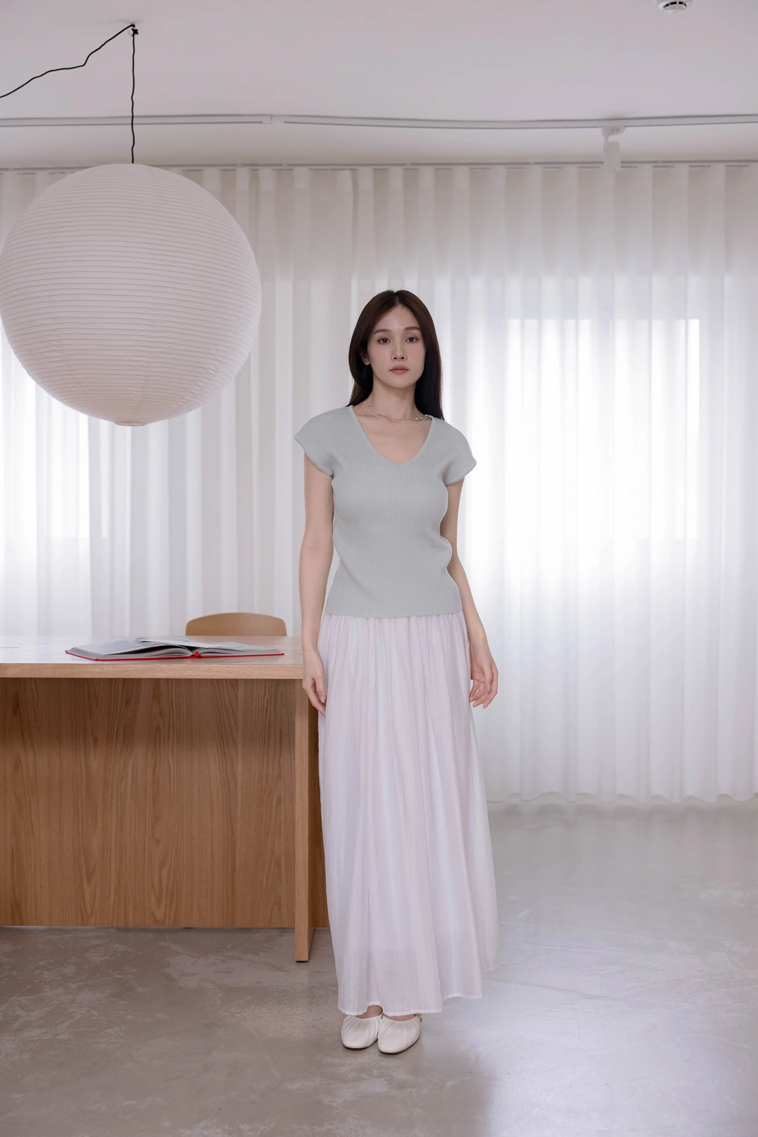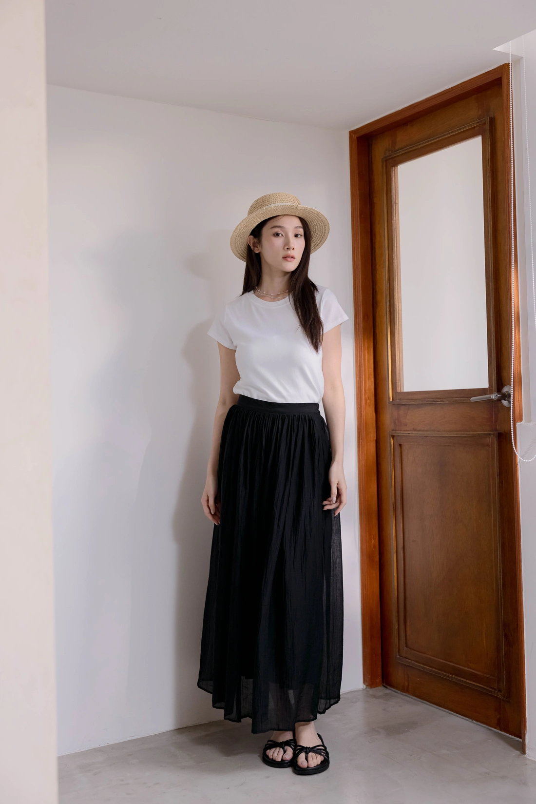 細百褶設計/後鬆緊腰圍/側拉鍊