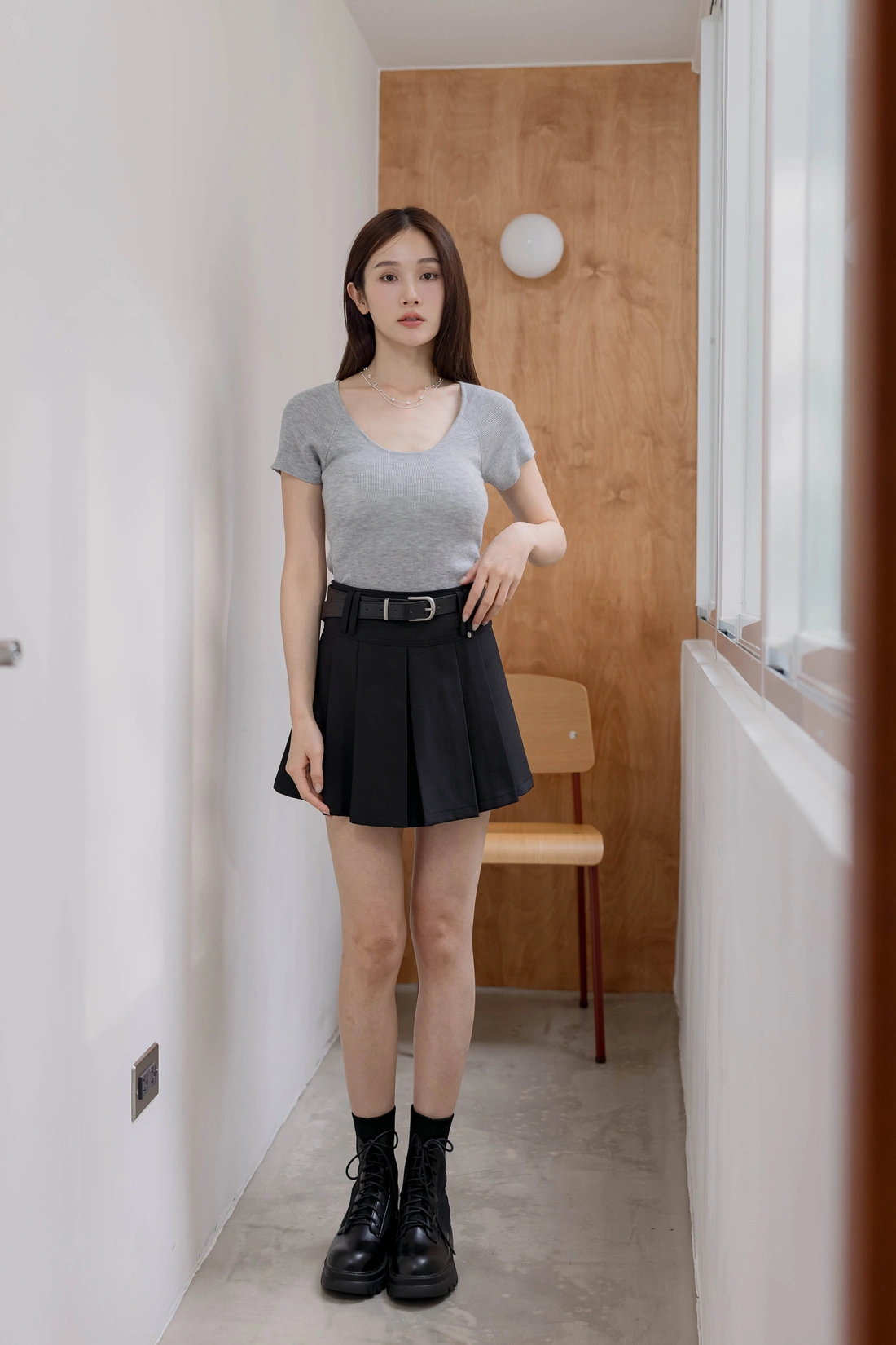 寬百褶版型/內裡安全褲/雙裙耳設計