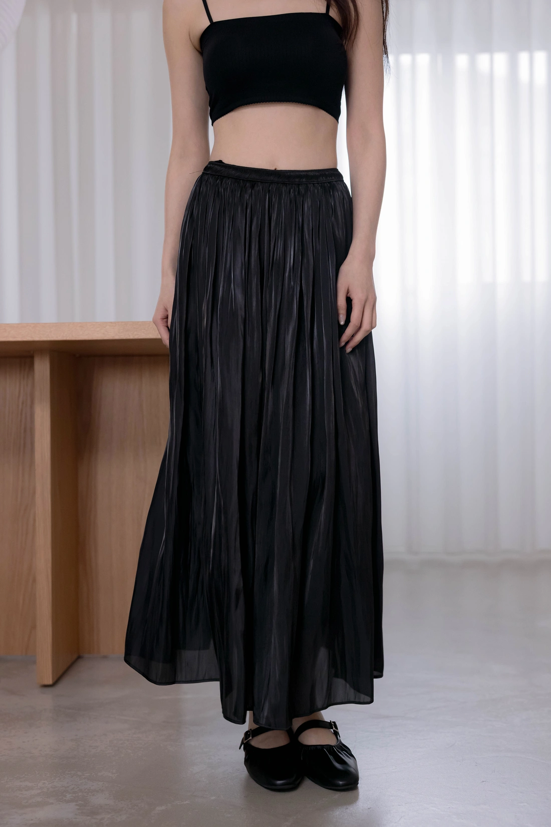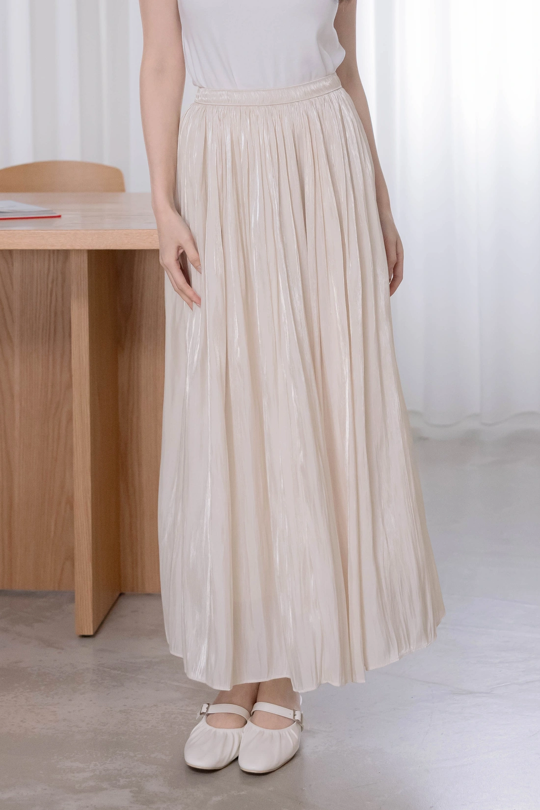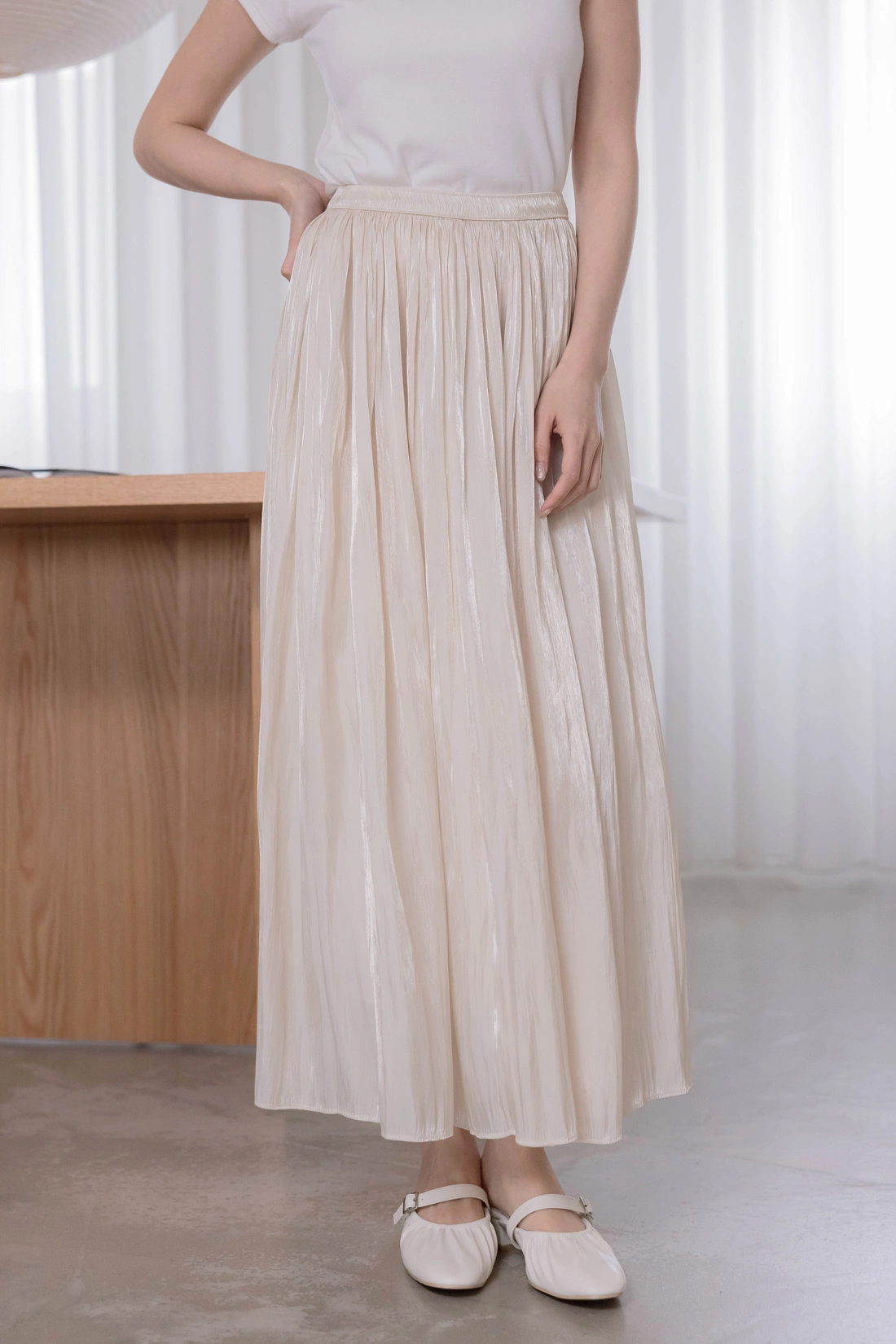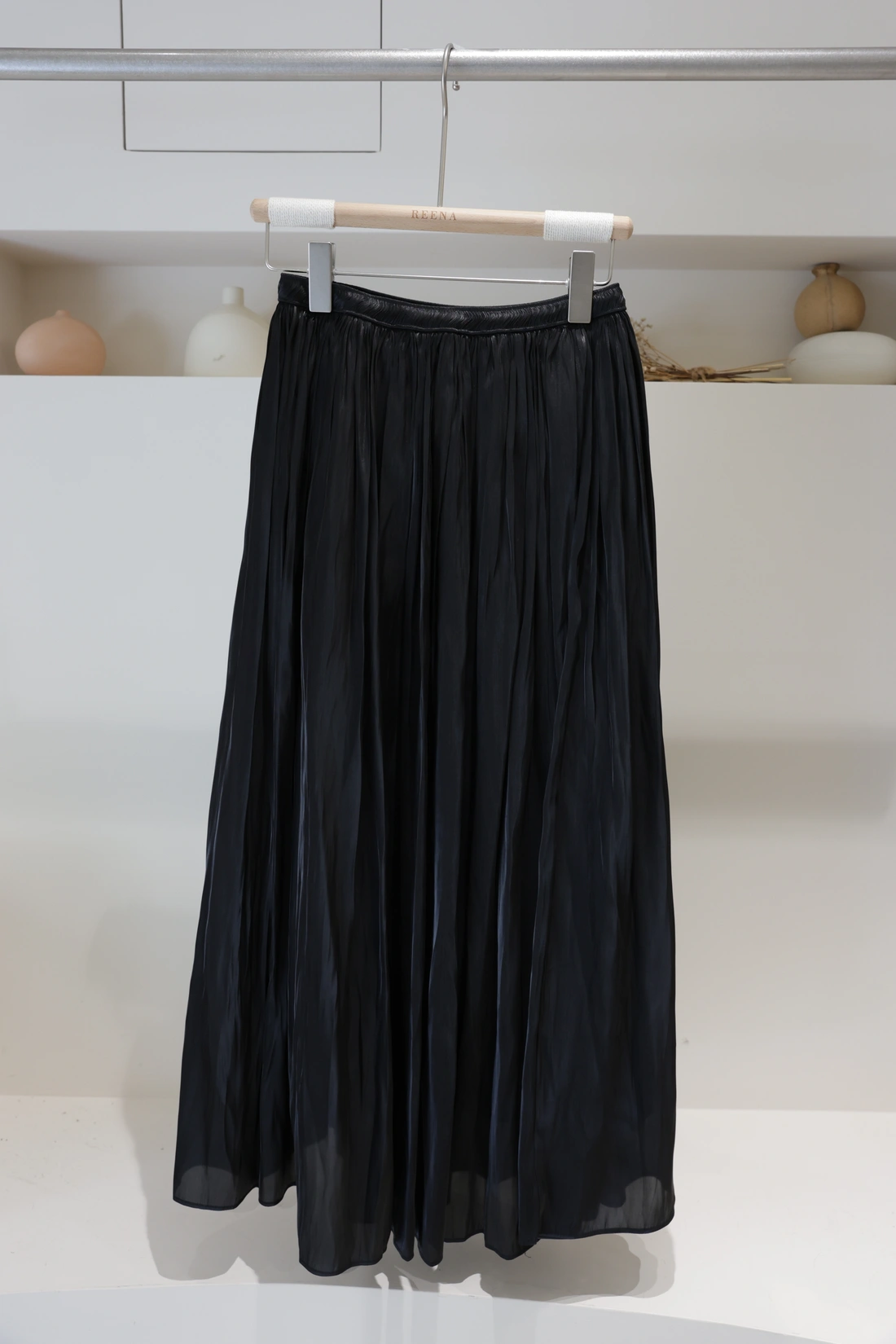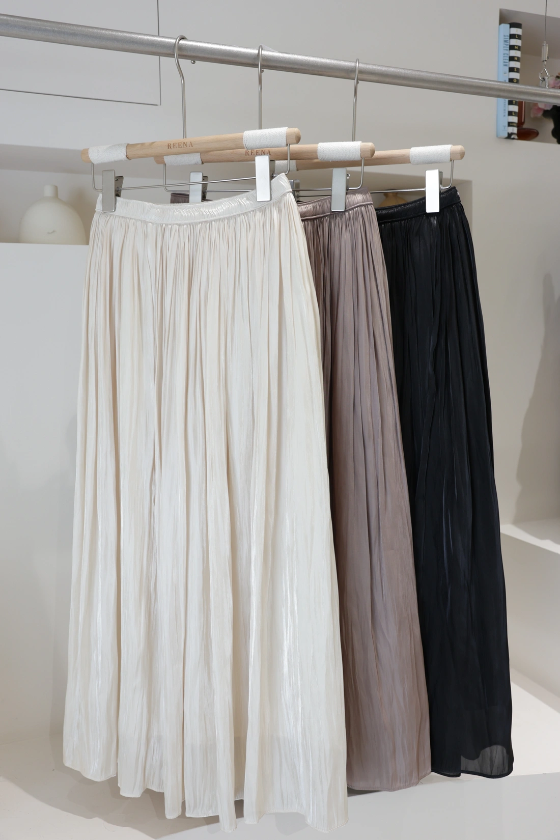 內裡長度約九分/細打褶設計/絲綢緞光感