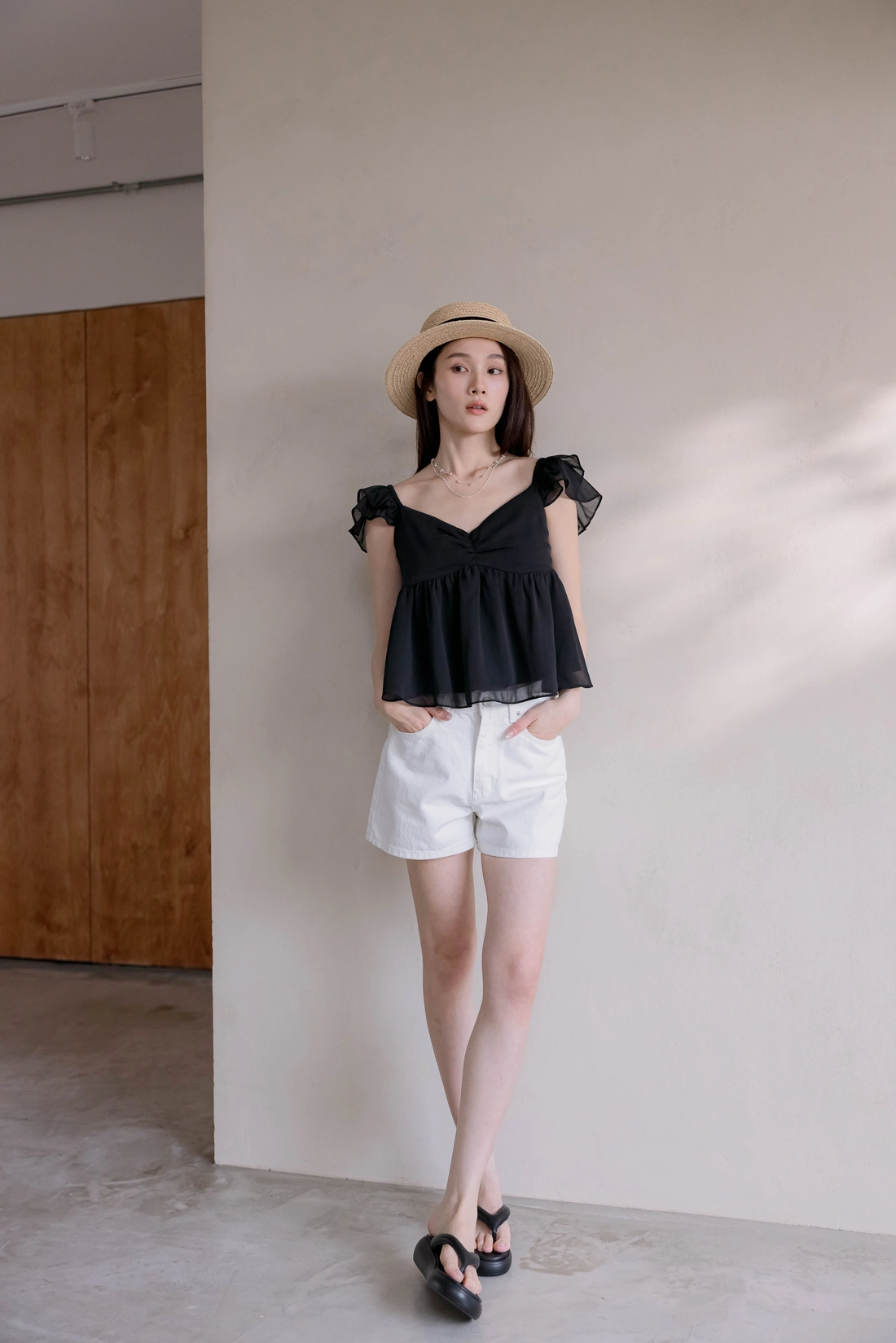 人手一件素面短褲/黑白基本兩色/牛仔斜紋布料