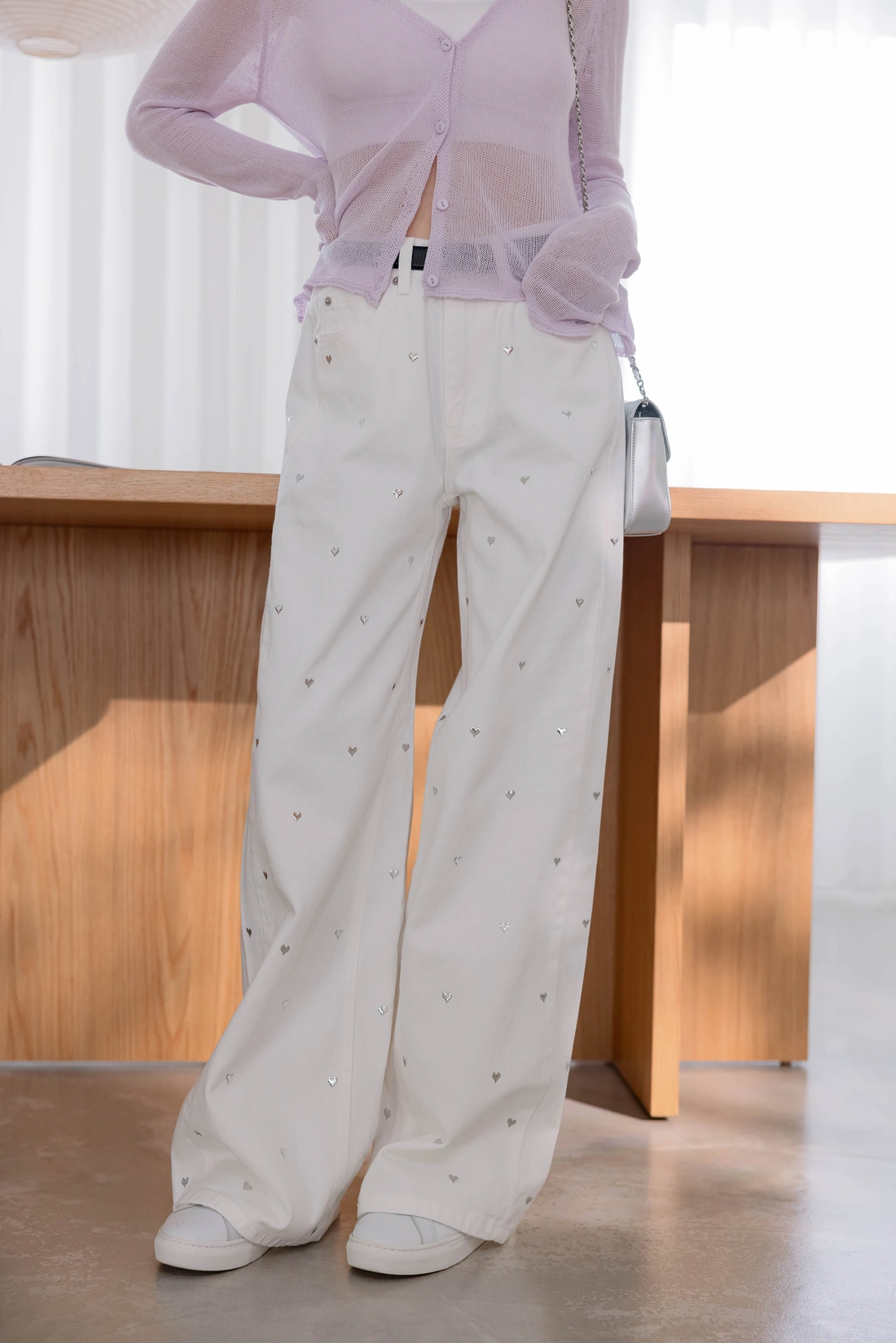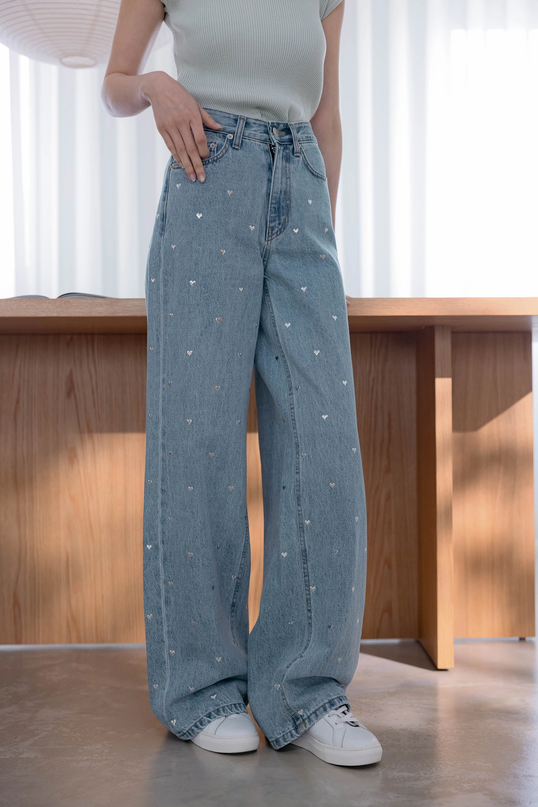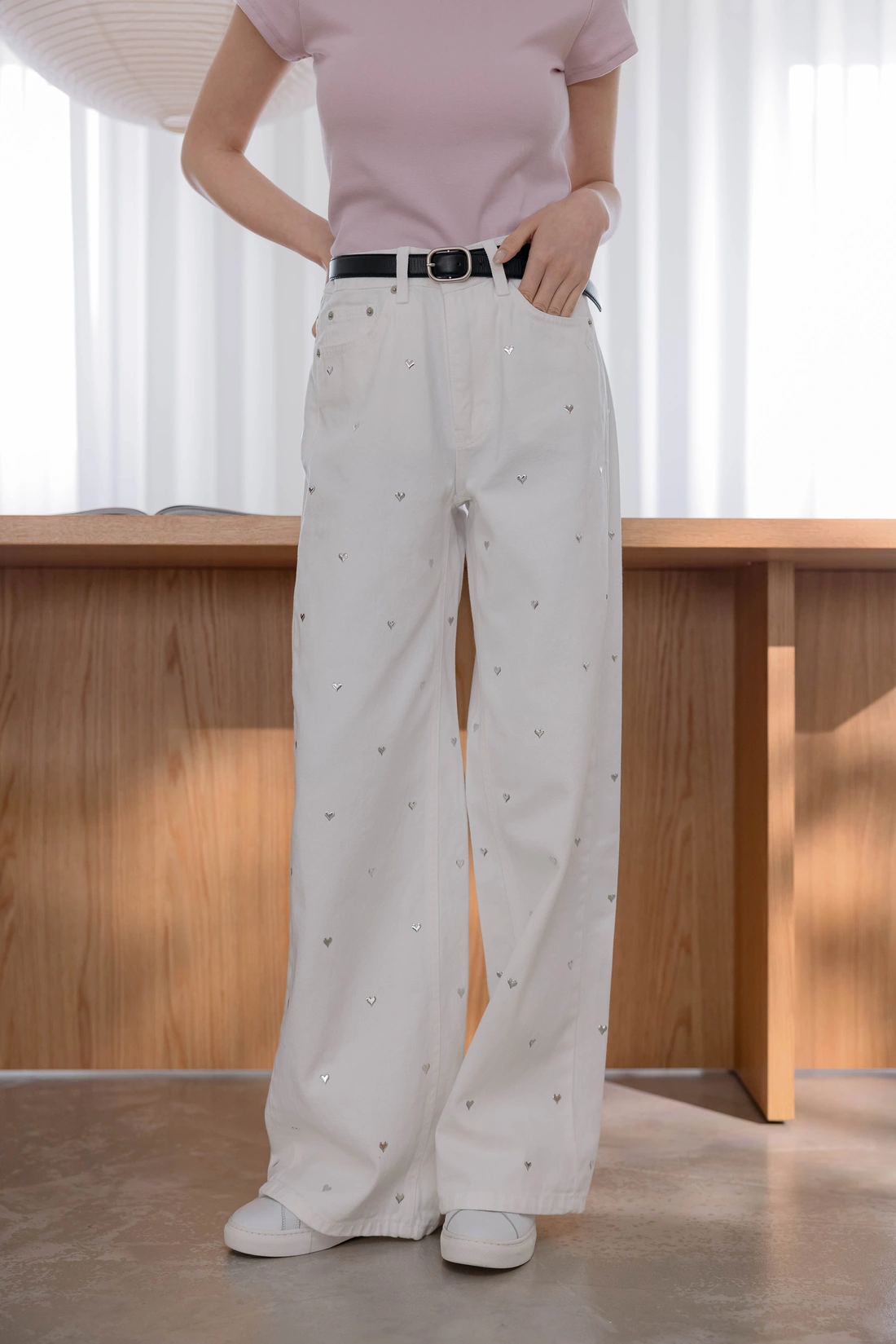 正韓製 設計款 愛心挺料寬褲