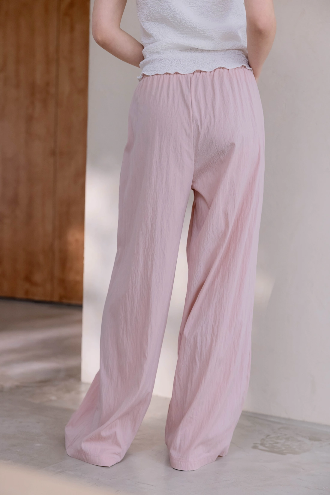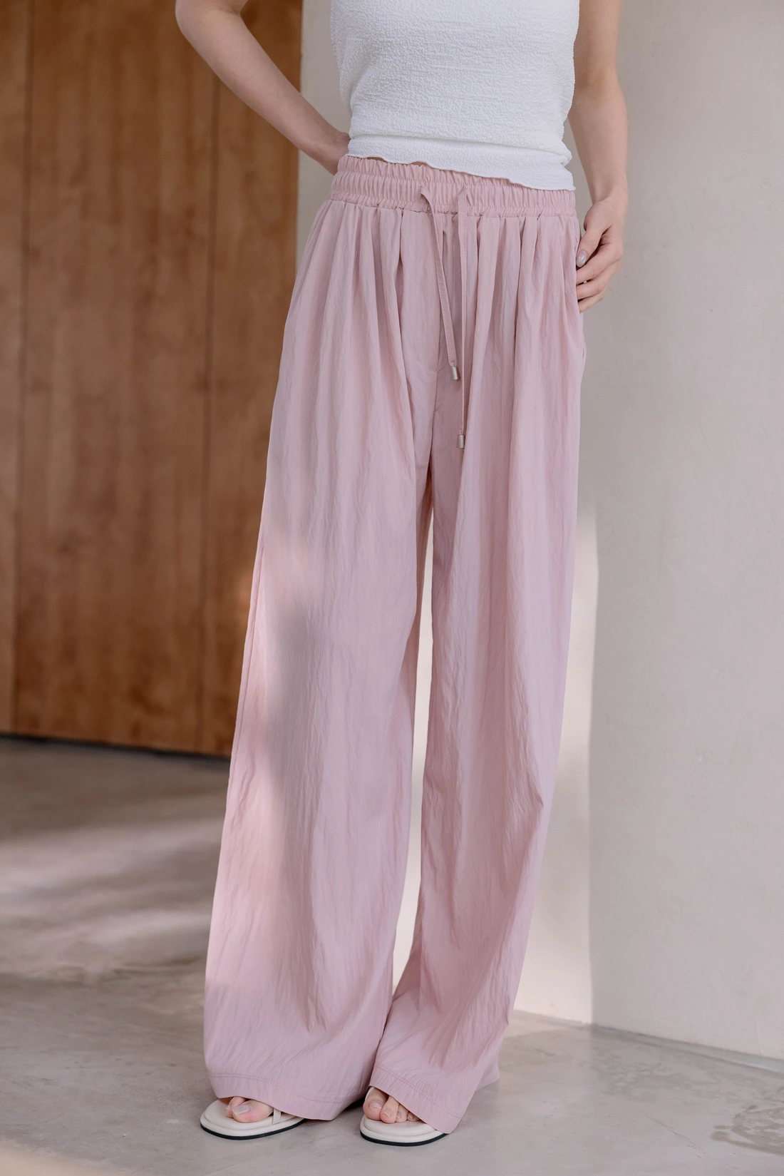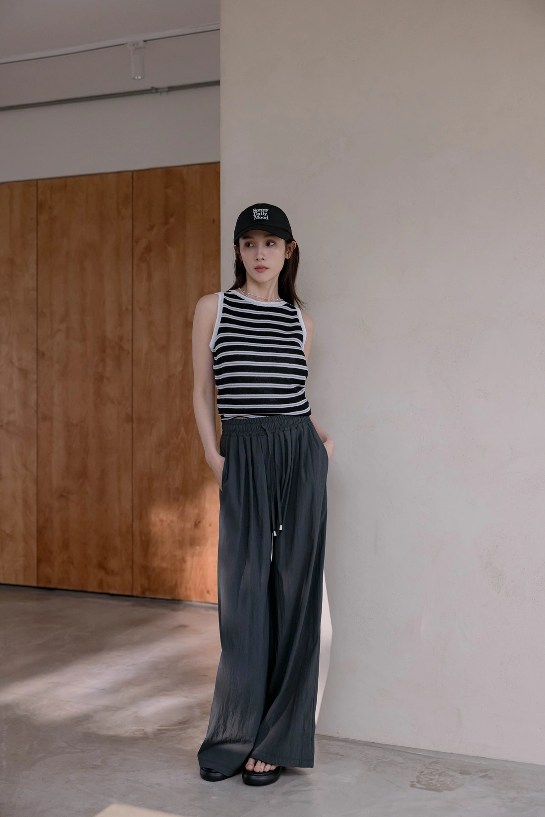 可調節式鬆緊腰圍/兩側隱藏式口袋/前壓摺設計