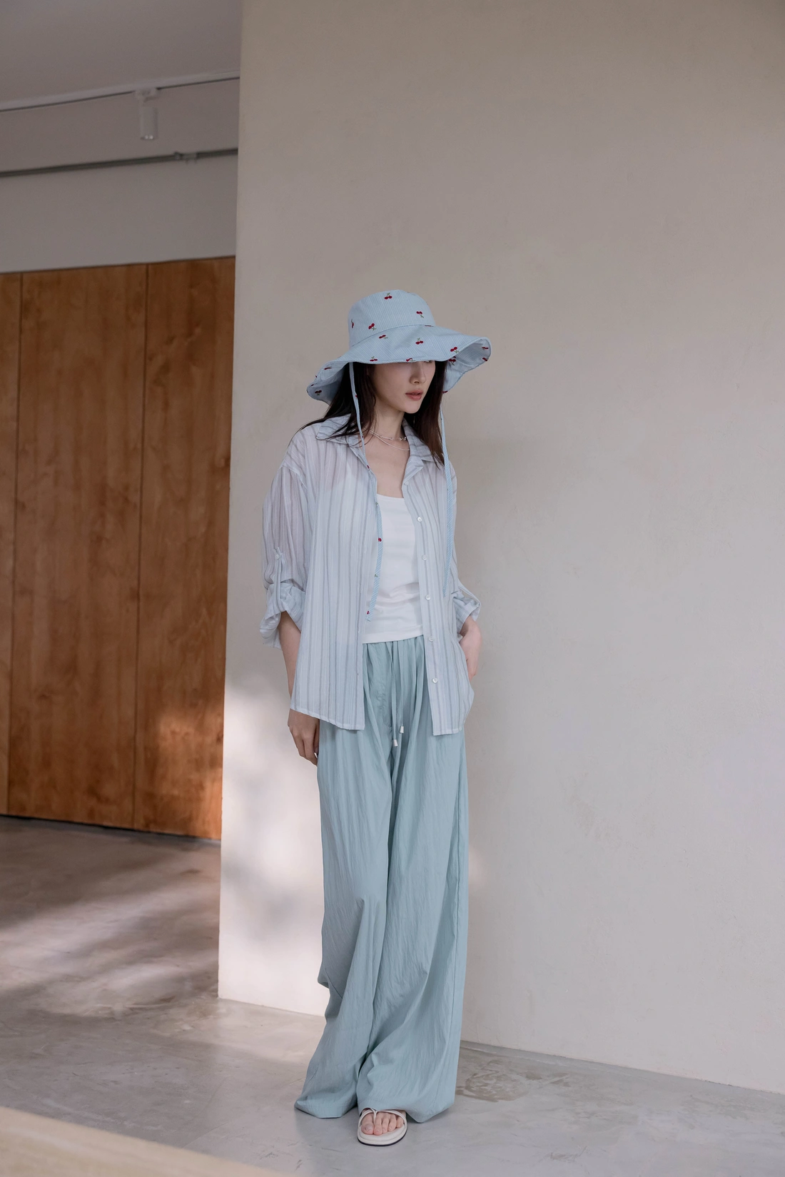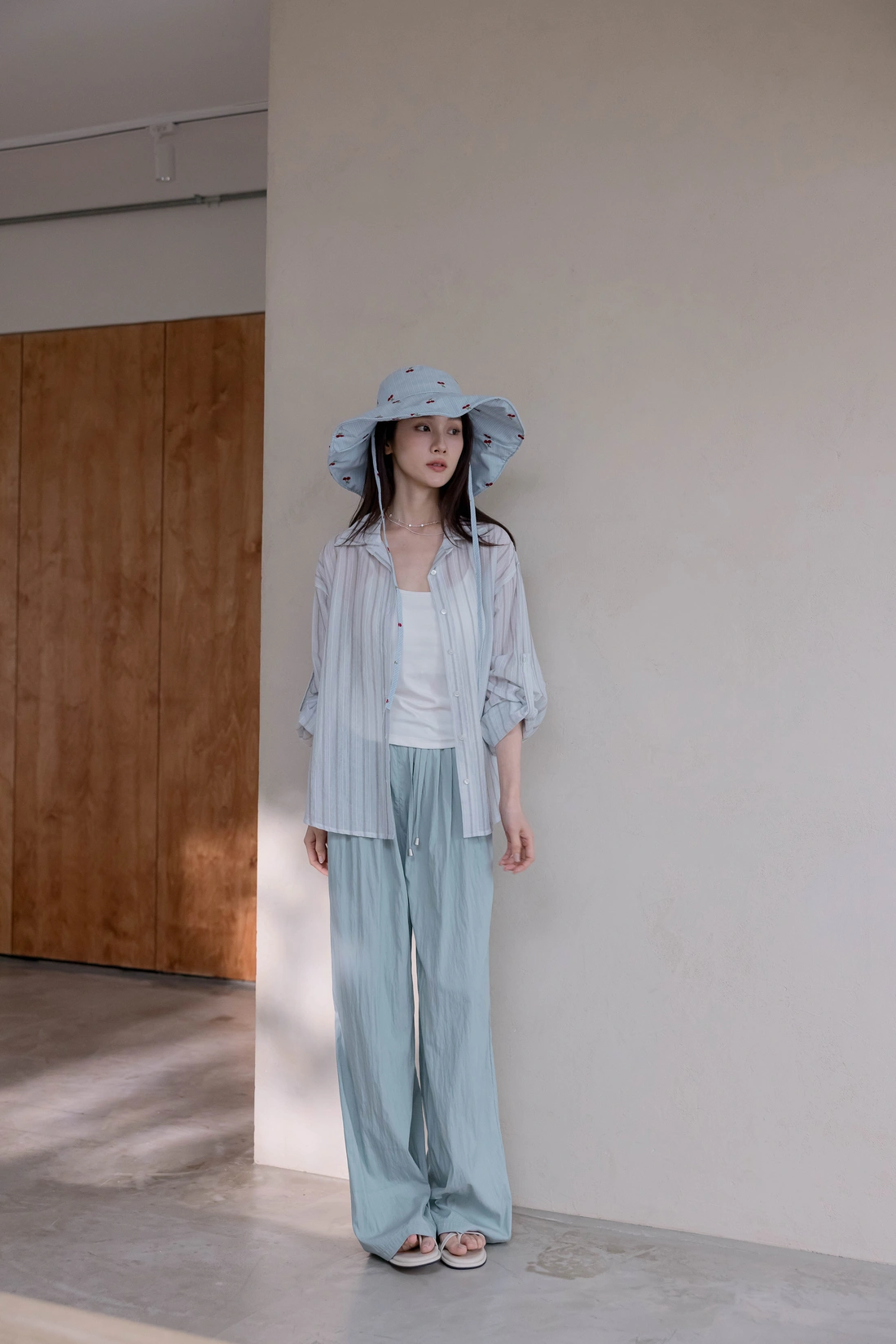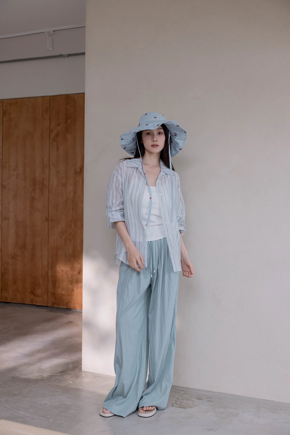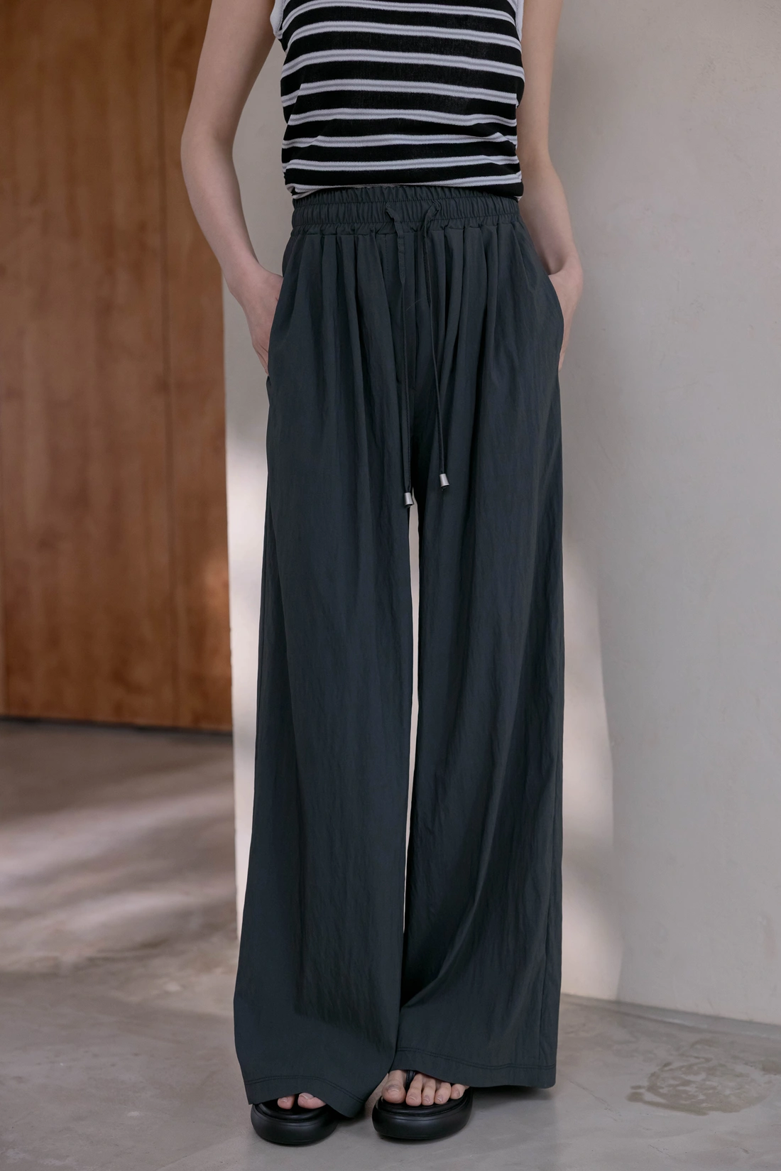 可調節式鬆緊腰圍/兩側隱藏式口袋/前壓摺設計