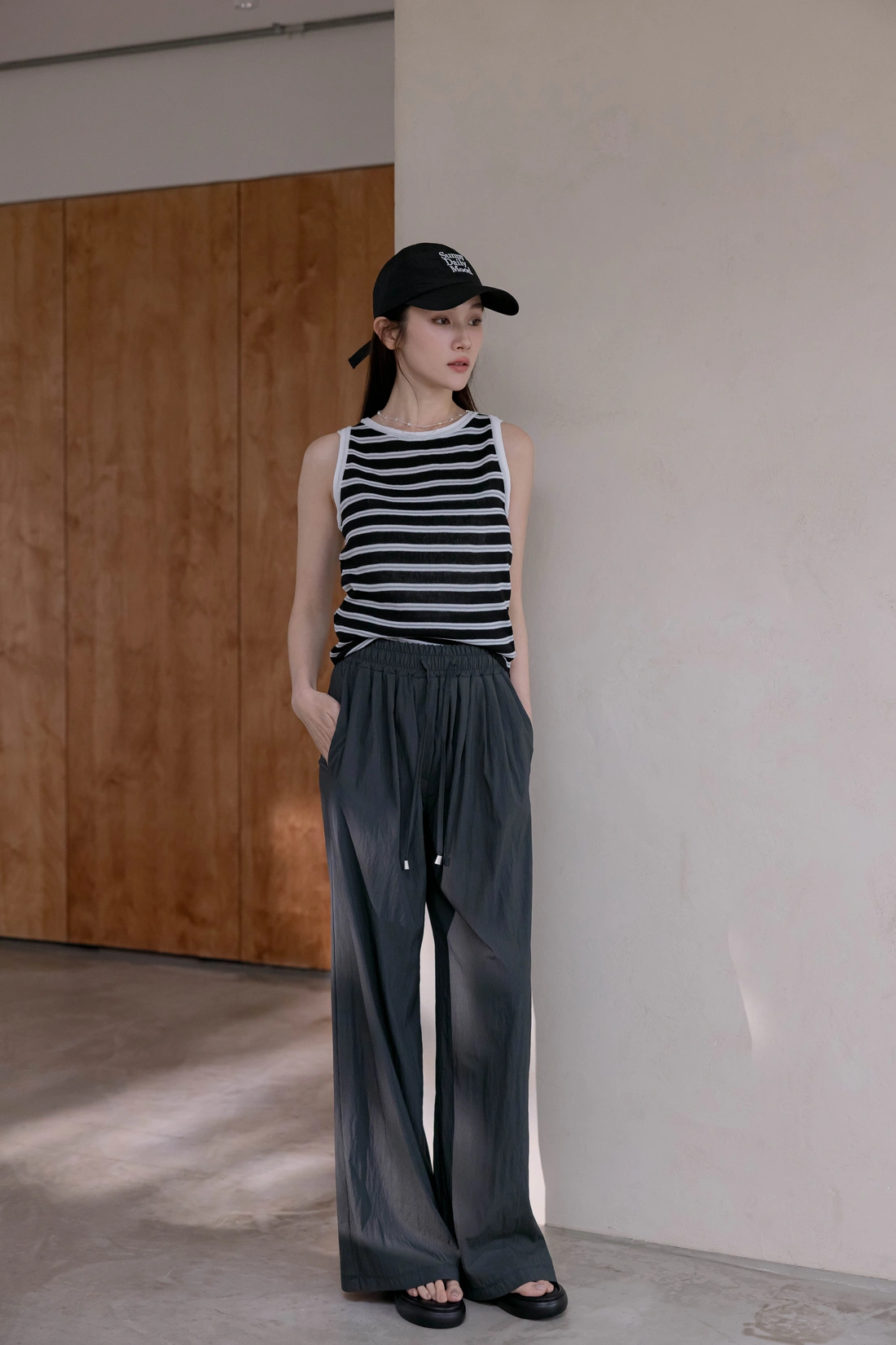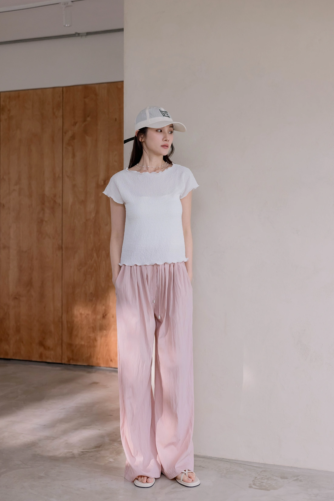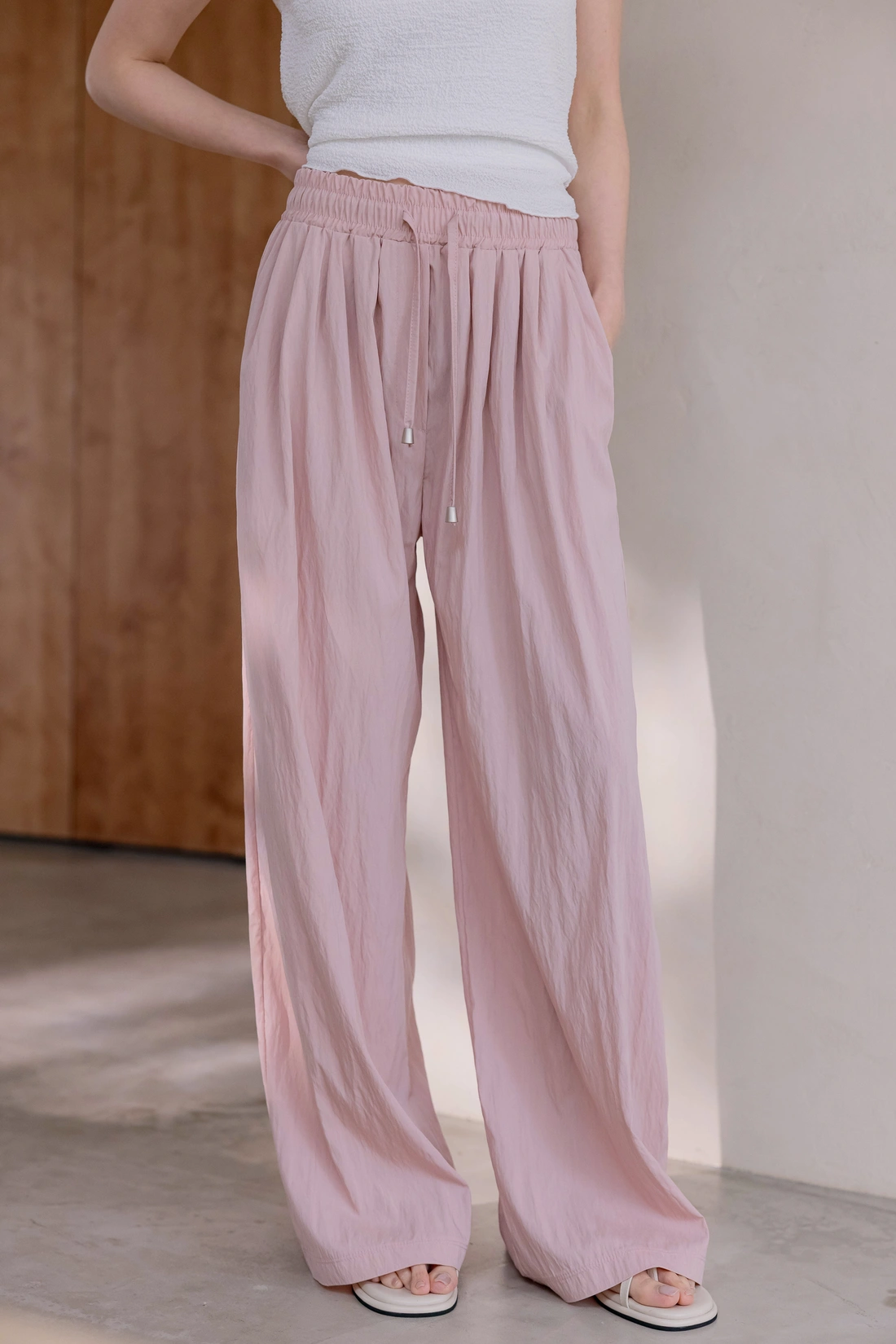 正韓製 打摺冰冰綁帶寬褲