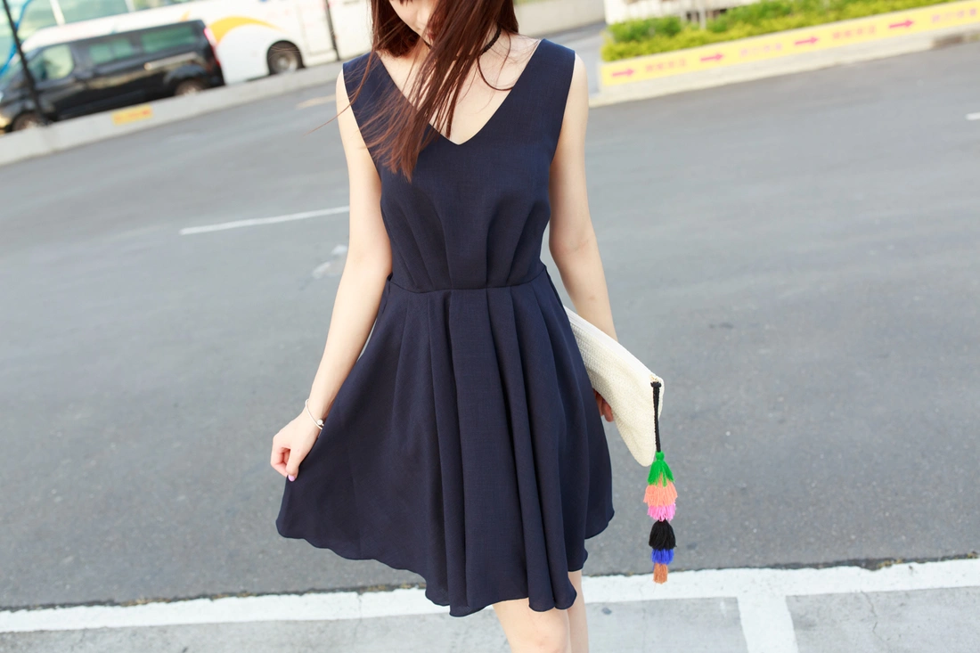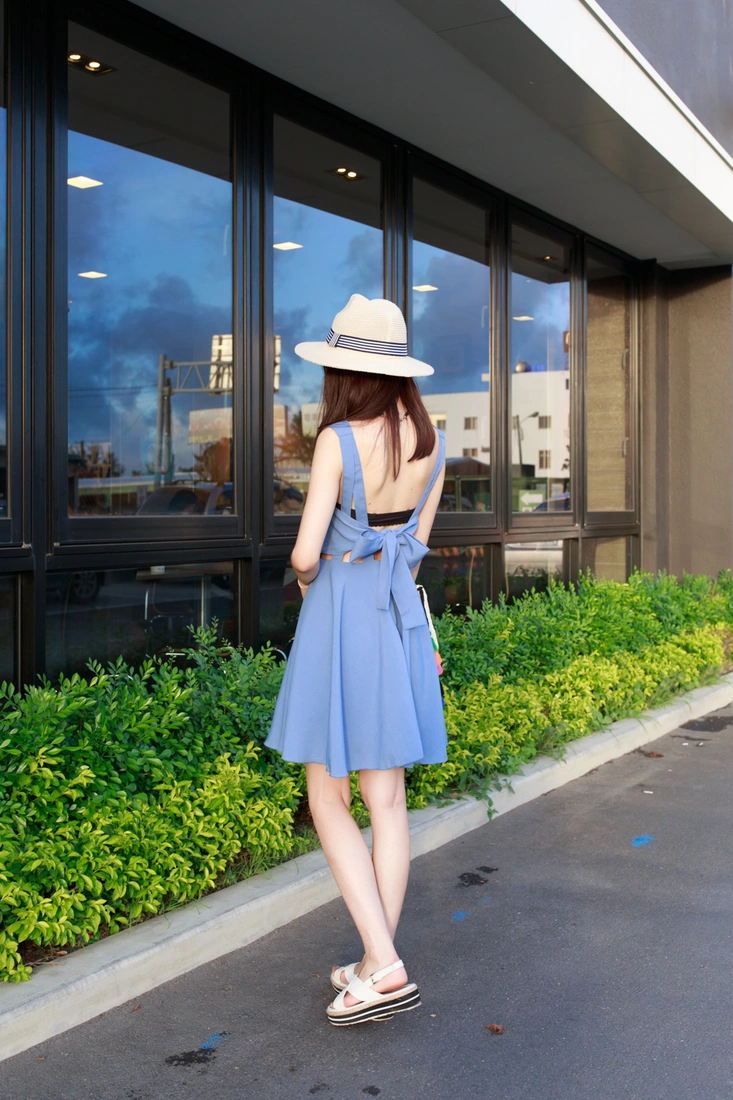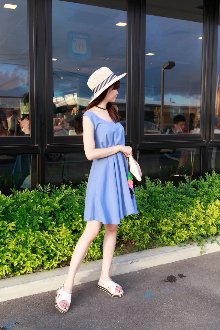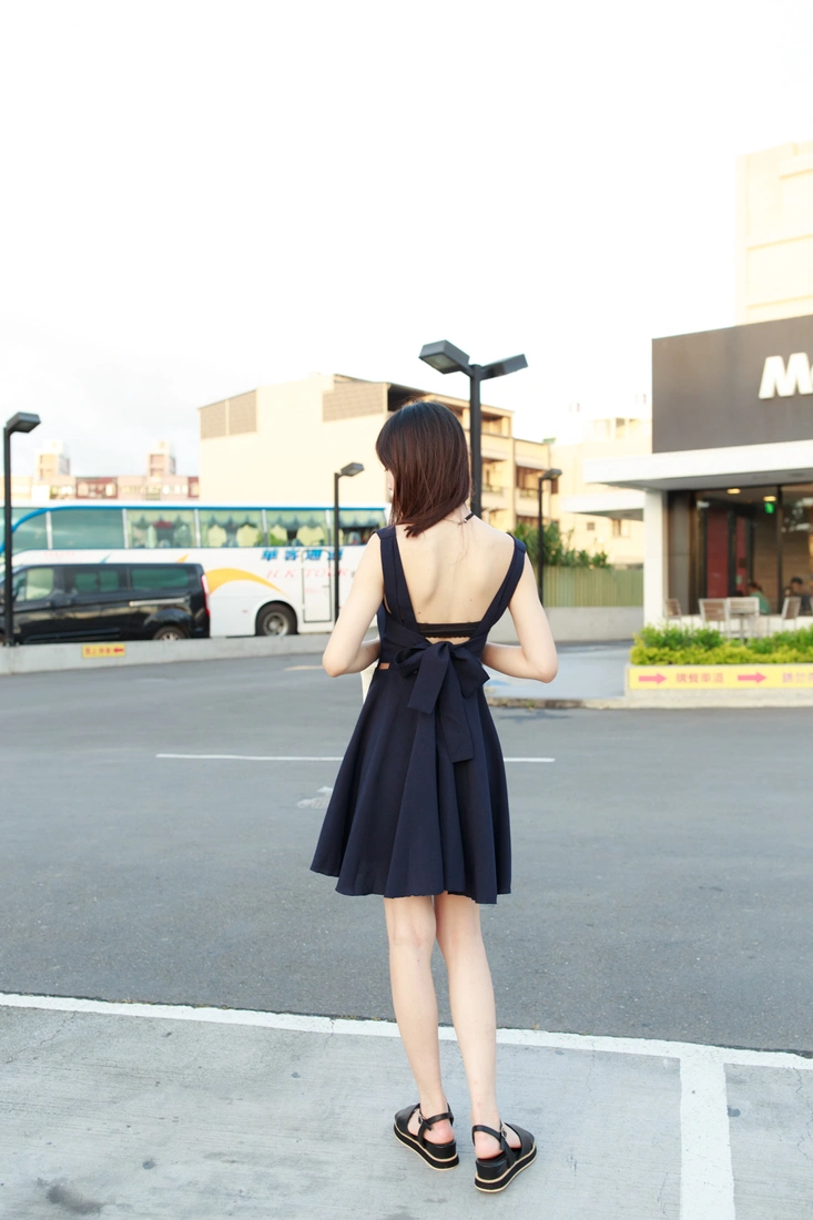 後拉鍊,背後露背綁帶設計,質感打摺造型,棉麻混紡涼感材質,不透光,有內裡,非常美的一款洋裝^^