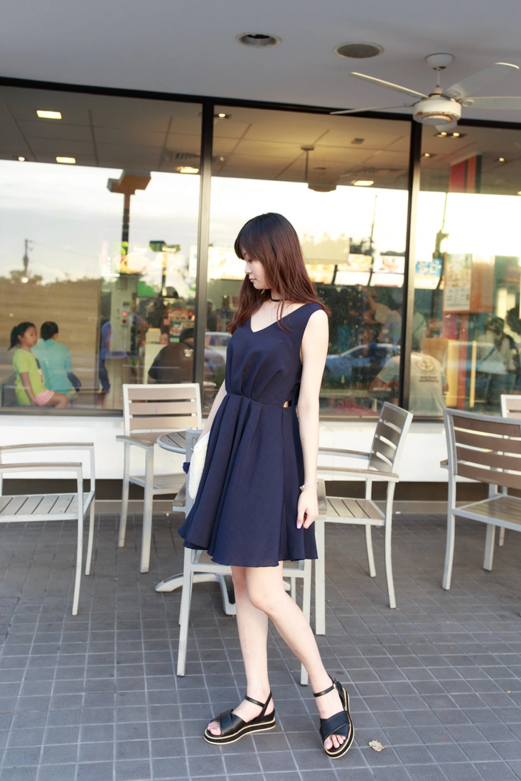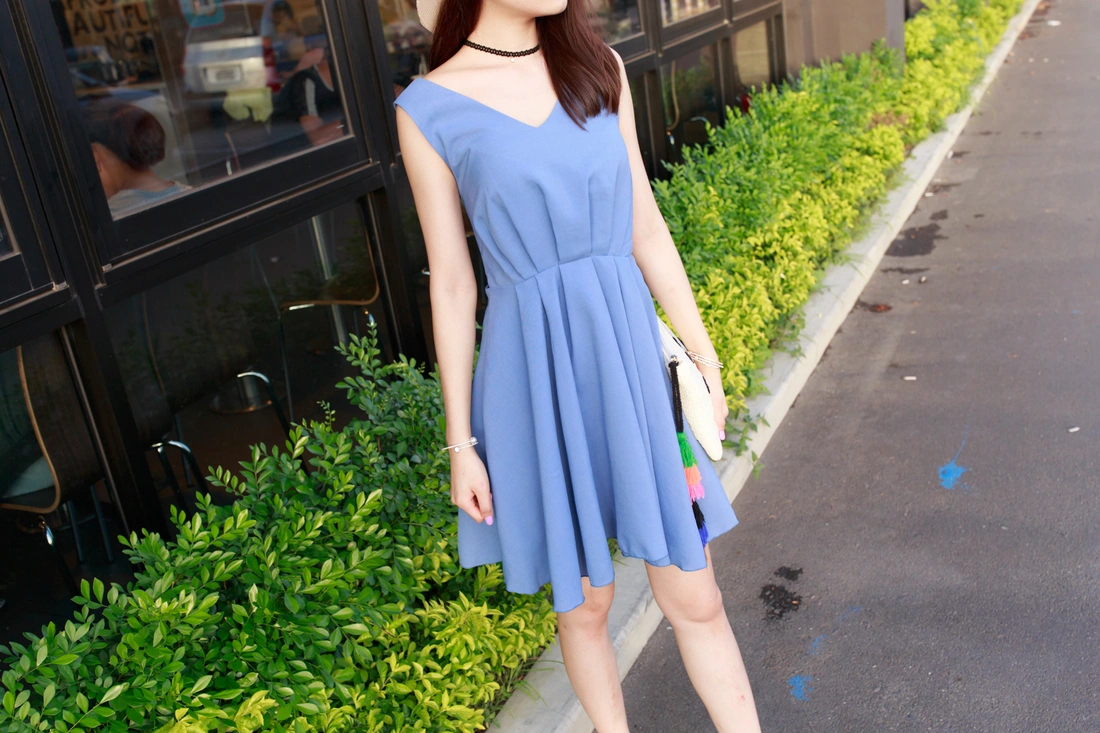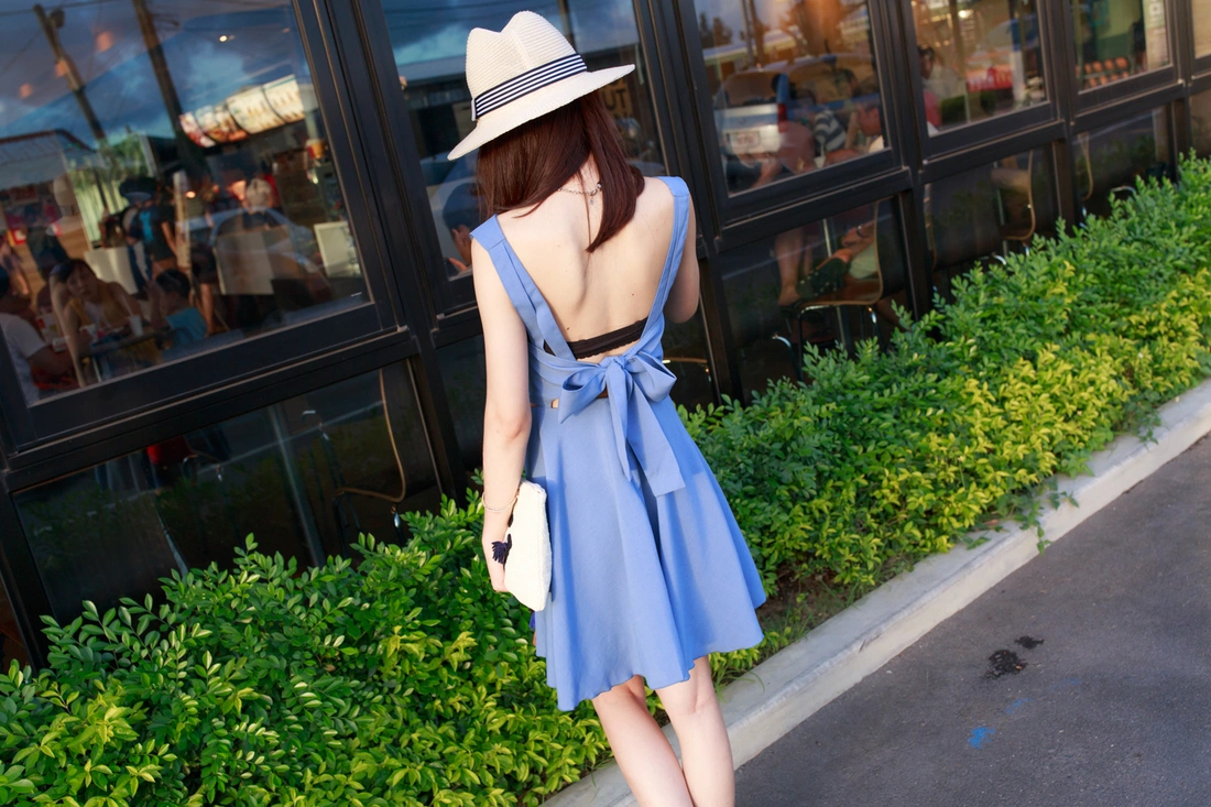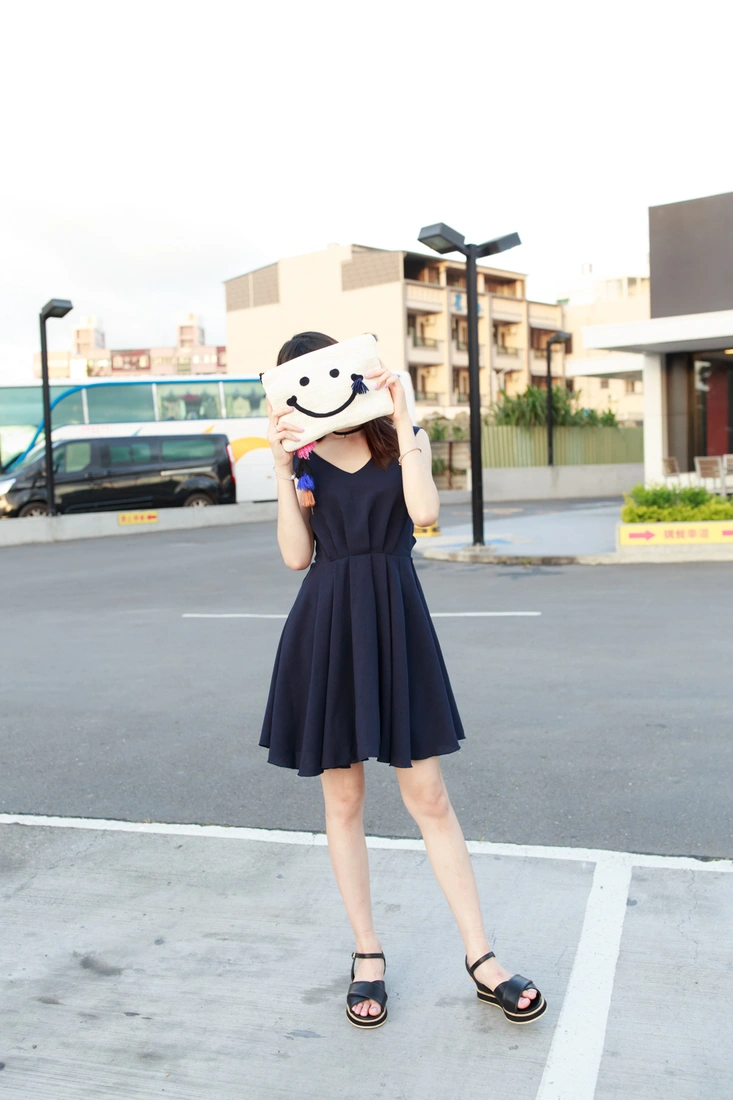 後拉鍊,背後露背綁帶設計,質感打摺造型,棉麻混紡涼感材質,不透光,有內裡,非常美的一款洋裝^^