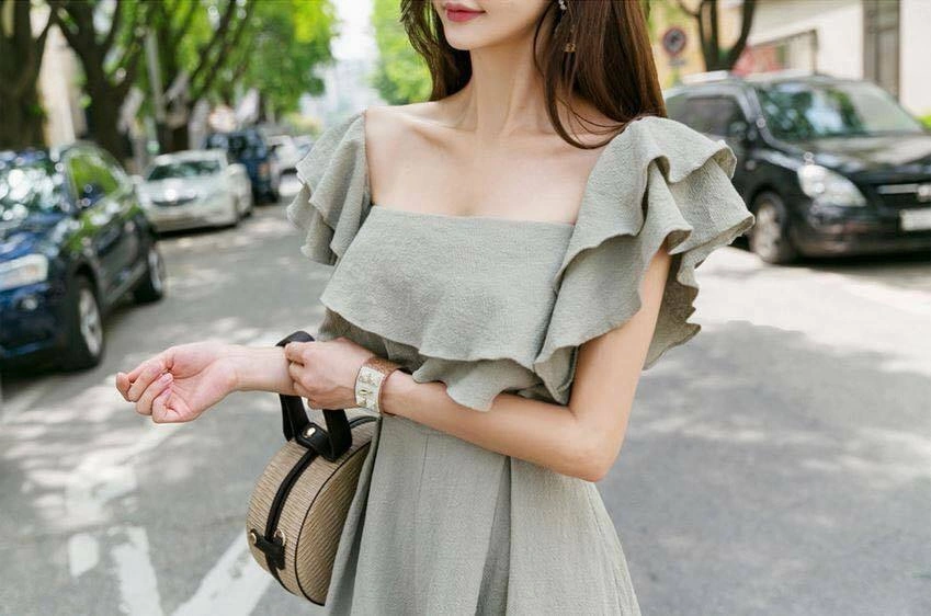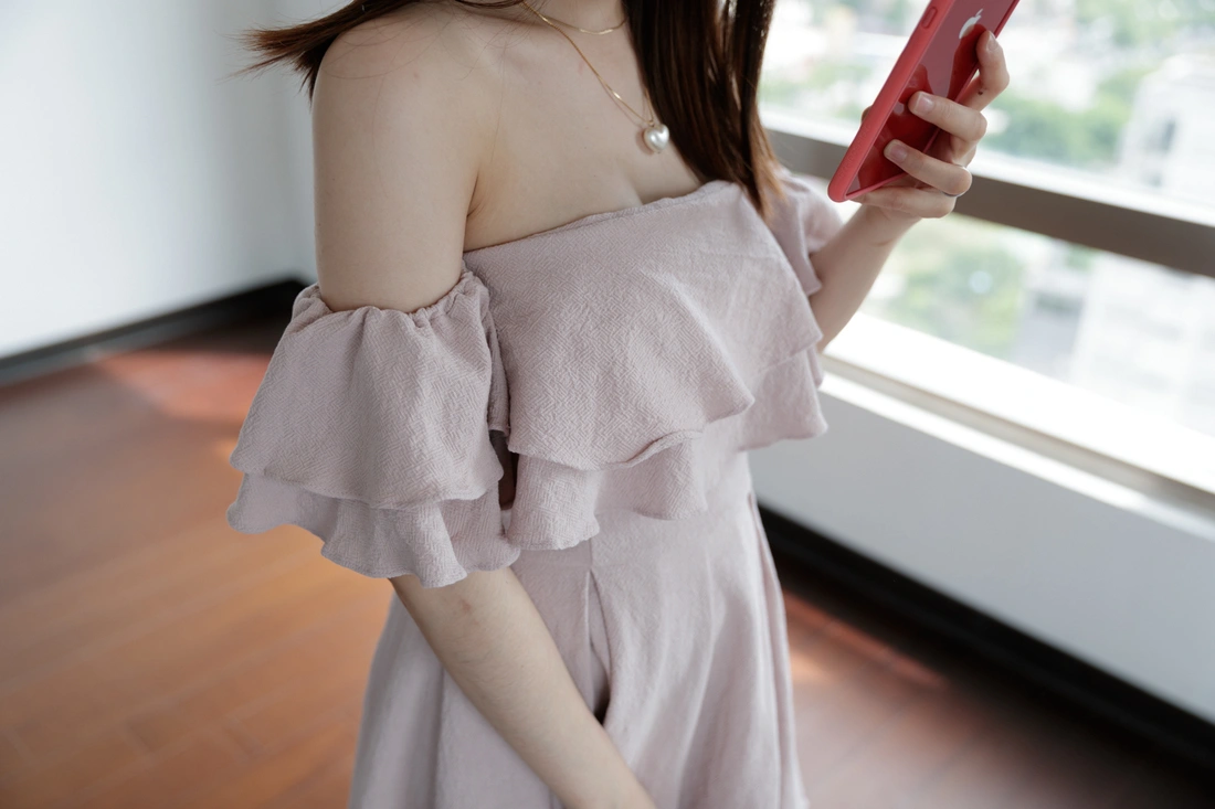 布料無彈性/一字領袖口處有鬆緊/後胸圍有鬆緊