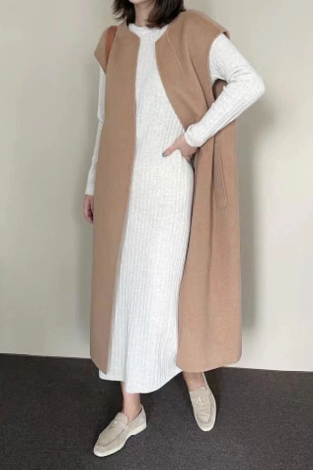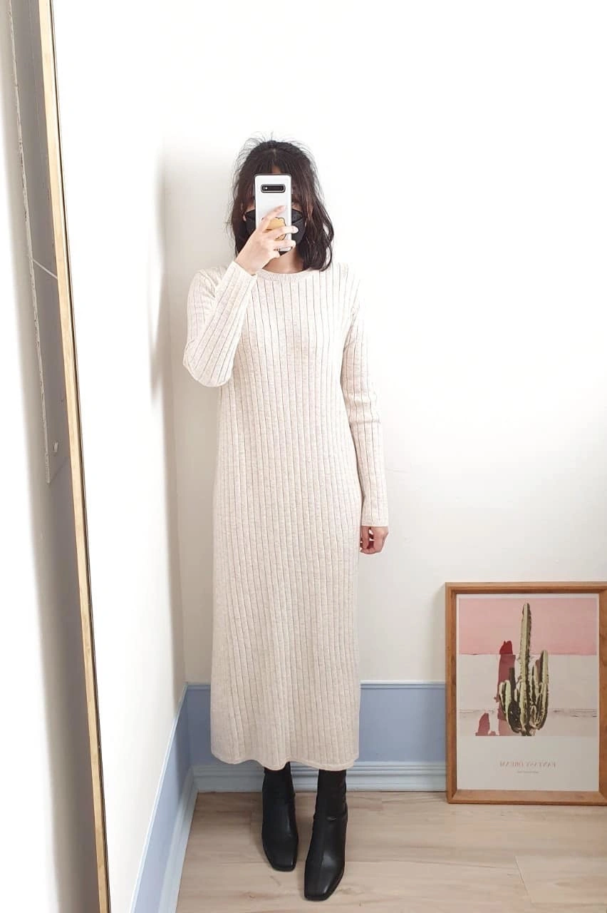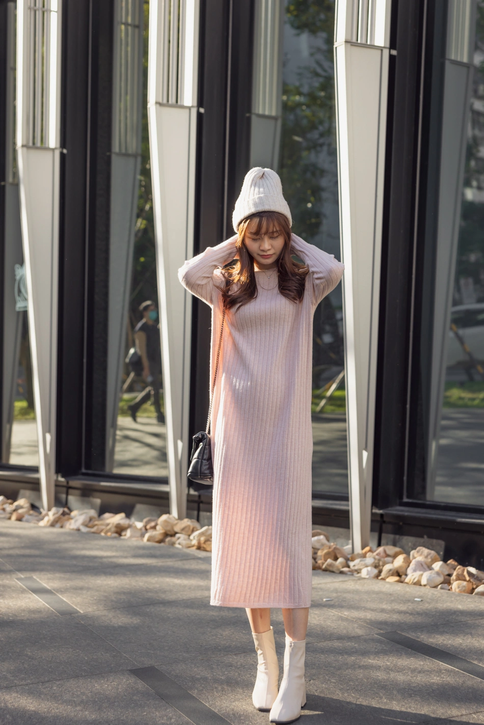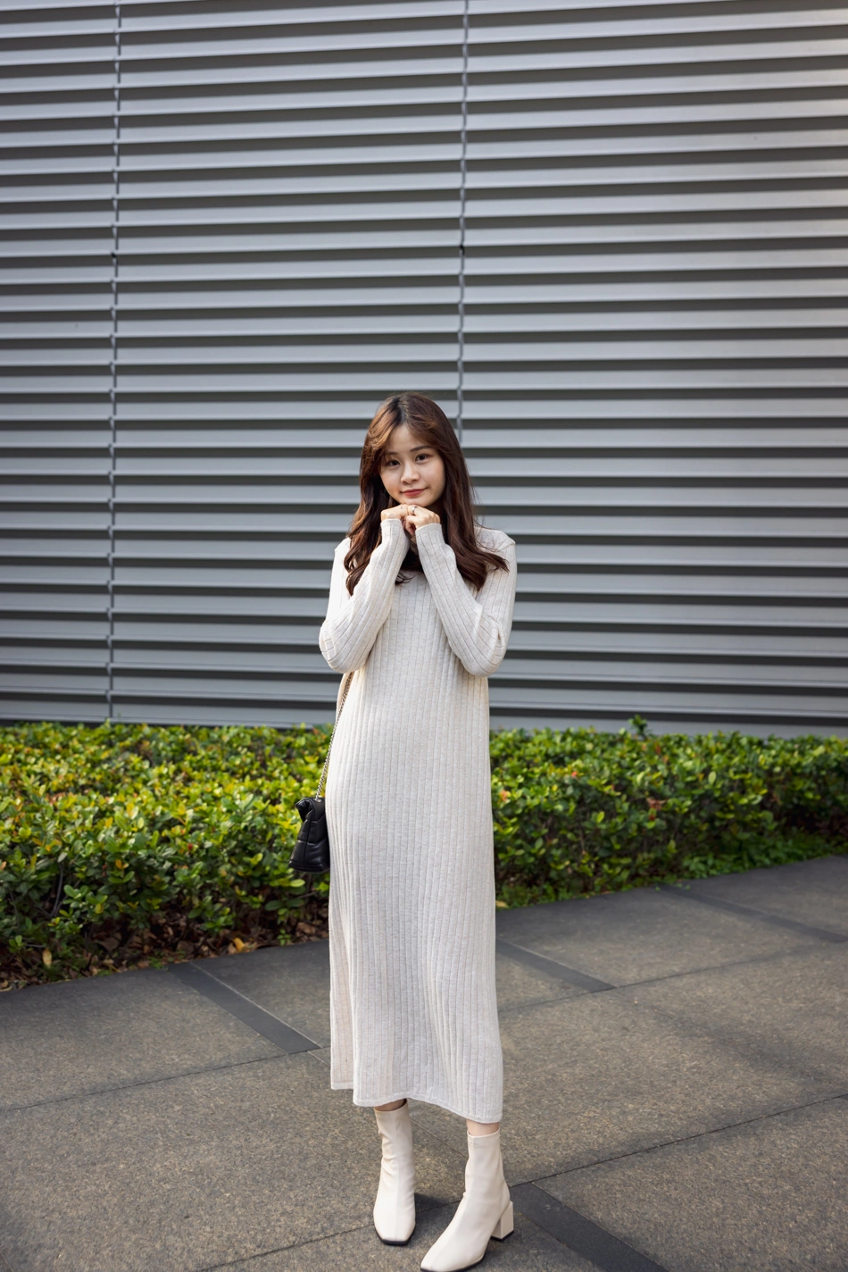 配大衣也好好看,版型本身順身不貼身,所以不挑身材喔~針織毛料材質,超級親膚,秋冬兩季都很適合穿著^^