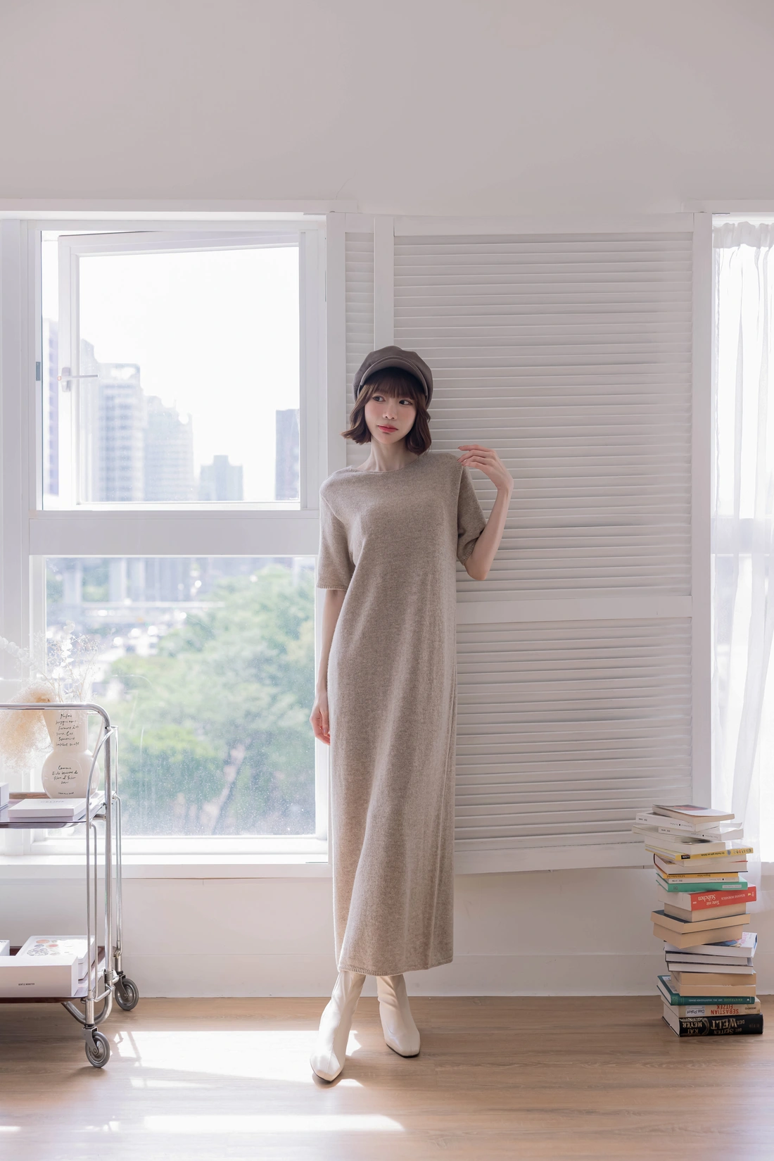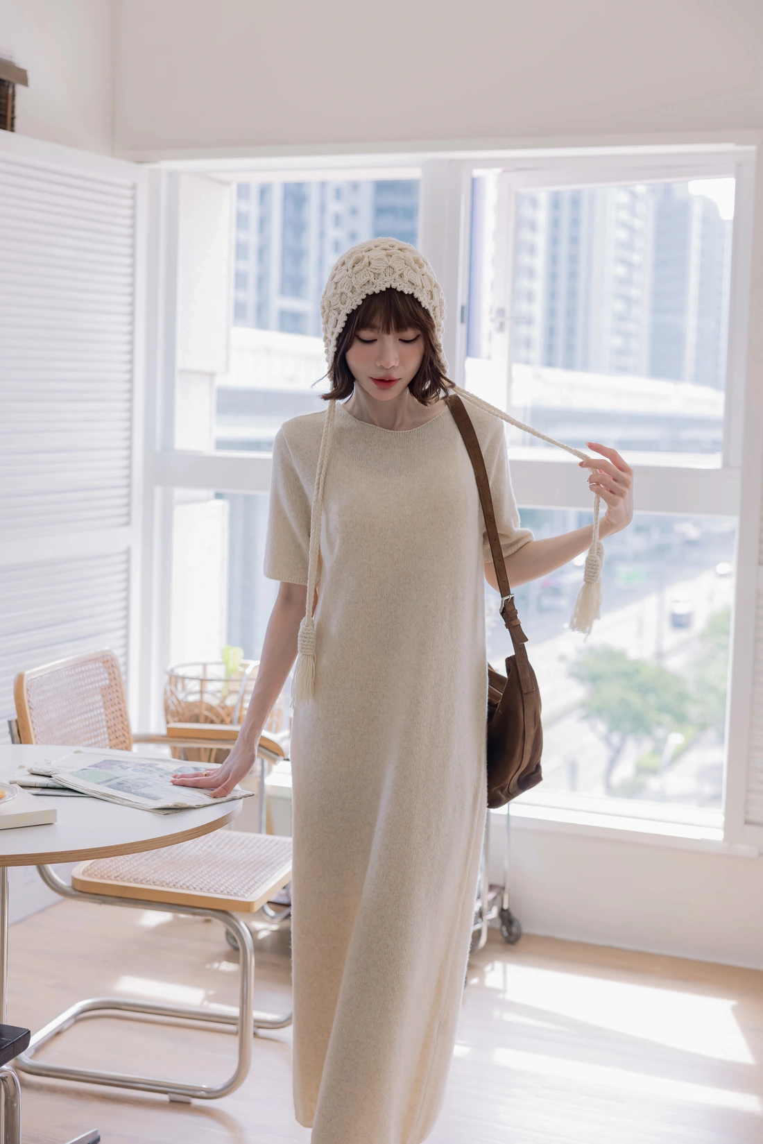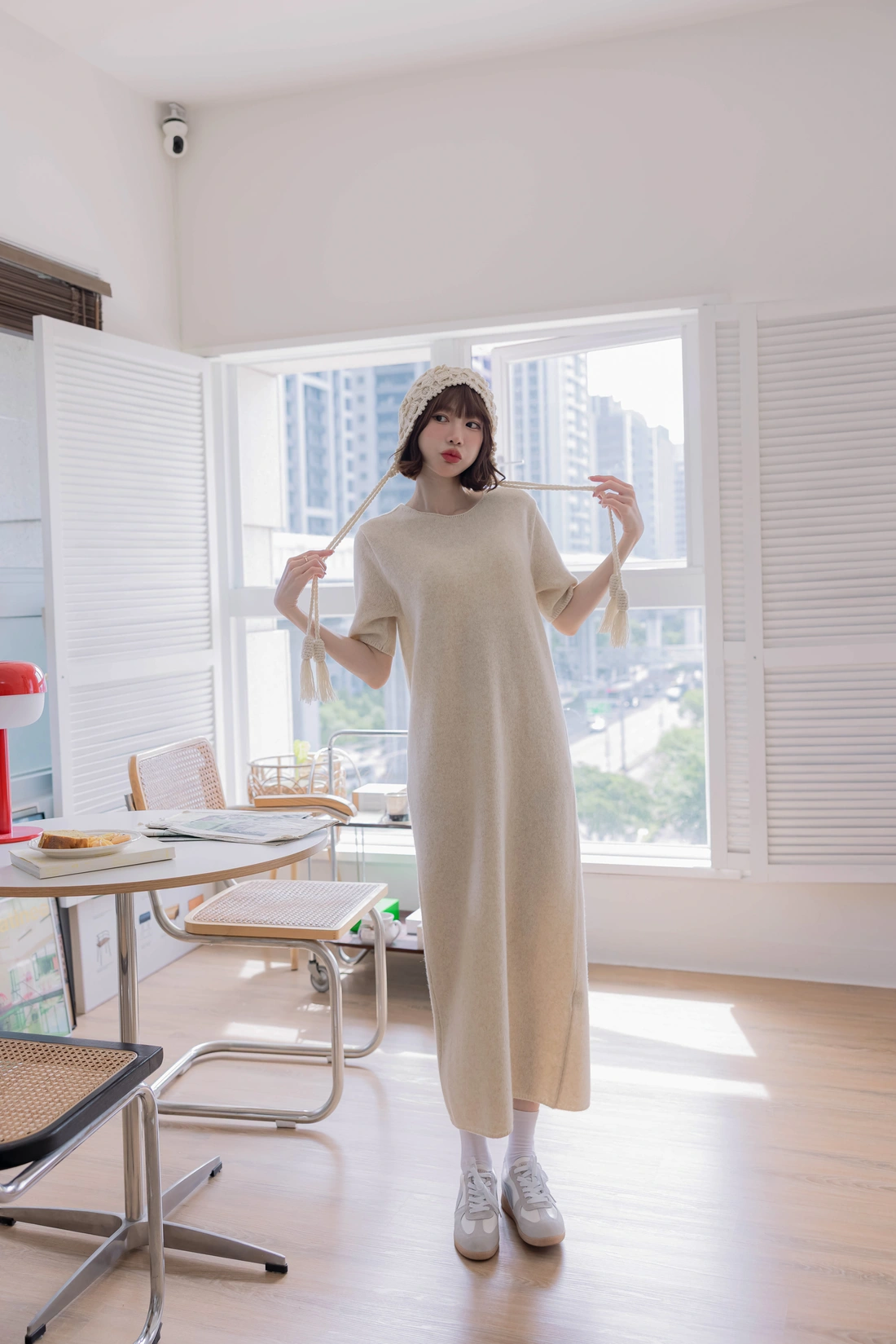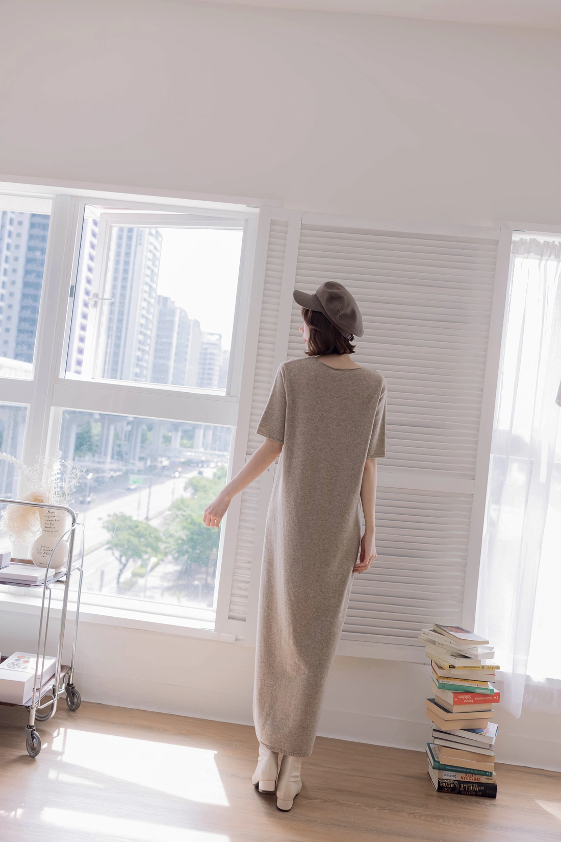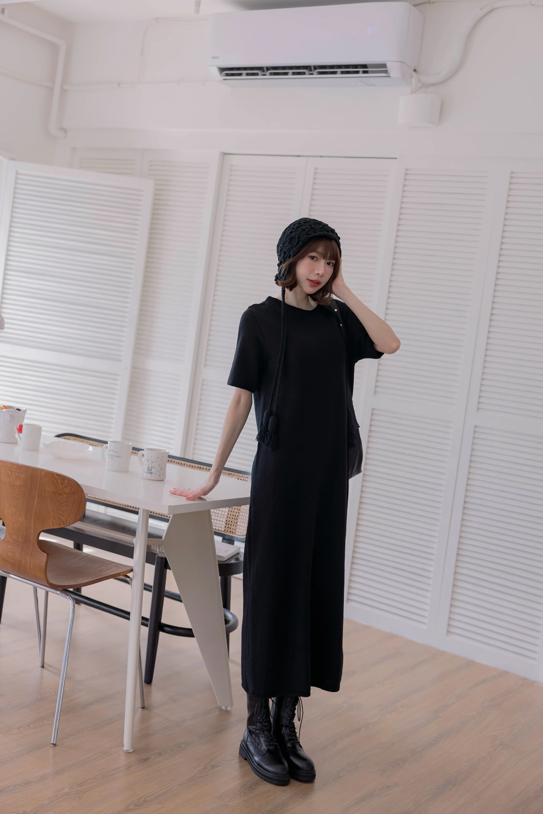 秋冬保暖羊毛短袖長裙/純色百搭長裙/厚磅材質更保暖