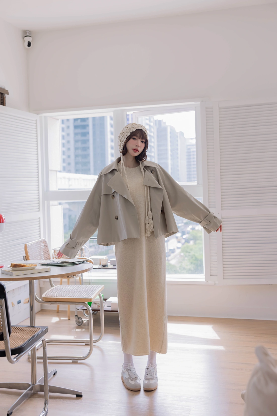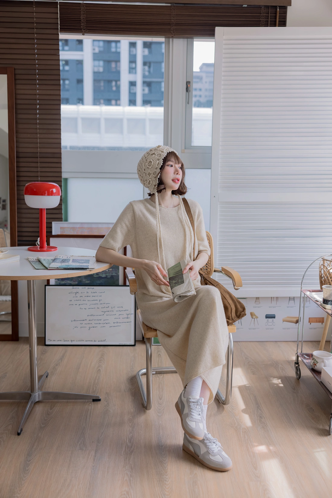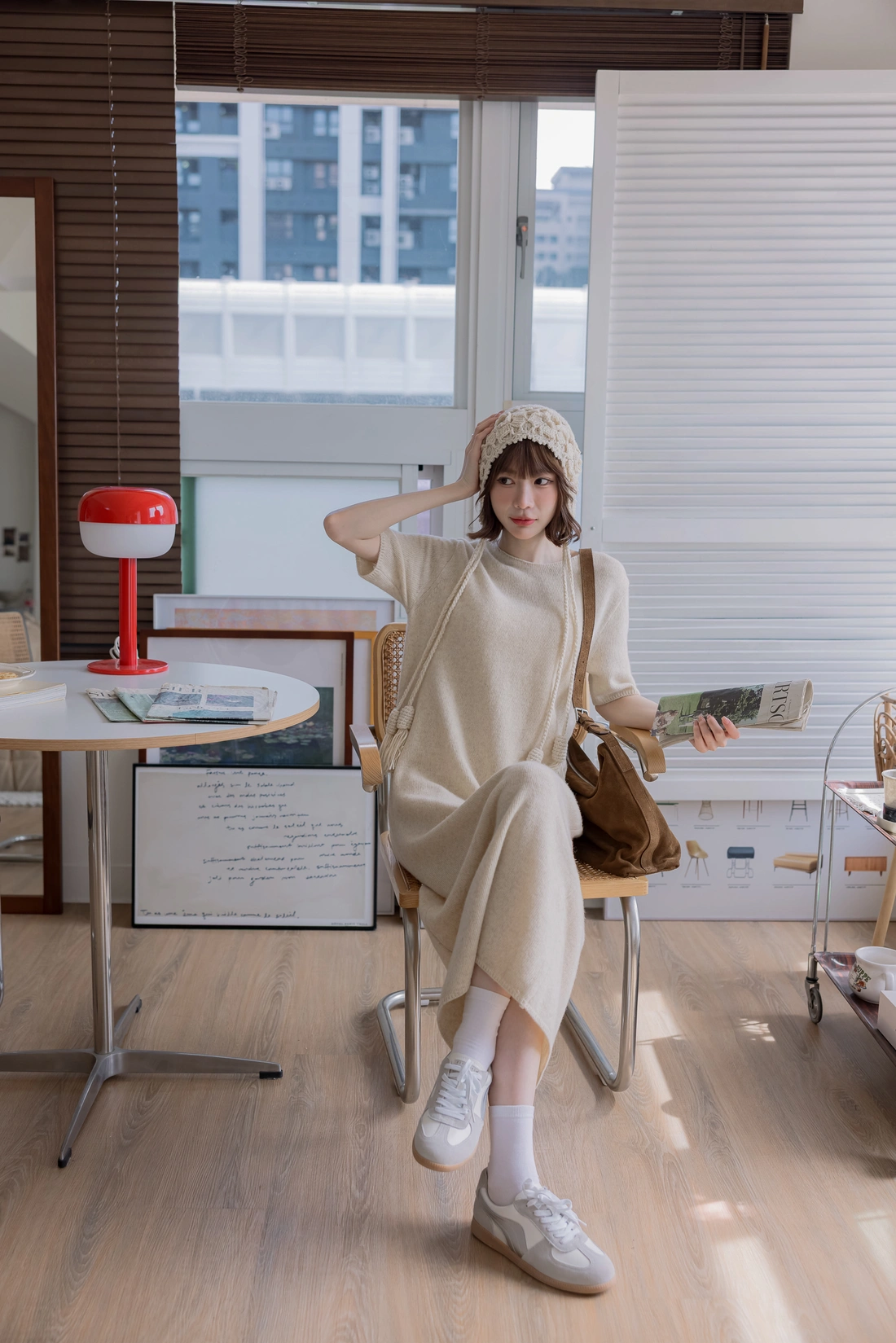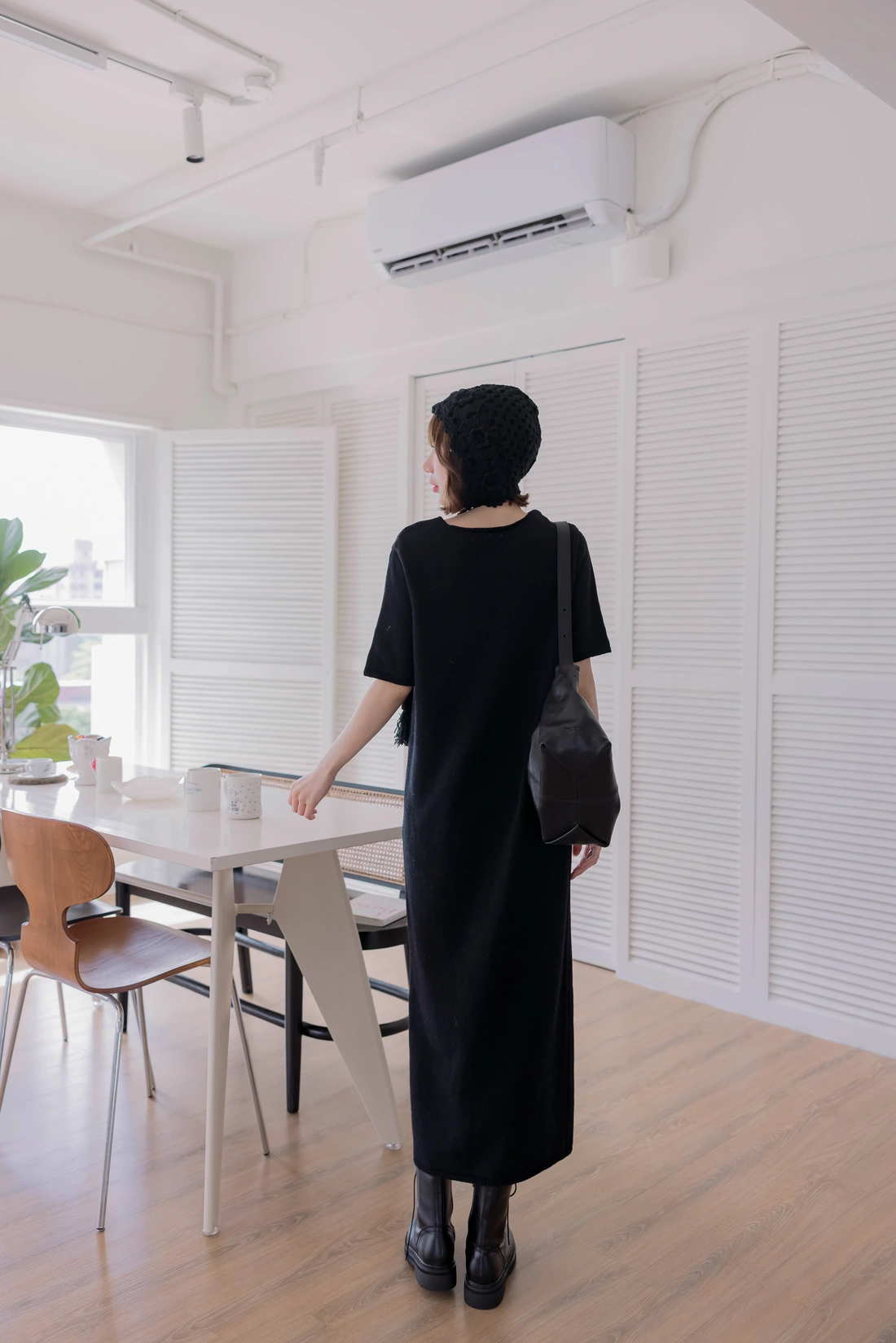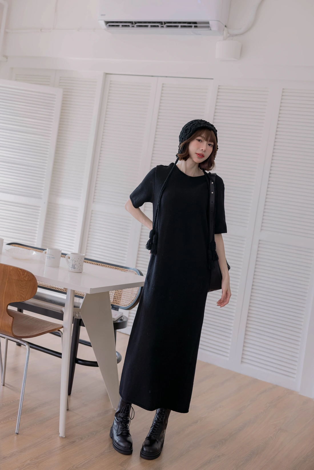 秋冬保暖羊毛短袖長裙/純色百搭長裙/厚磅材質更保暖