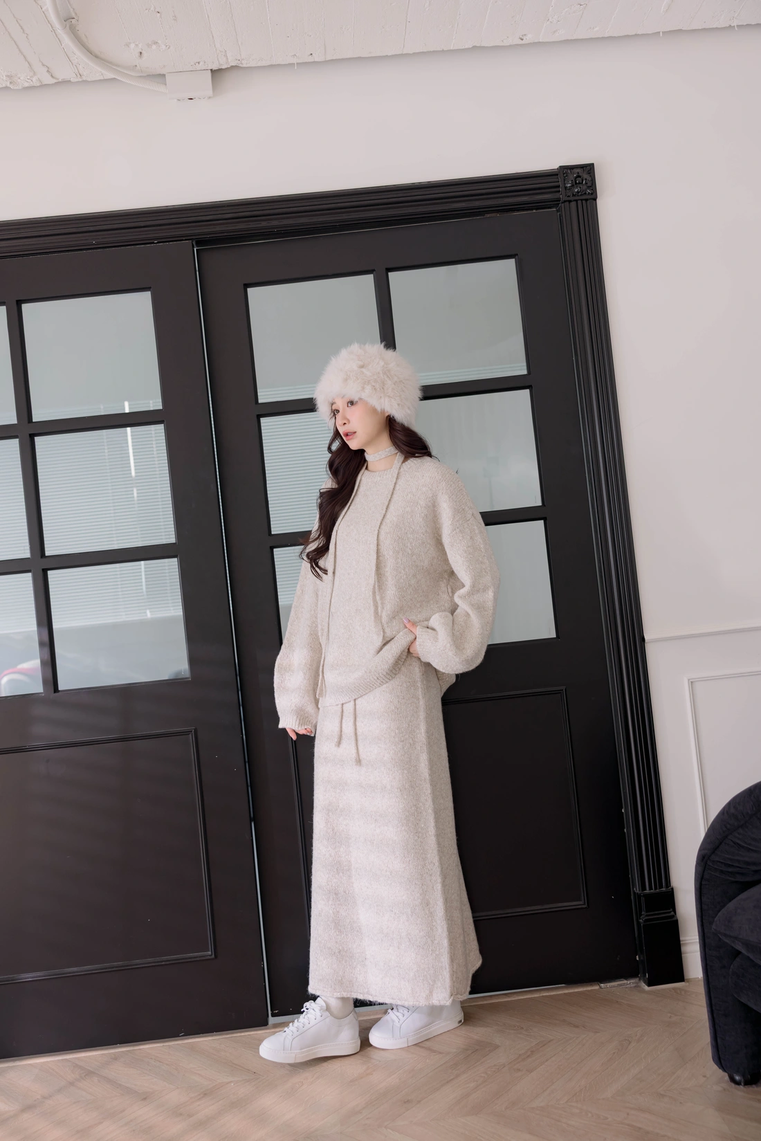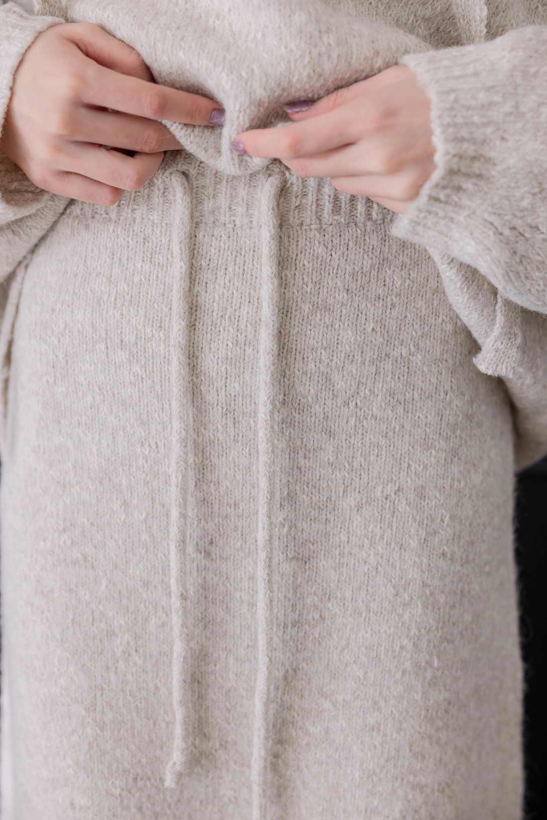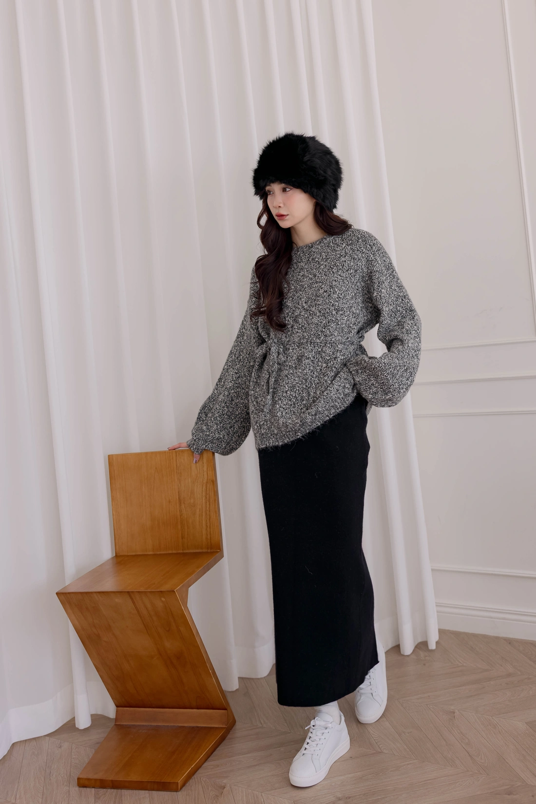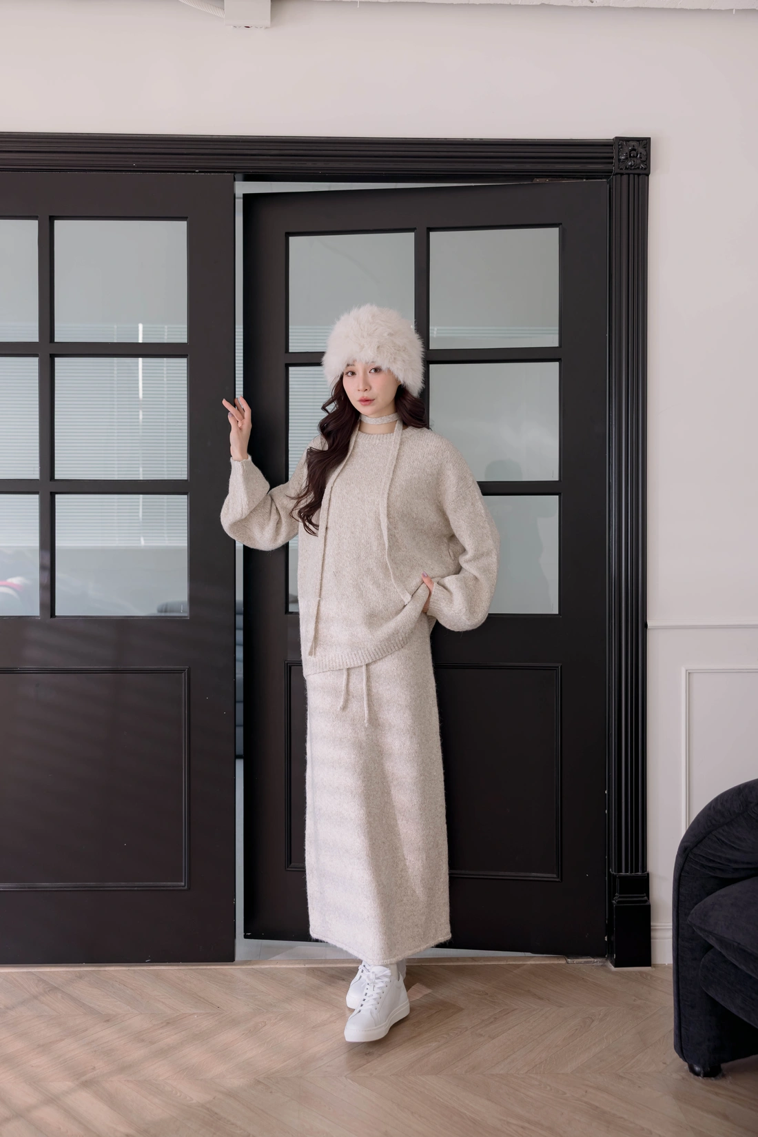 舒適些許羊毛材質/鬆緊腰設計/裙下襬捲邊設計