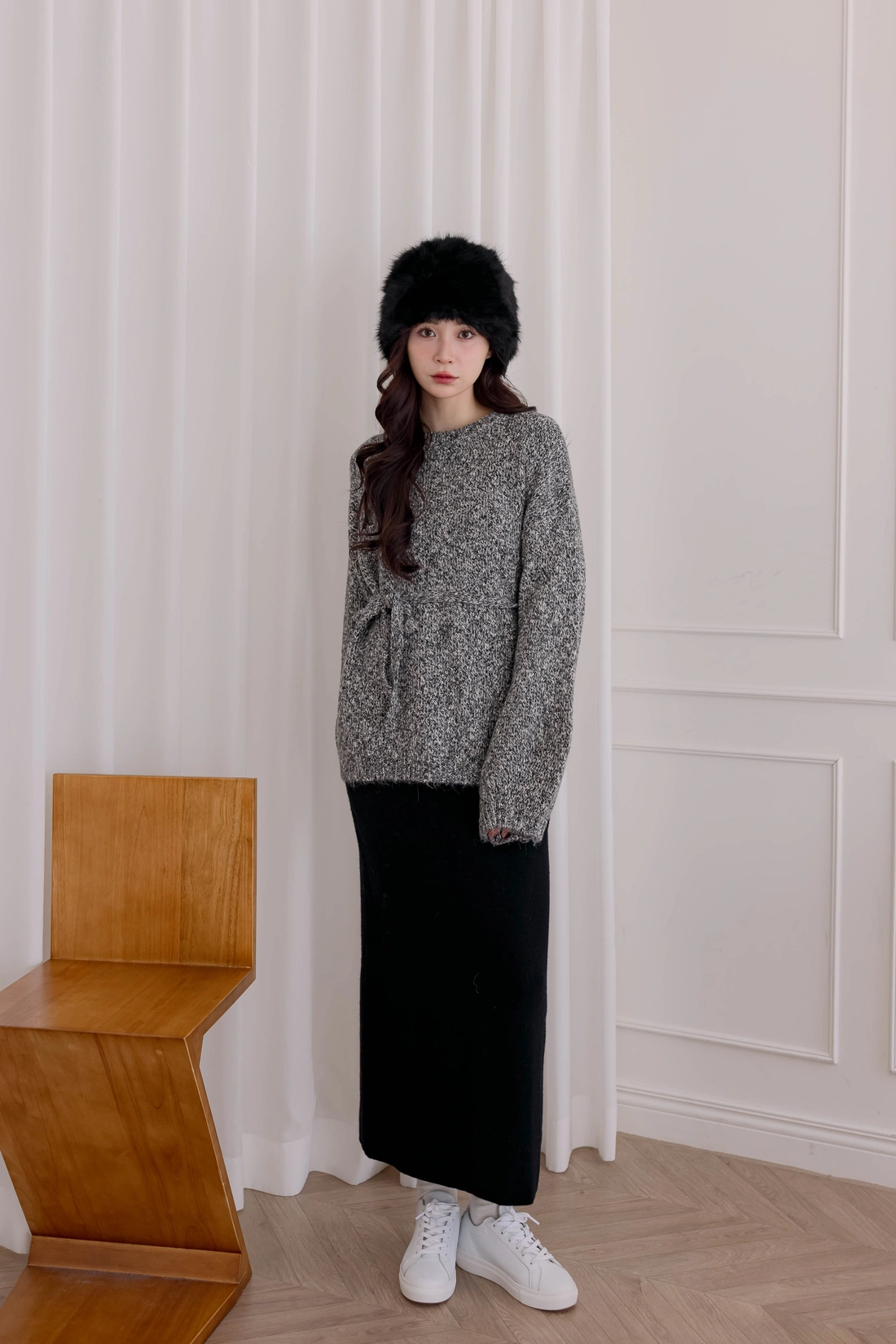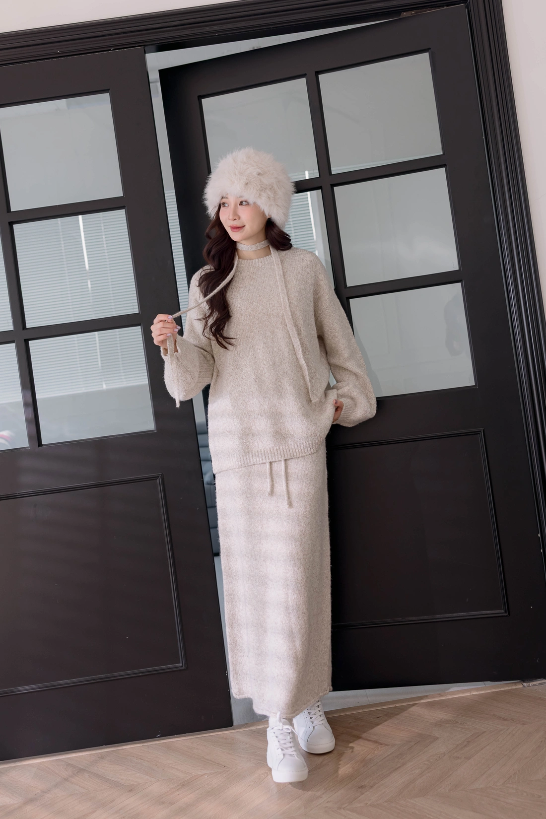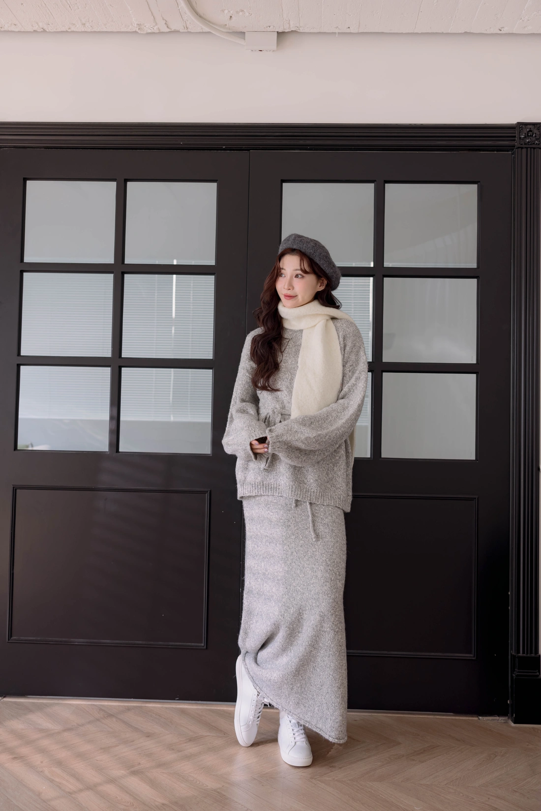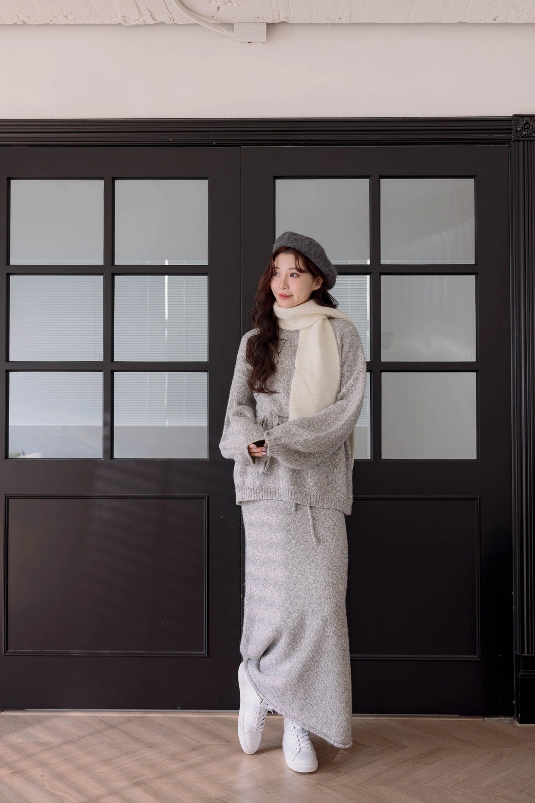 舒適些許羊毛材質/鬆緊腰設計/裙下襬捲邊設計