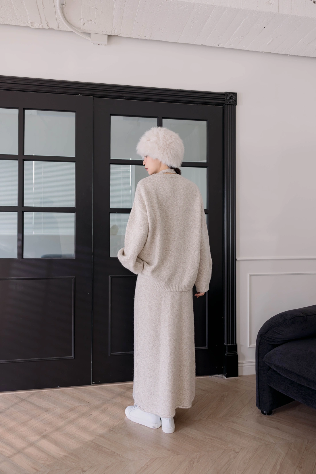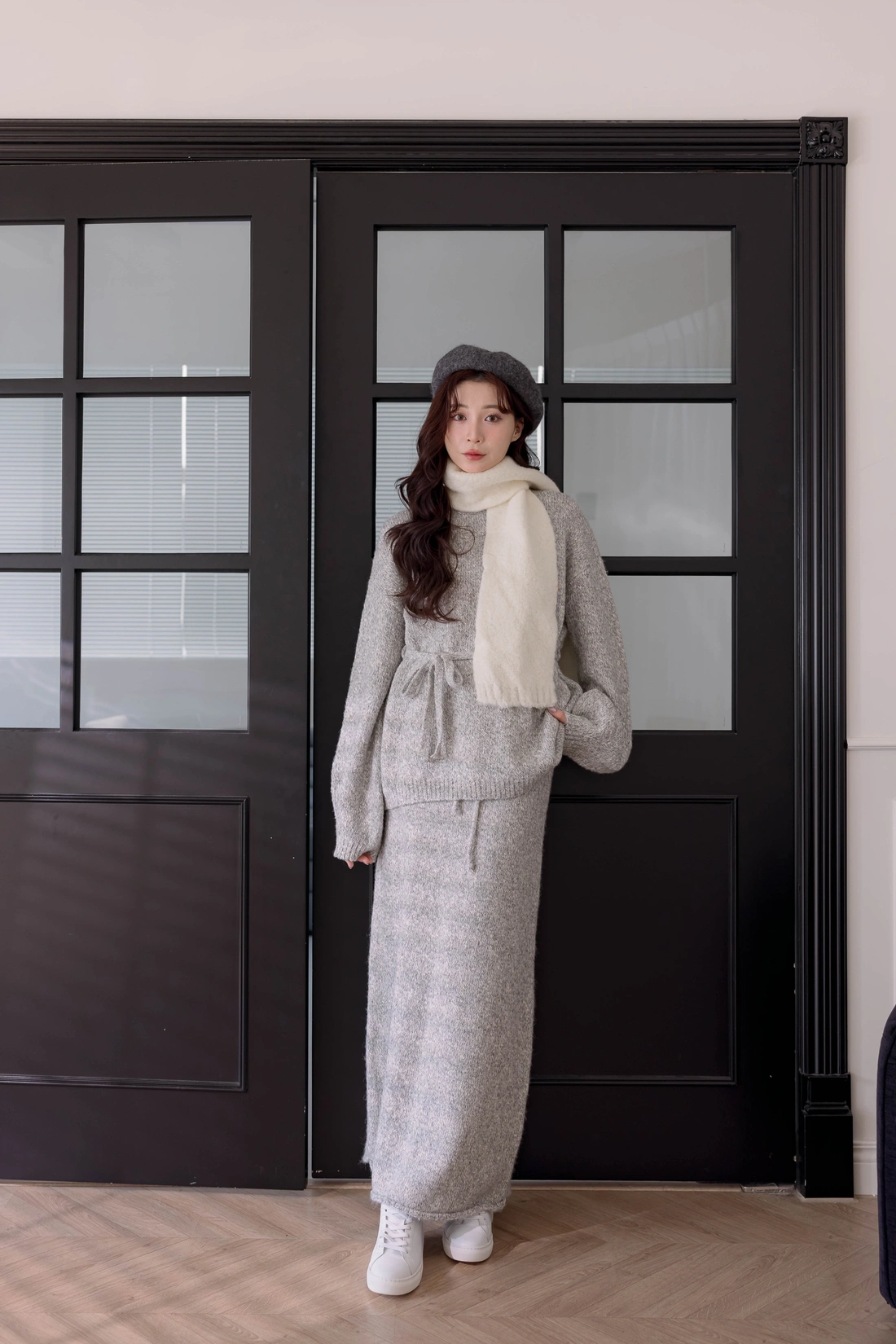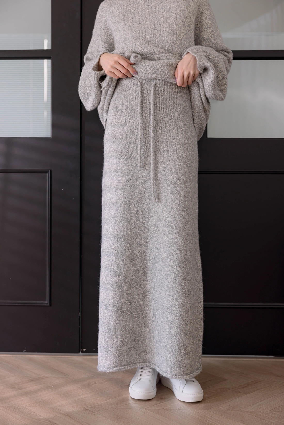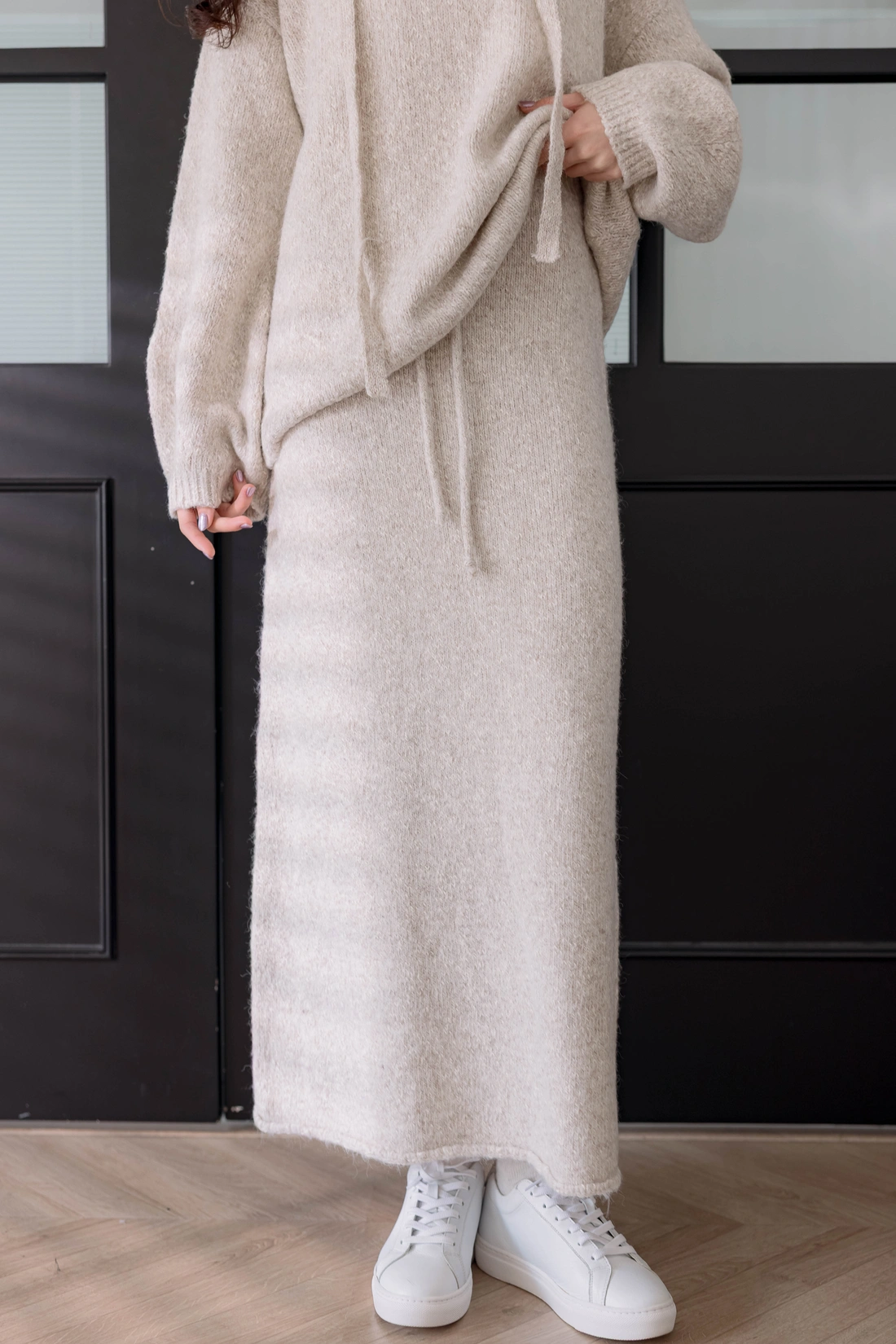 舒適些許羊毛材質/鬆緊腰設計/裙下襬捲邊設計