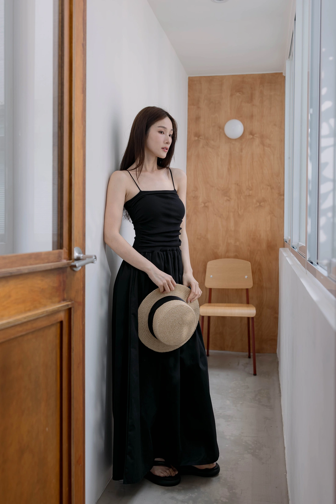 正韓製 拼接附罩杯長洋