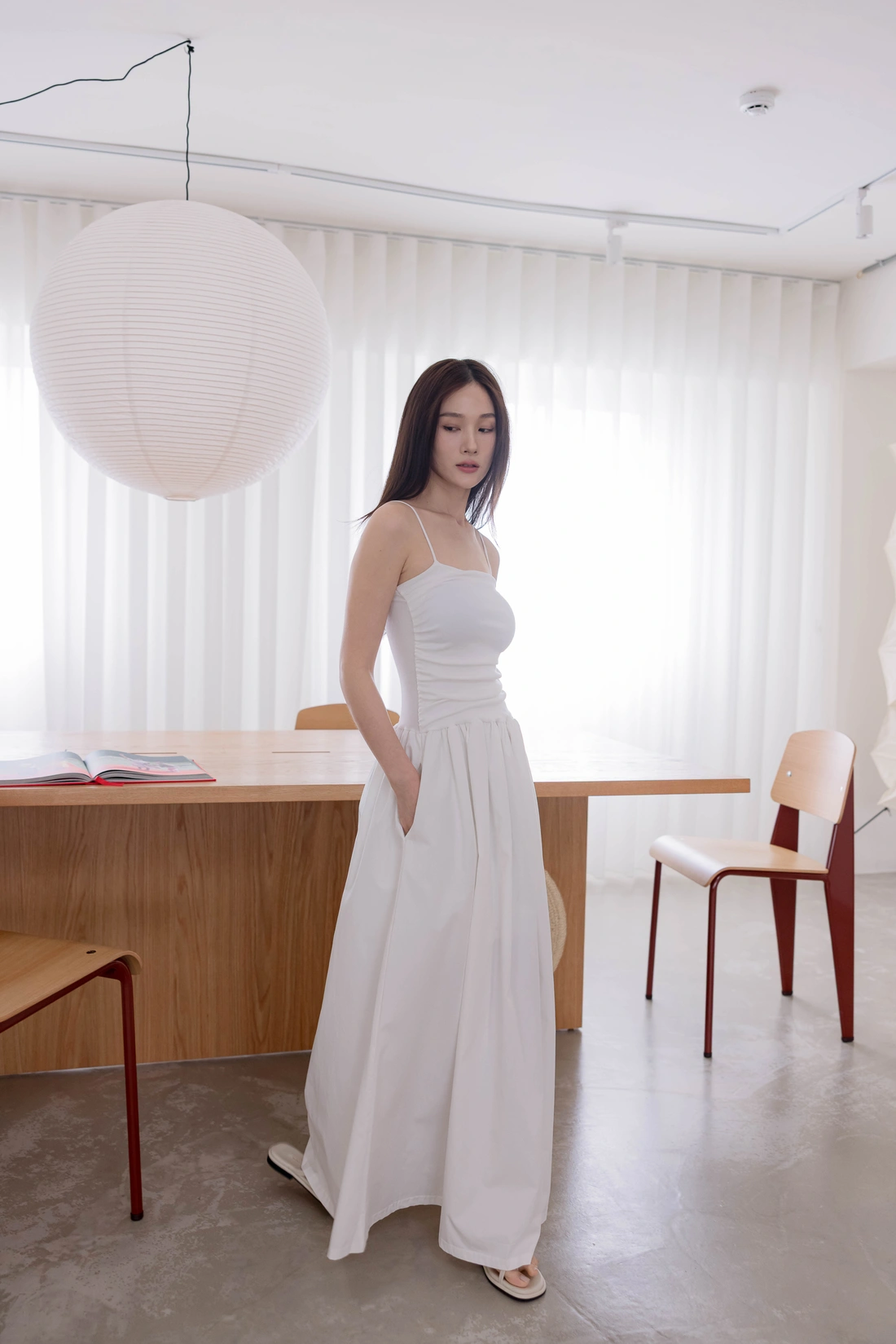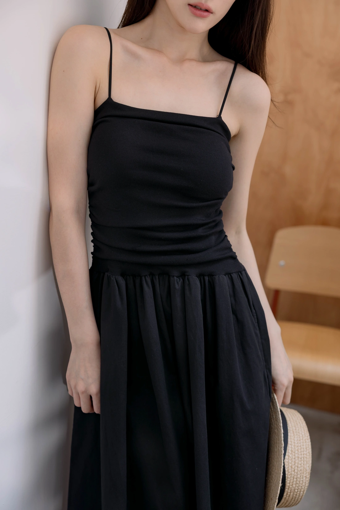 裙擺隱藏式口袋/異材質拼接裙擺