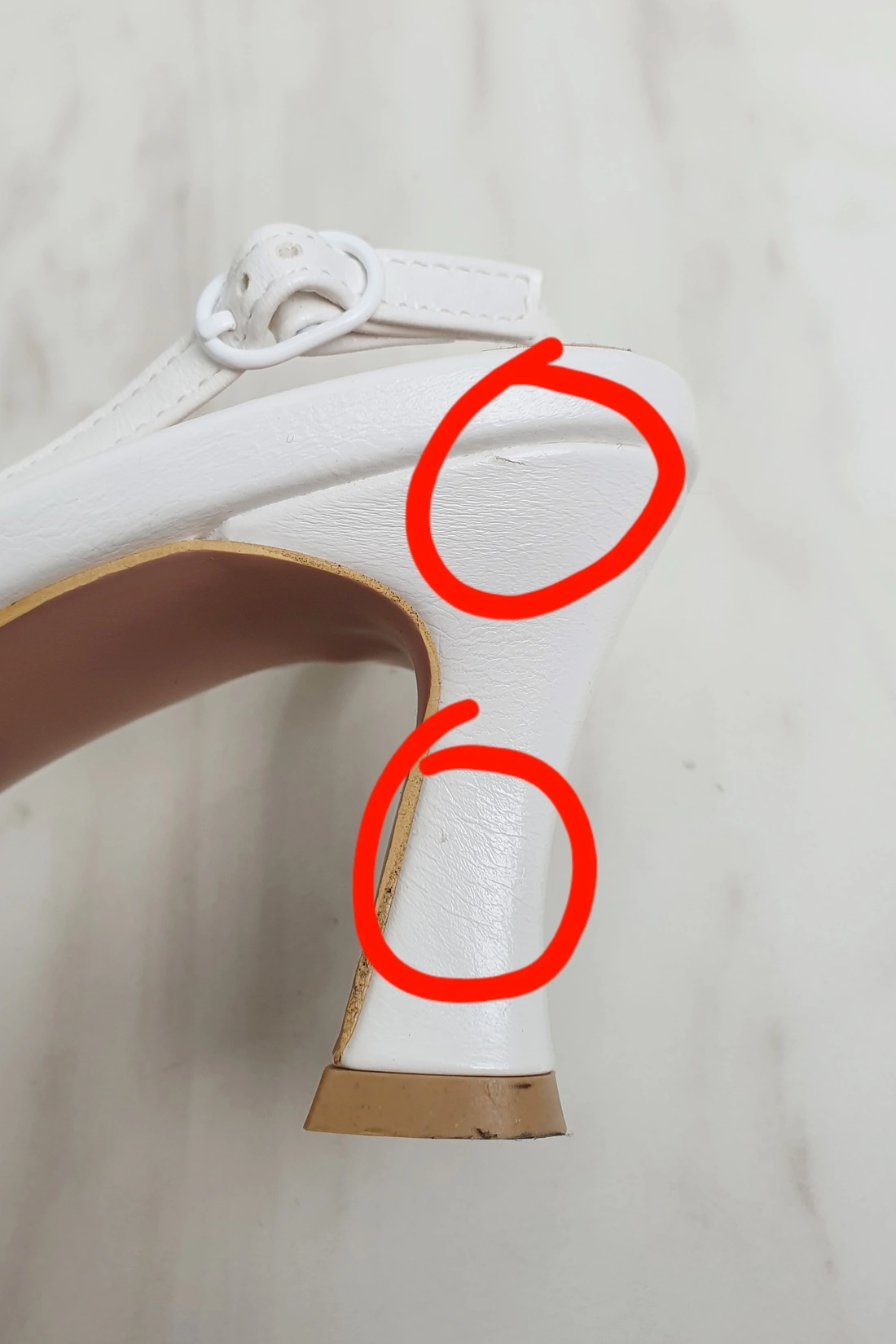 此件為拍照款,瑕疵為右腳後跟小掉皮及一條小黑污(非常不明顯)