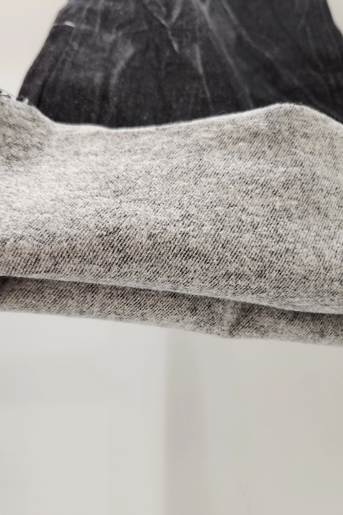 整件不規則刷色設計/內磨毛設計/下擺抽鬚設計