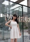 性感露背設計/褶皺肩帶細節設計/後綁帶造型設計