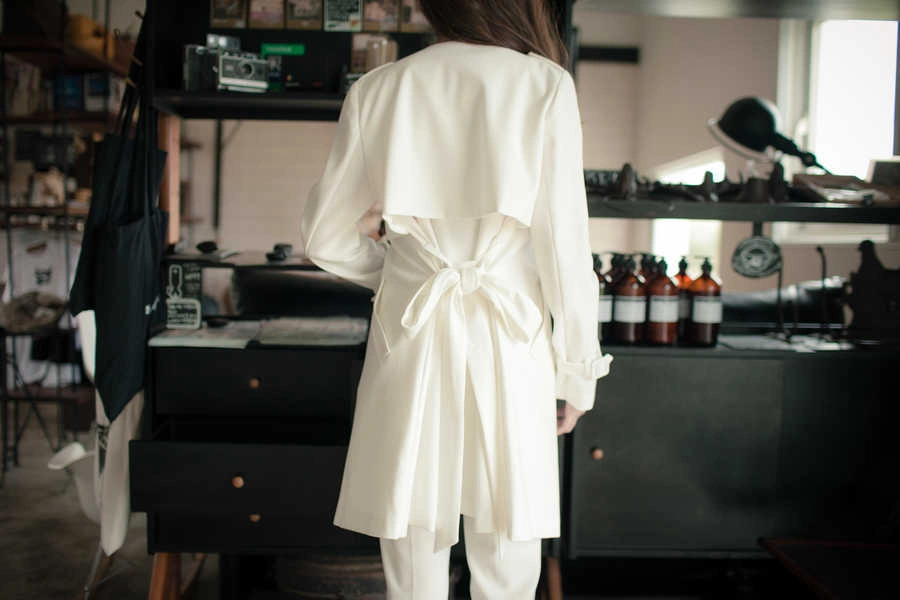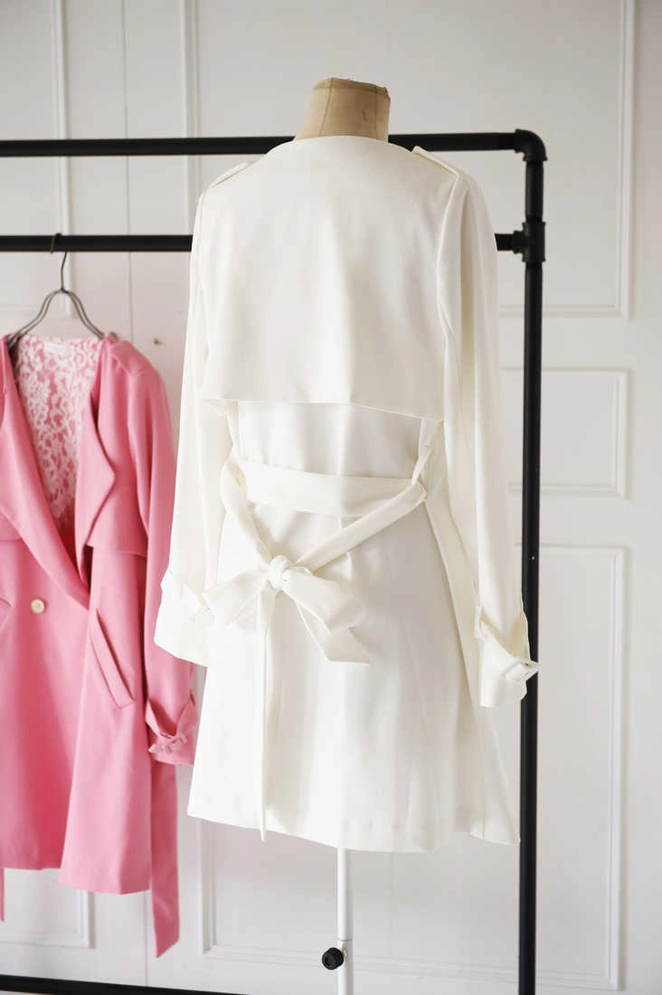 尺寸(cm):F 全長88 領口19 肩寬37 袖長58 袖口15 腋寬23 胸寬50 腰寬51 下擺66 綁帶長96