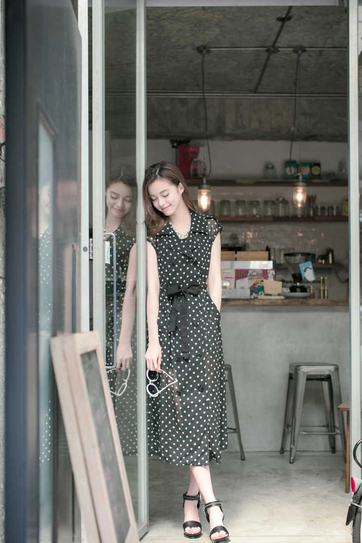 TIP:精緻鈕扣、6排雙排扣、可當背心外套或洋裝、腰際有綁帶(不可拆)、兩真口袋
