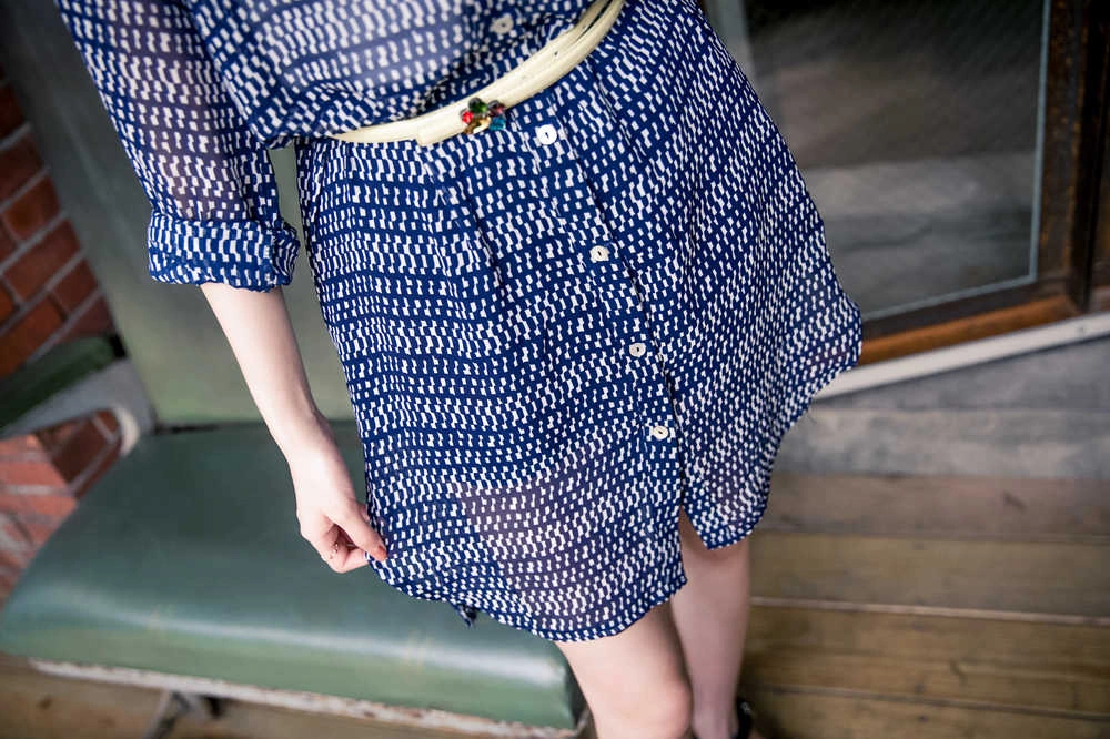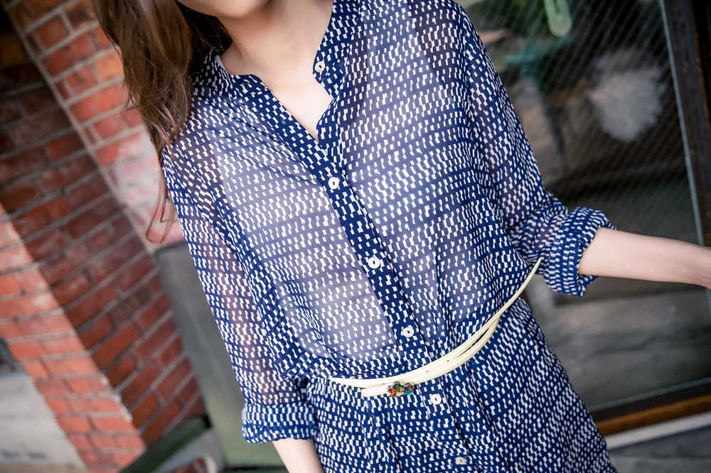 全扣起鈕扣再繫條皮帶,當成洋裝