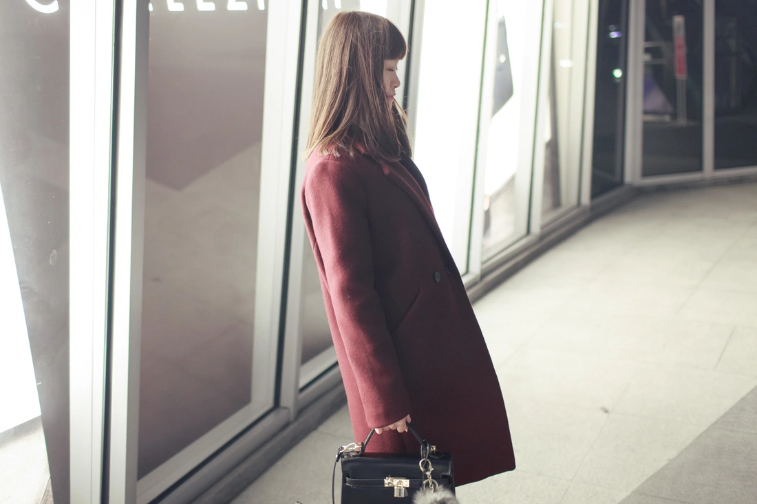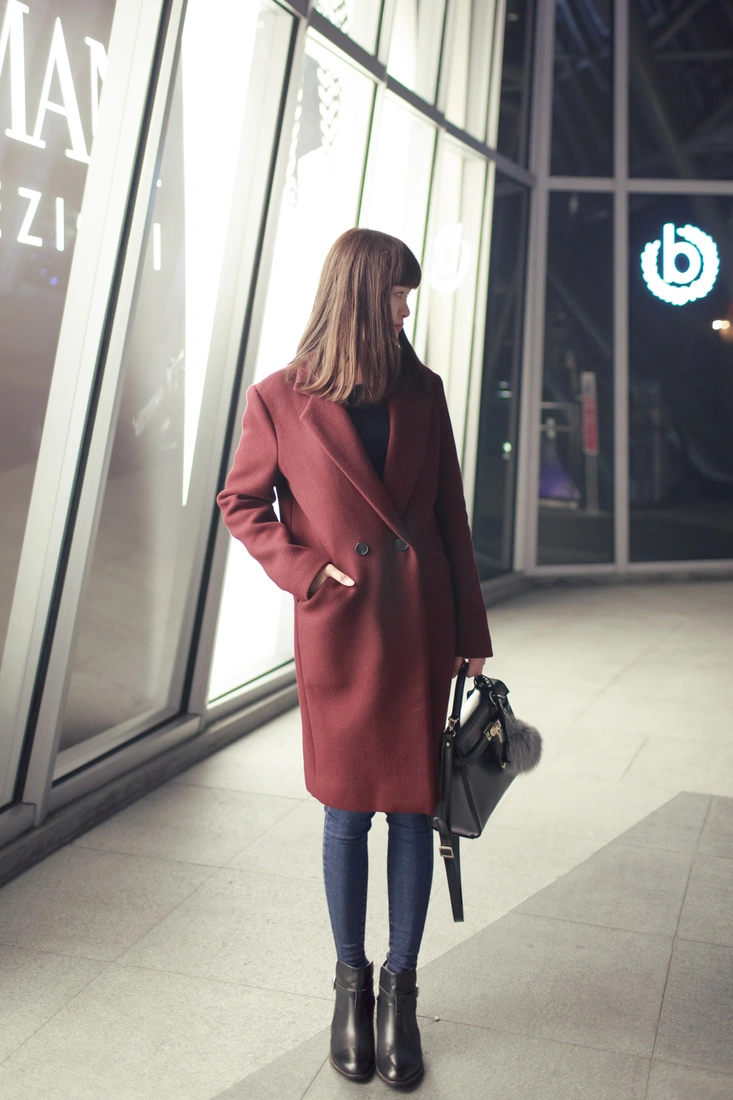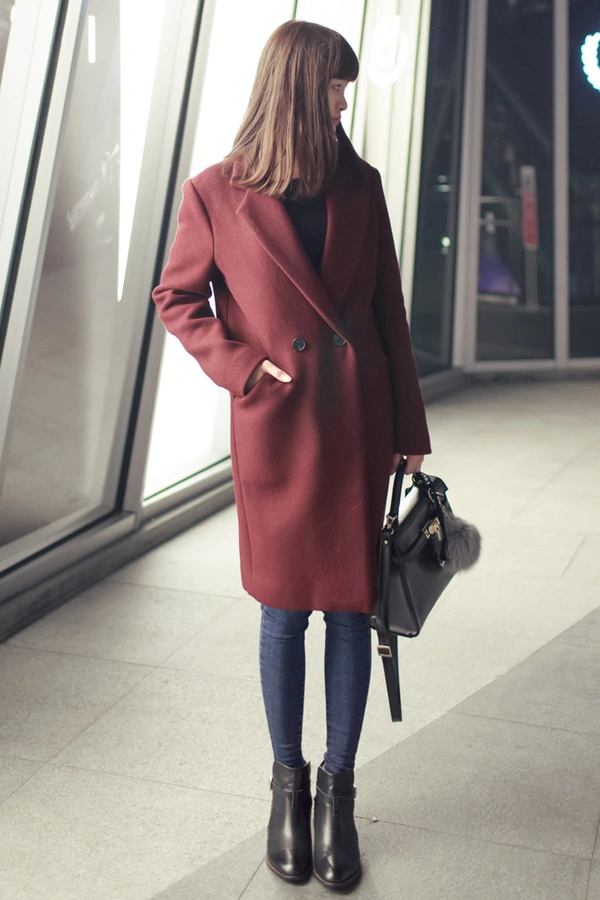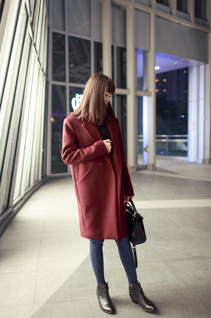 穿起來非常俐落個性,很秋冬的顏色,適合成熟的女生,這種上寬下窄的設計,會讓人看起來更顯瘦噢~大推好美的酒紅色!!