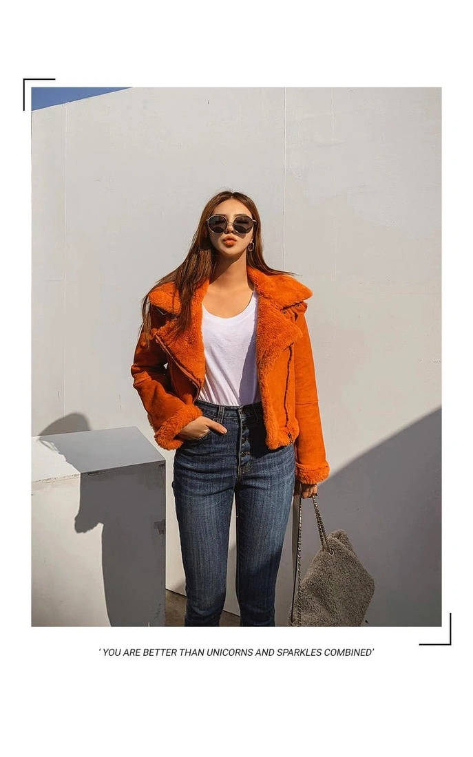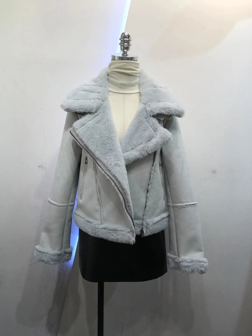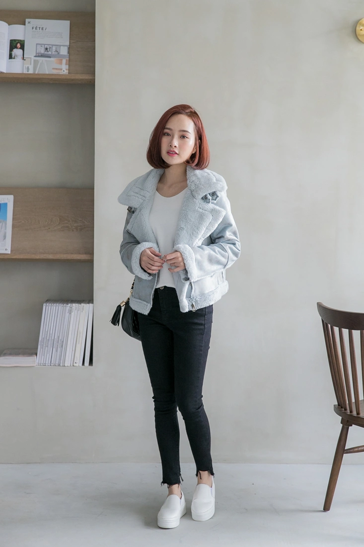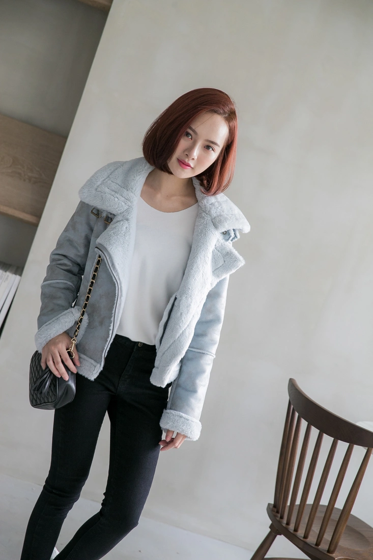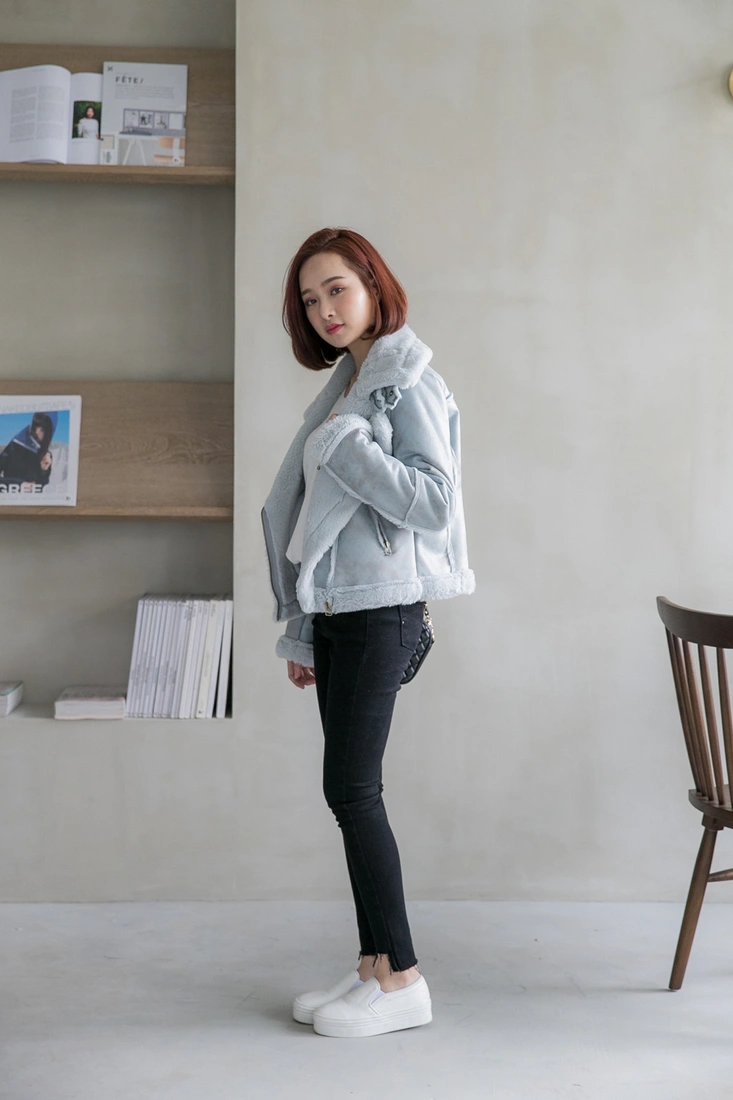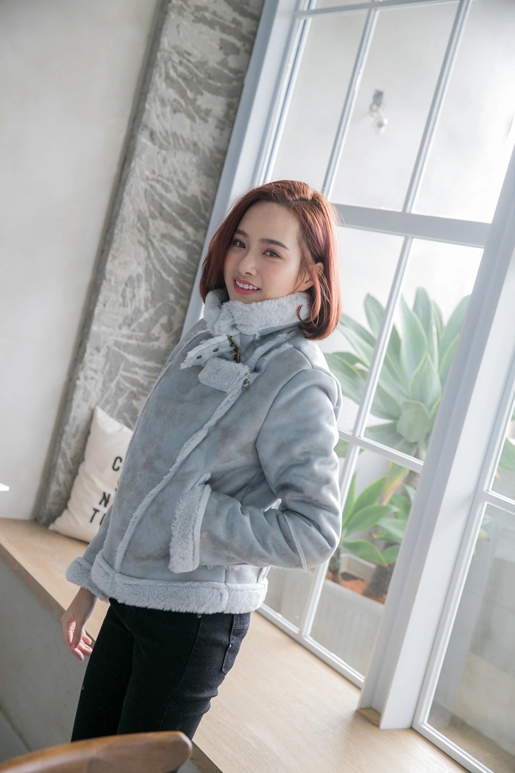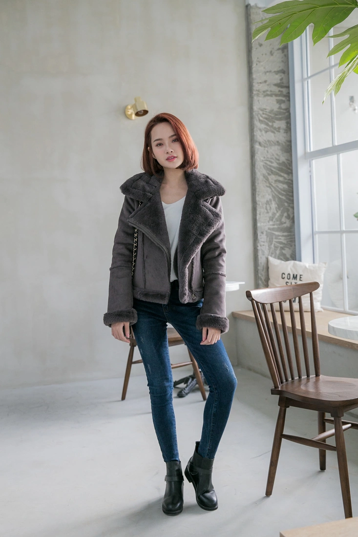 材質:麂皮,內裡全裹毛(包含手臂)高級人造毛(毛厚實超軟超親膚)/拉鏈式雙口袋,袖口斜拉鏈造型,脖子雙扣環(可整個扣起來可防風)也可變成外翻領,兩種穿法隨心所欲~