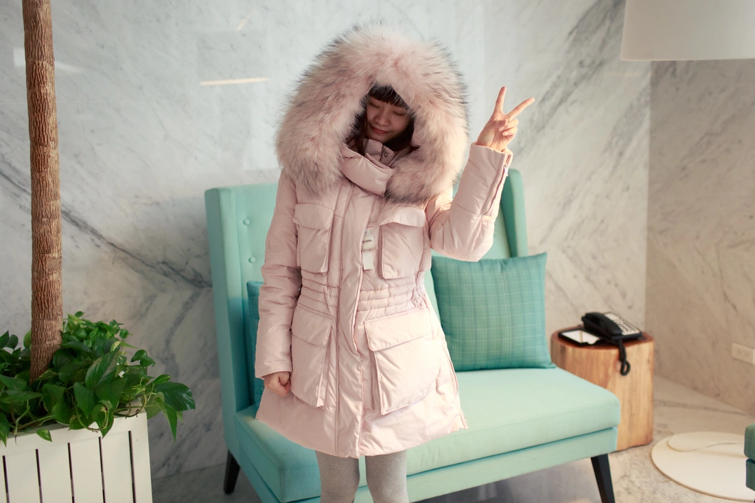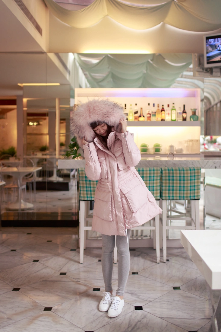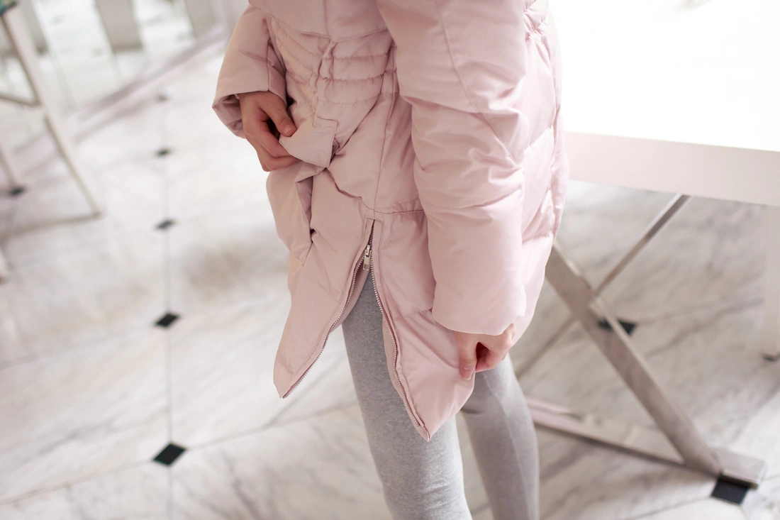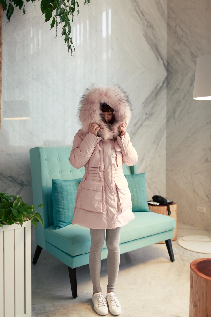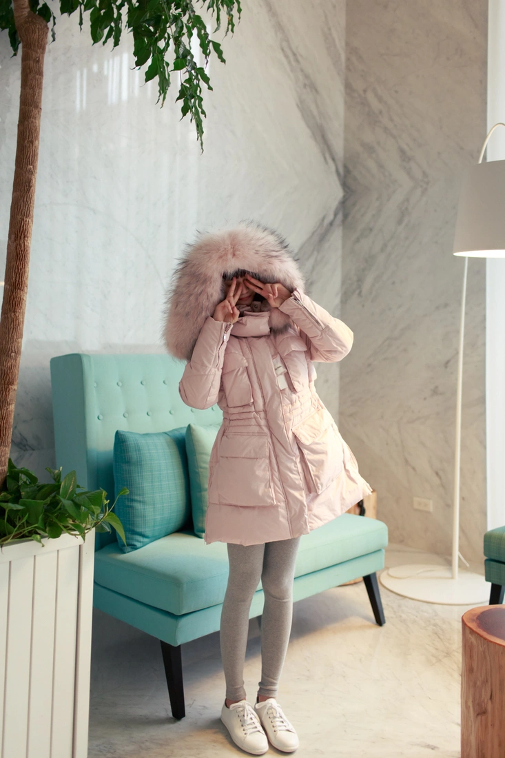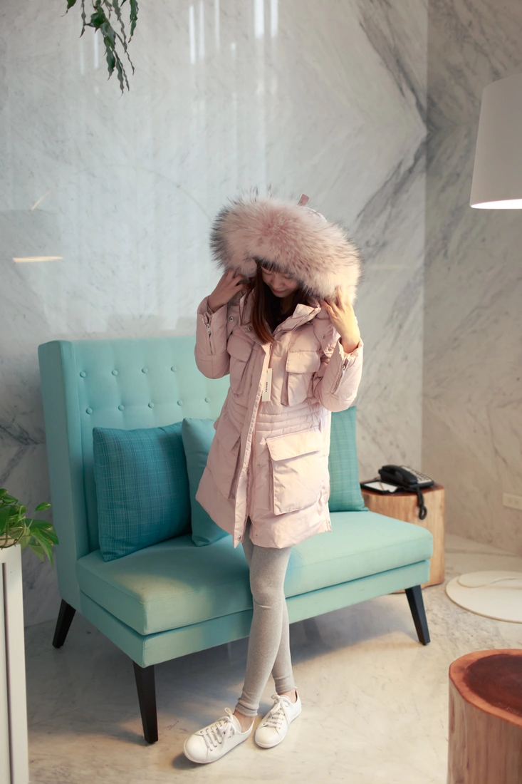 名品質感的羽絨外套,顏色粉嫩嫩,一件可以穿好幾年,去寒帶國家完全不怕冷,重量輕方便攜帶,長版收腰的設計好顯瘦,