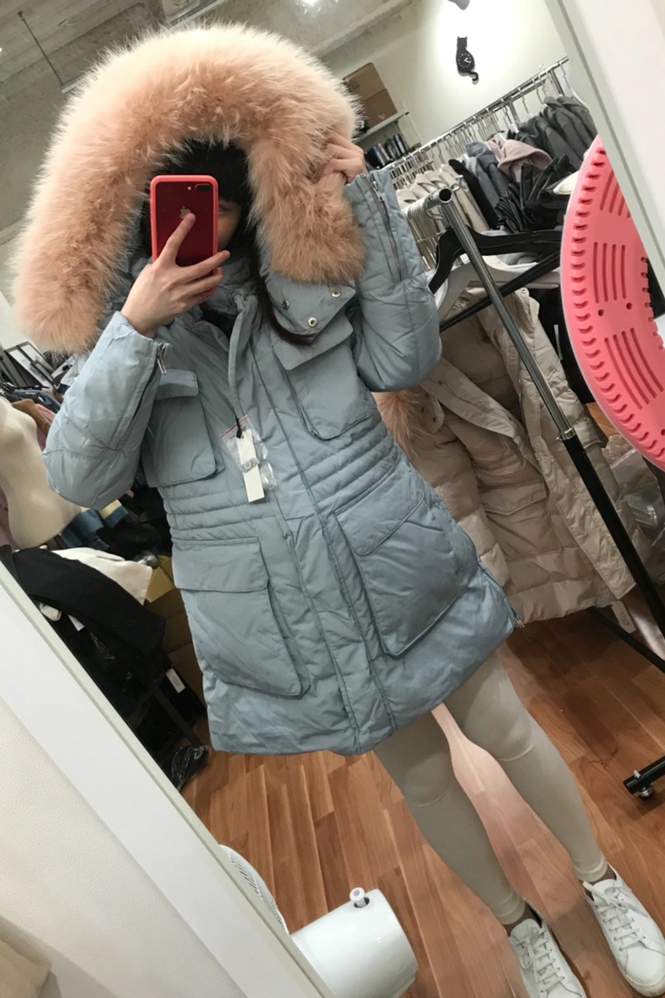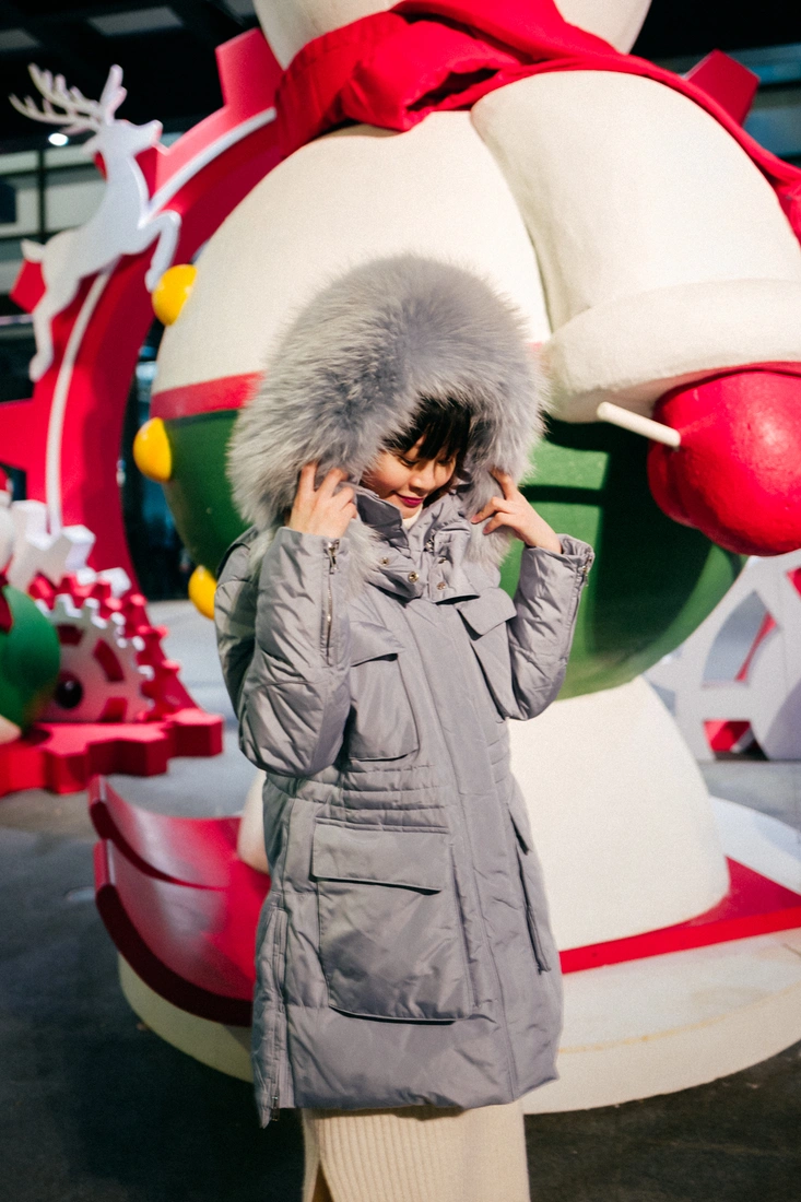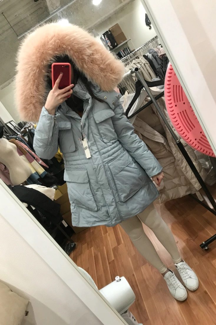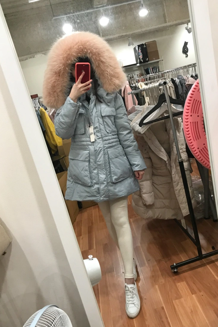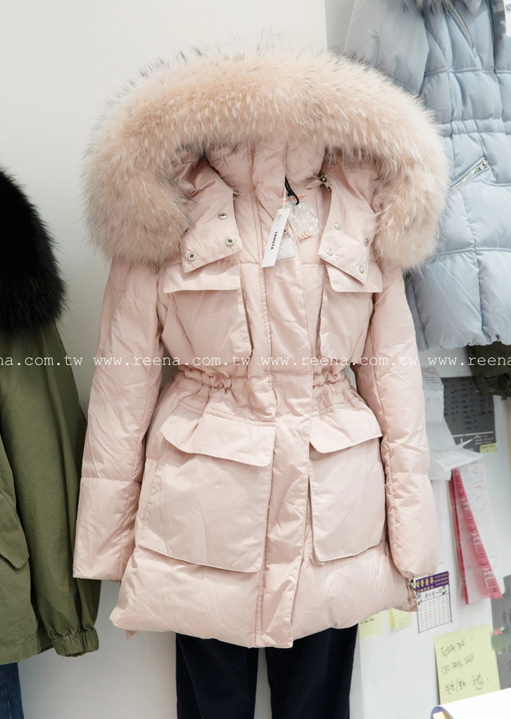 材質:100%羽絨+超柔軟蓬鬆毛領(毛可拆)/ 兩大兩小功能性口袋(內有羽絨),內縮腰,脖子四扣可拉起來防風,袖子處有做內縮口,