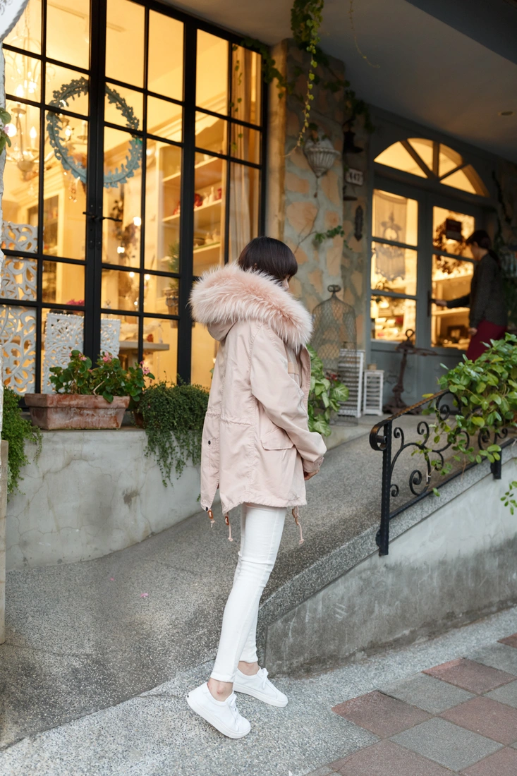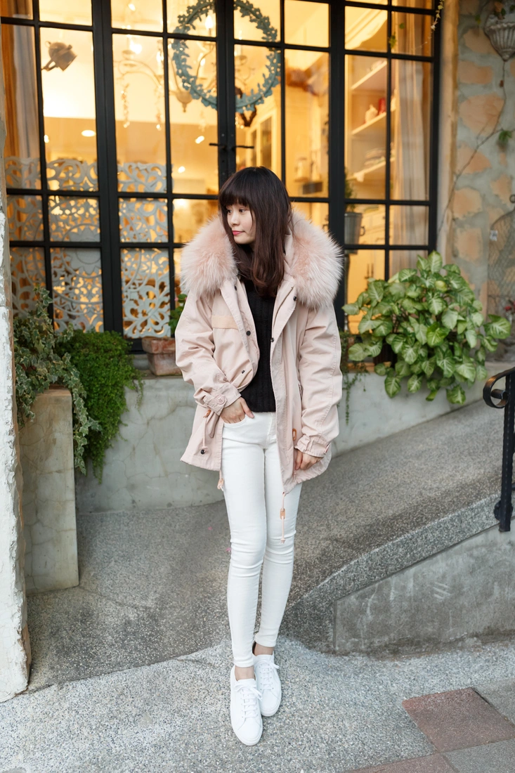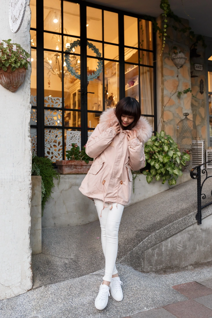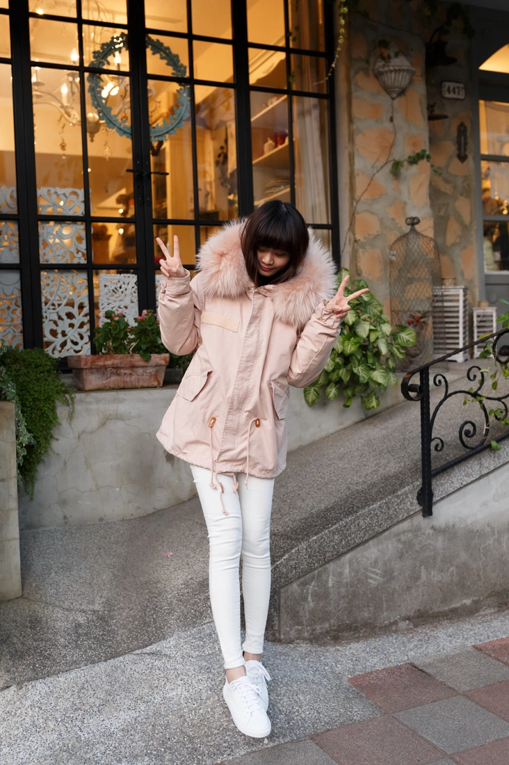 毛可拆,帽不可拆,袖子保暖縮口設計 有縮腰可以自行調整,質感佳,不挑身材,嬌小女孩也可以駕馭喔