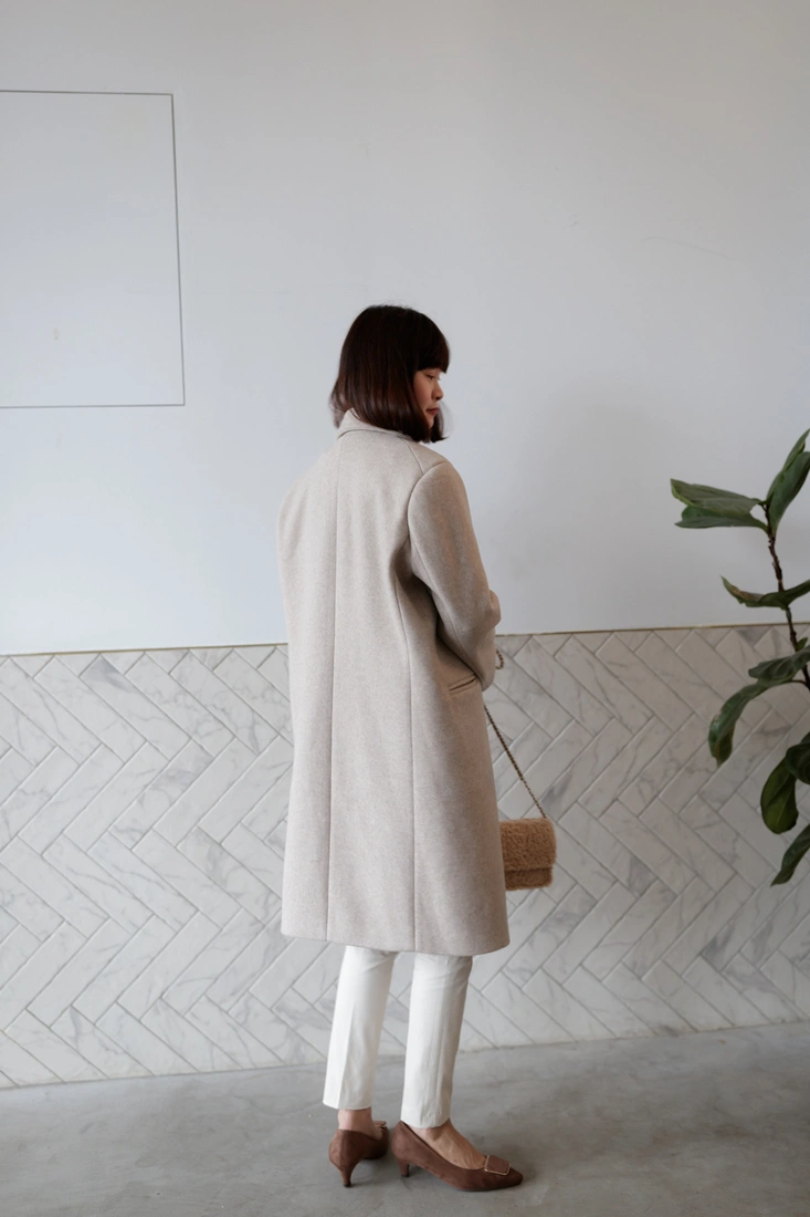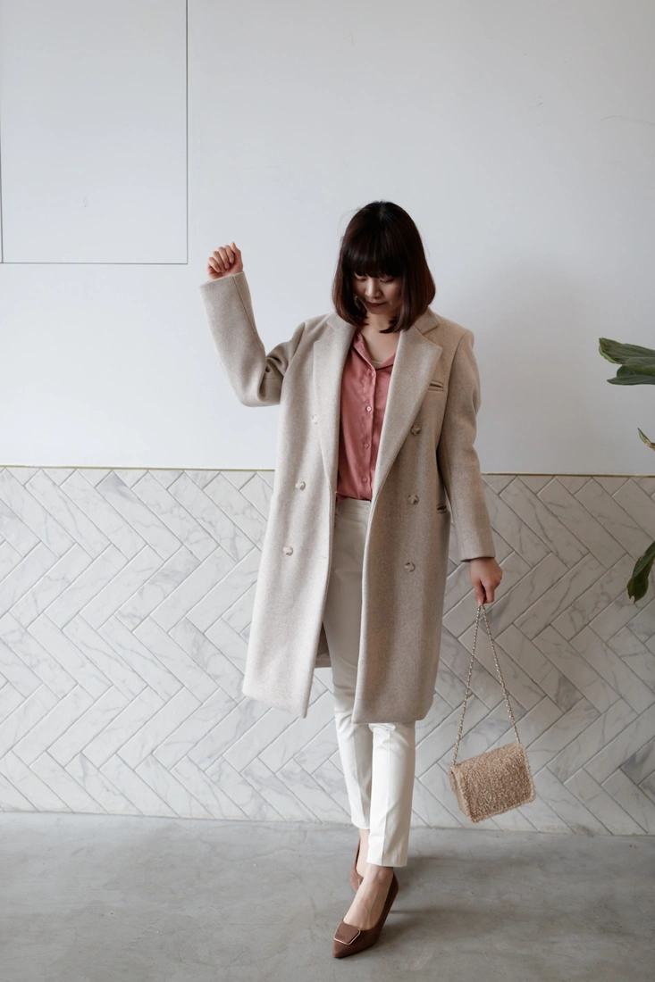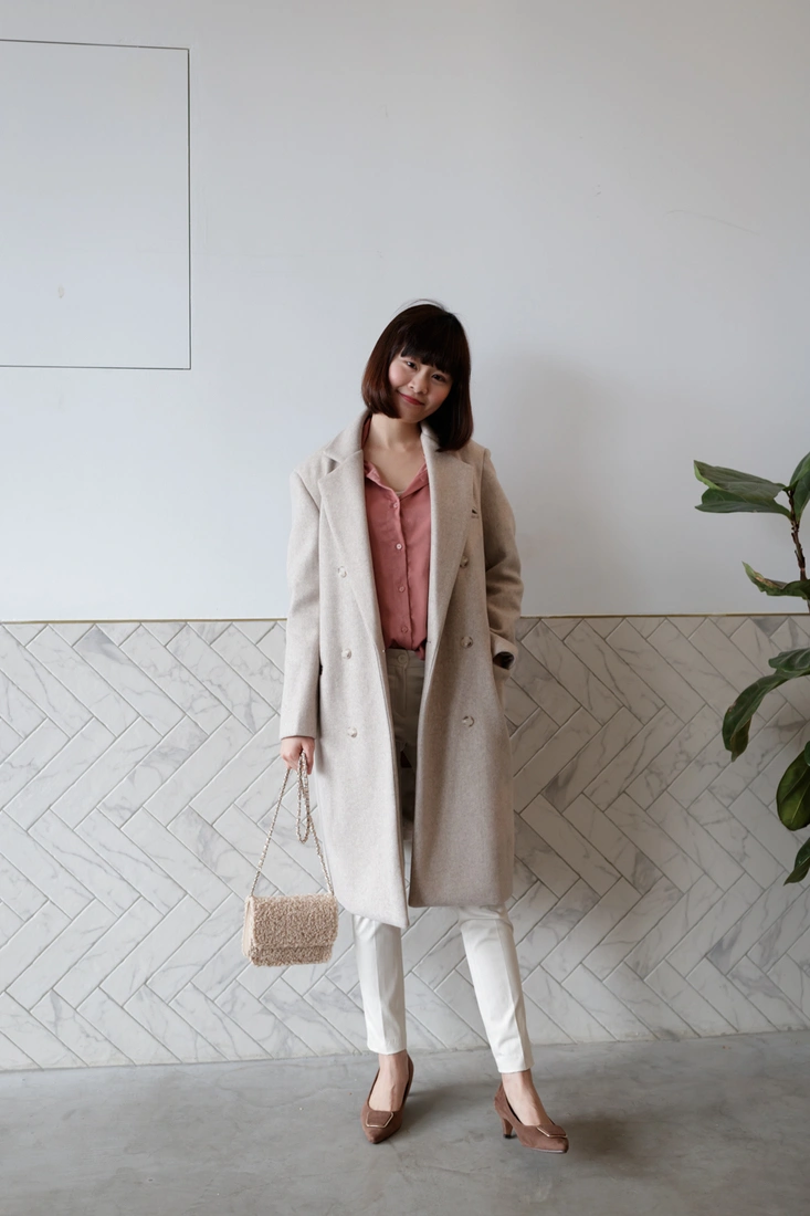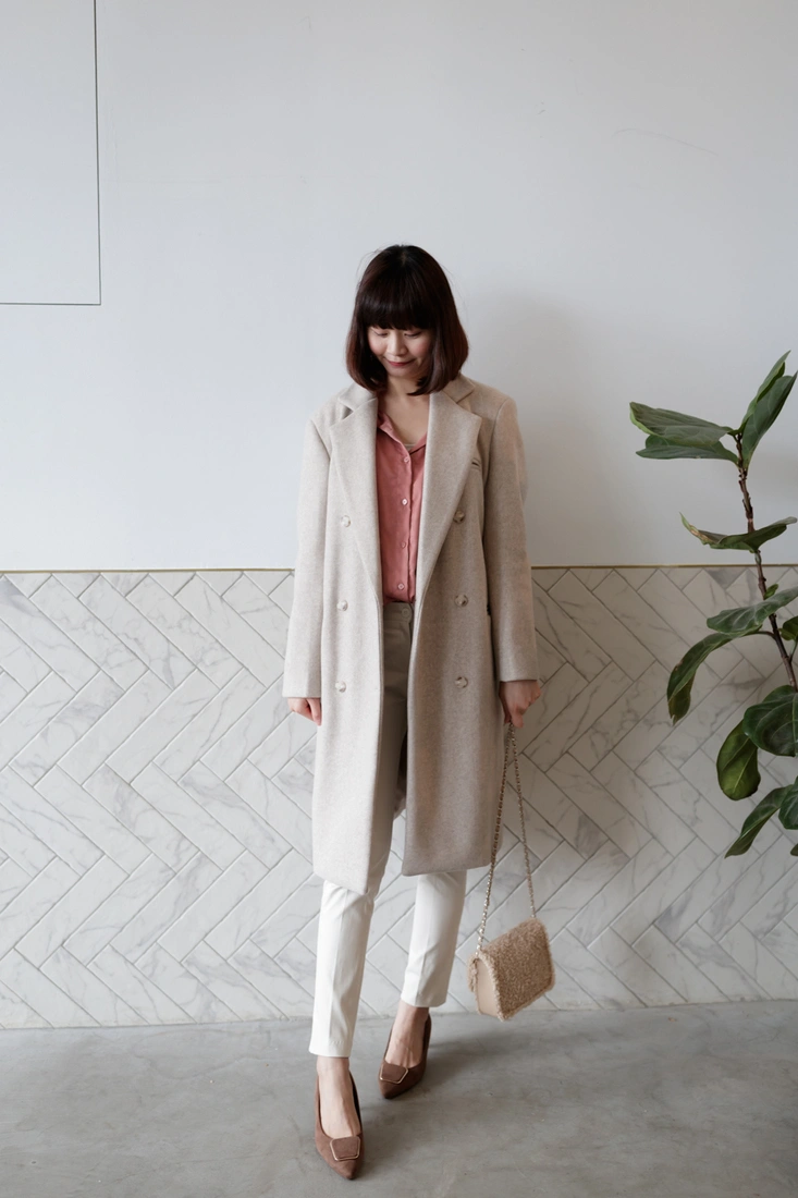 這款羊毛大衣面料很柔軟舒服,雖然羊毛含量只有20% 但是店長實穿其實還蠻保暖的
