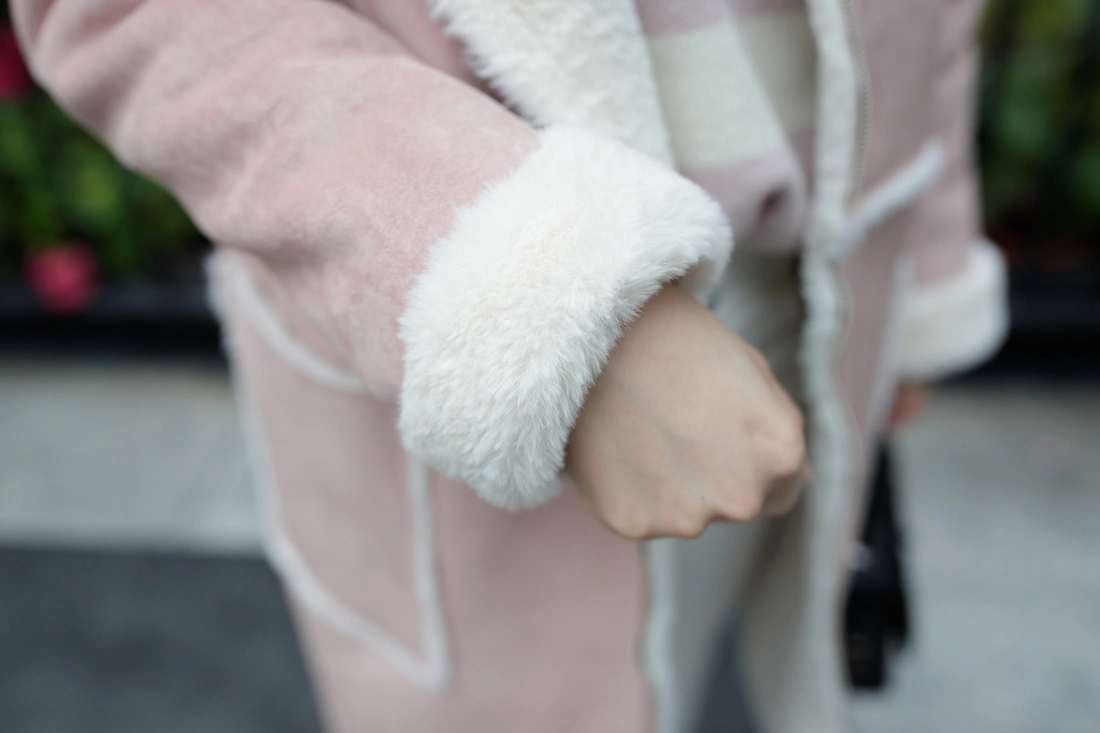此款外層為厚實麂皮料,內裡整件全鋪毛,毛不是薄薄的是有厚度的