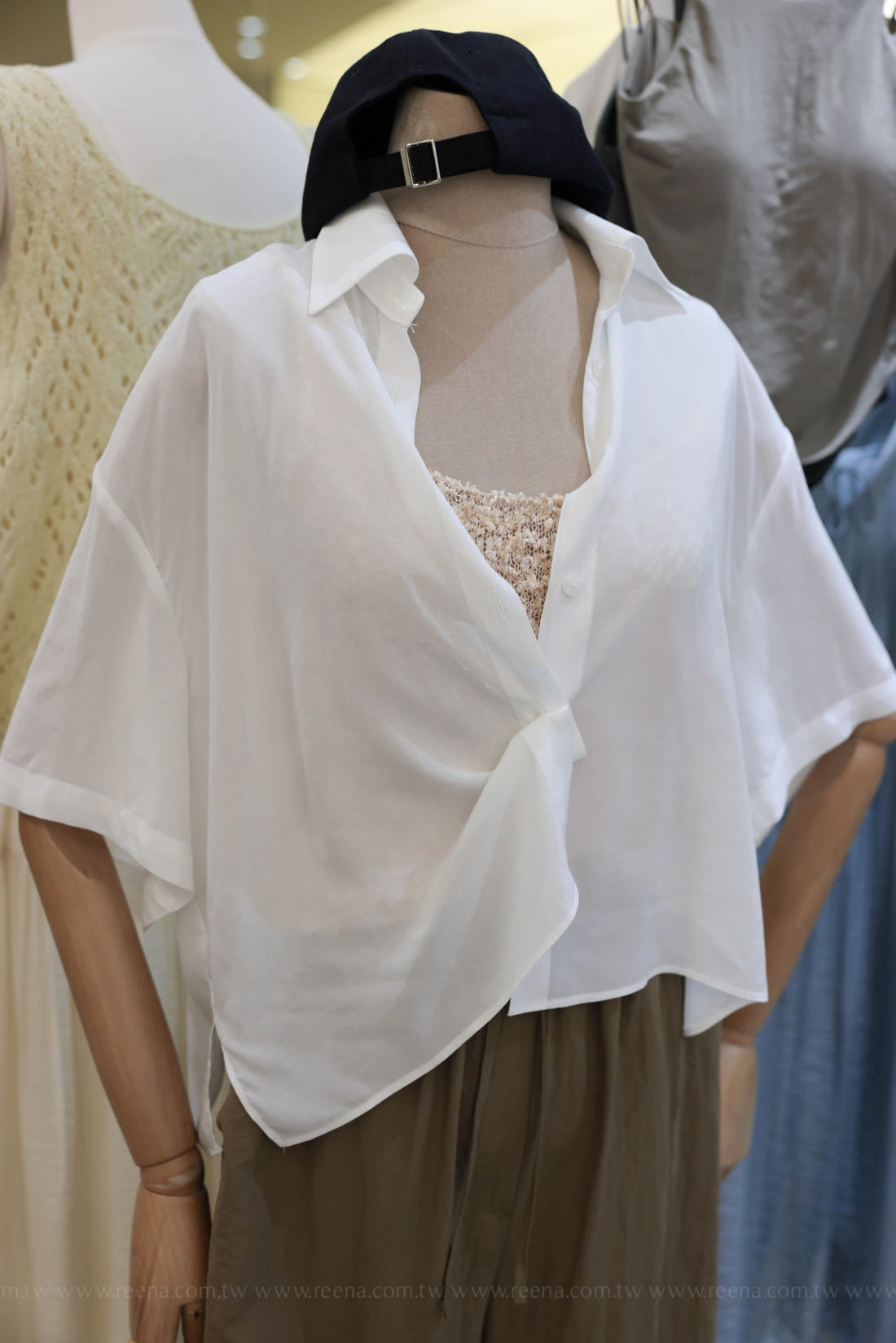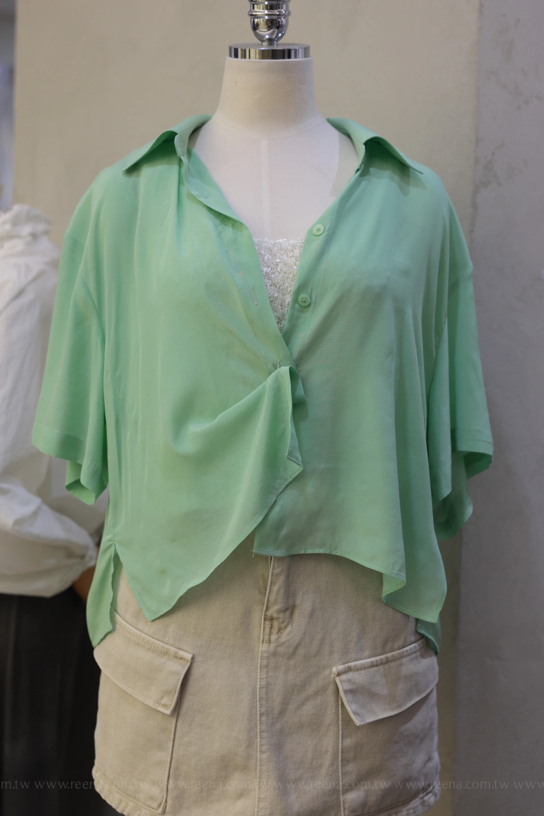 天絲材質/寬鬆版型/短版衣長/短袖兩穿襯