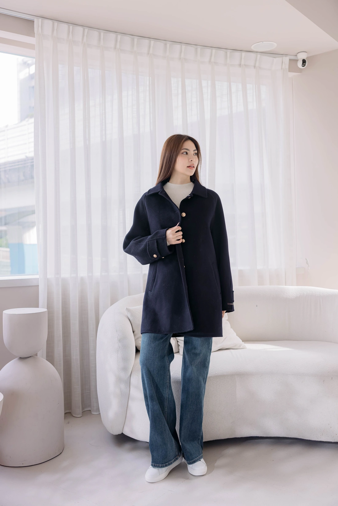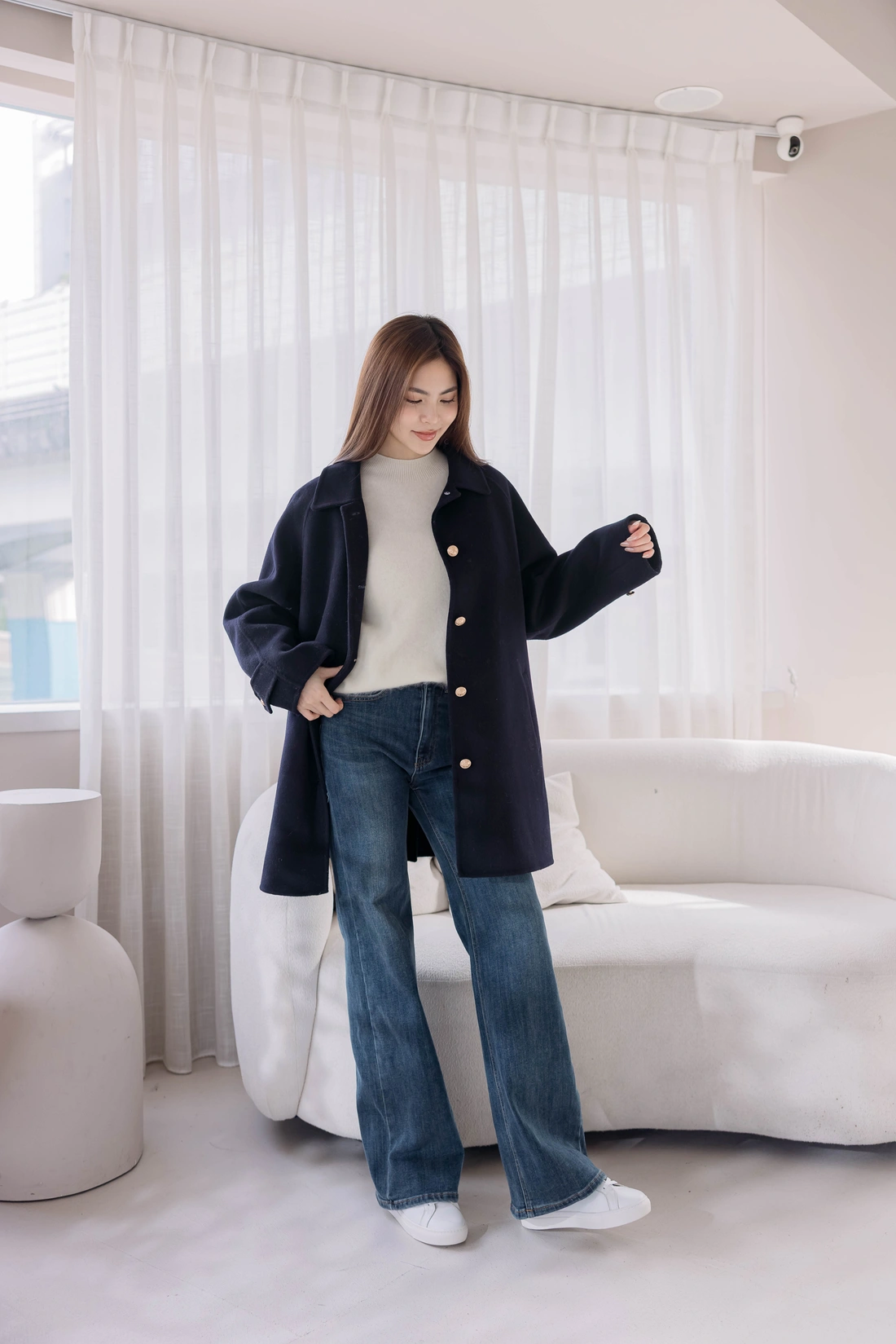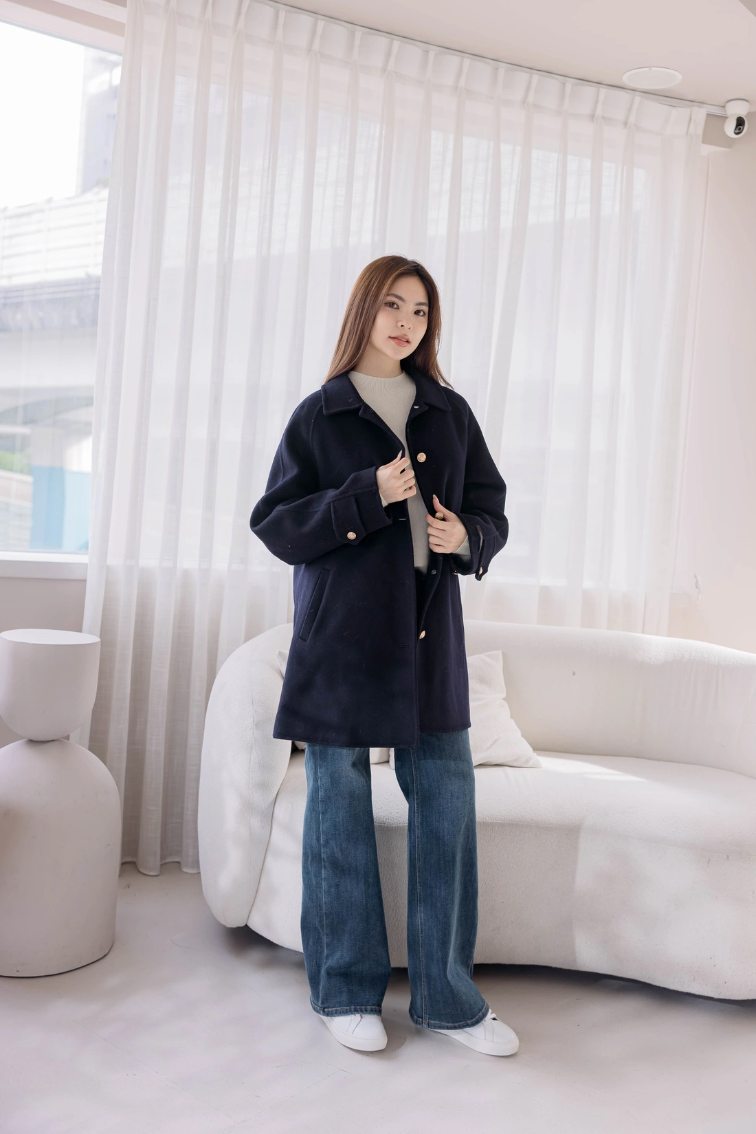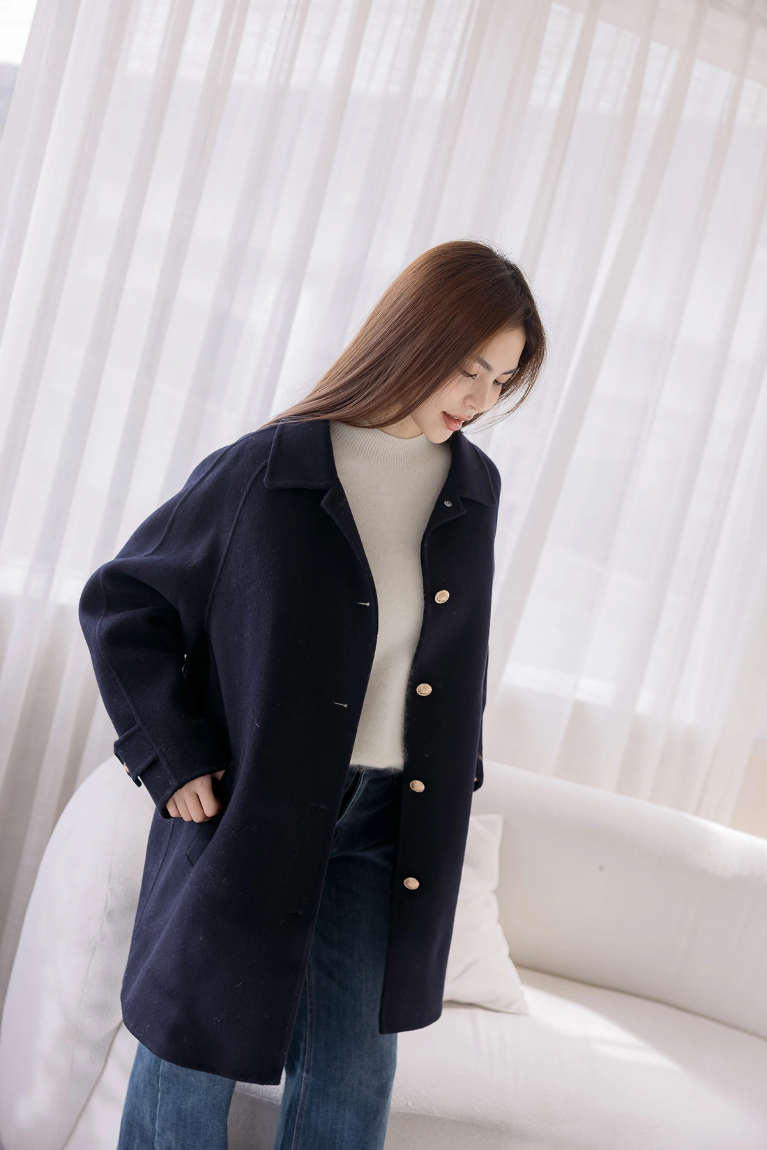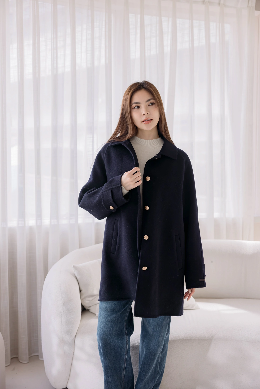 內裡鋪棉可拆式背心貼心設計/圖案設計感金釦/正韓製 !!純羊毛手工大衣