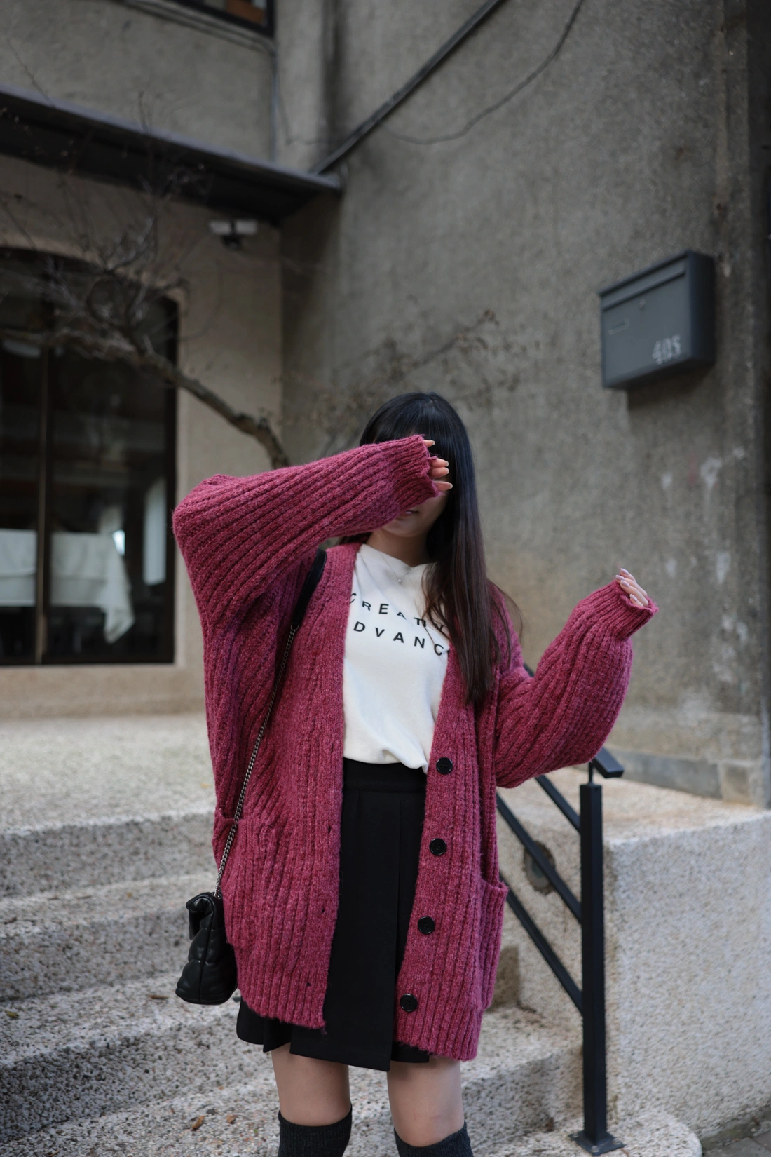 闆娘小編超推粉(莓果)色實品超級好看/保暖輕巧還可當洋裝穿
