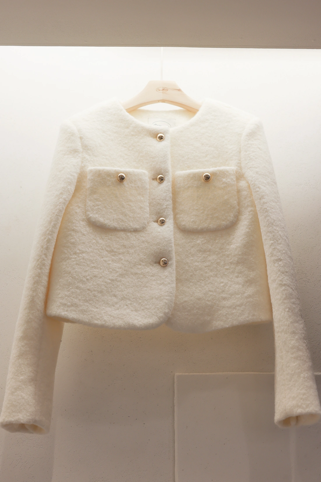 雙口袋設計小香外套/氣質優雅一身兼具/金排釦設計