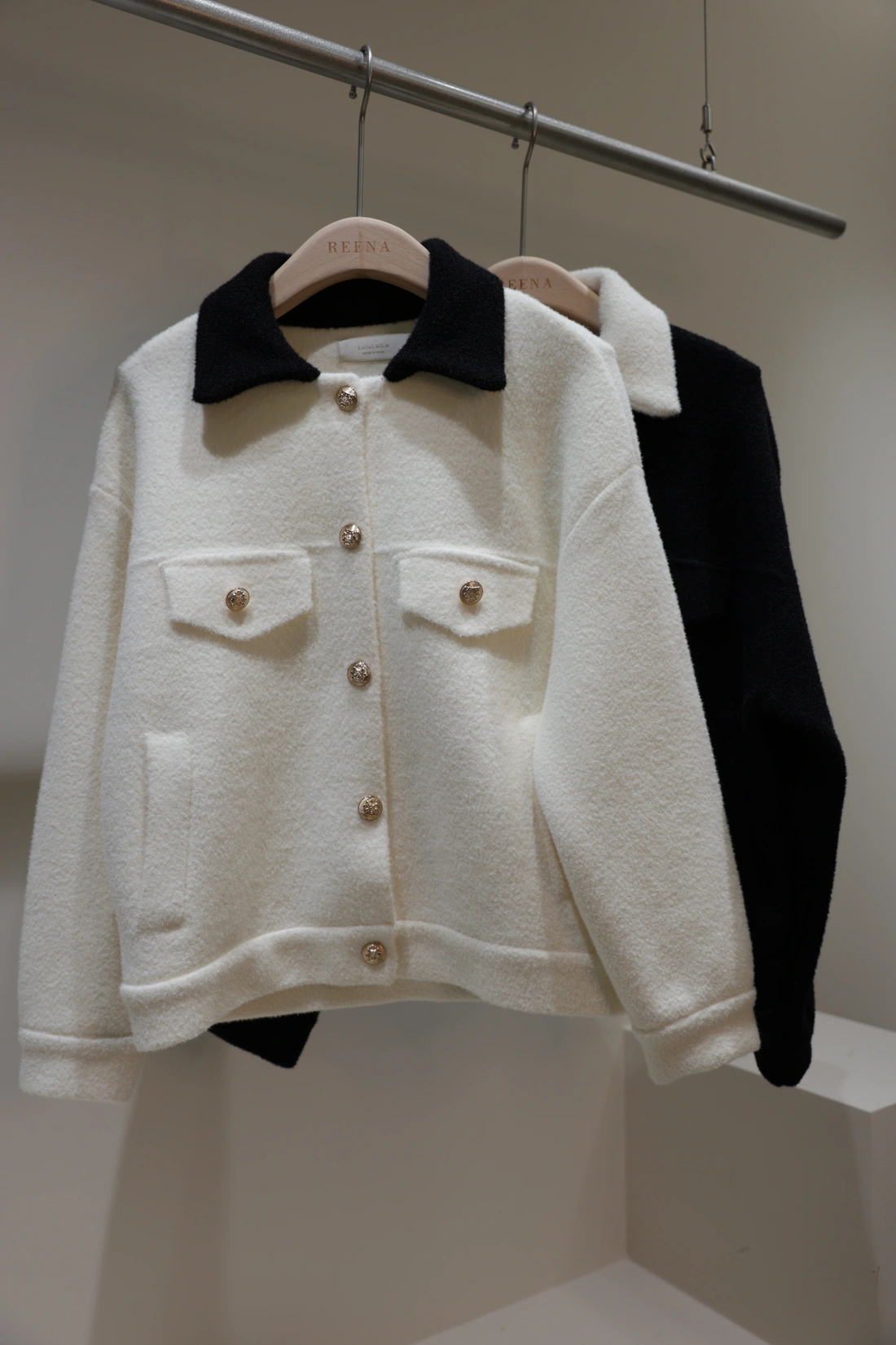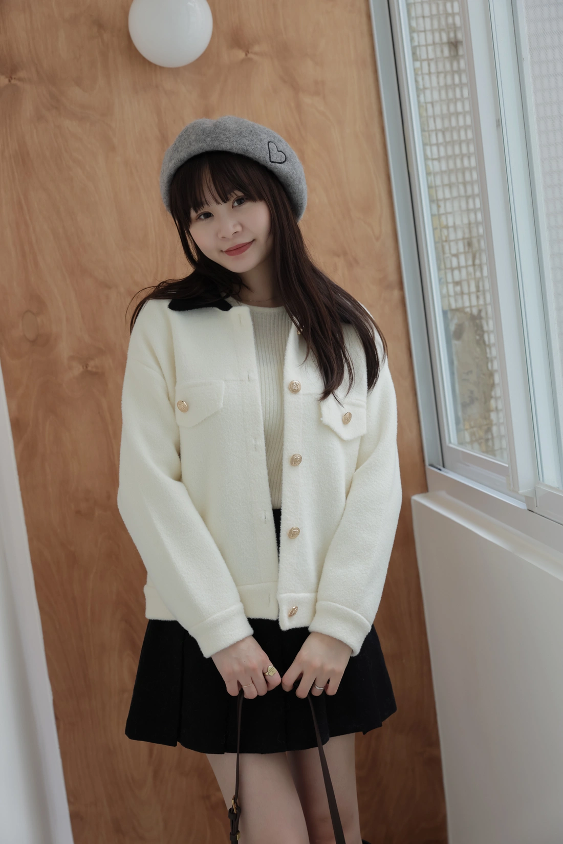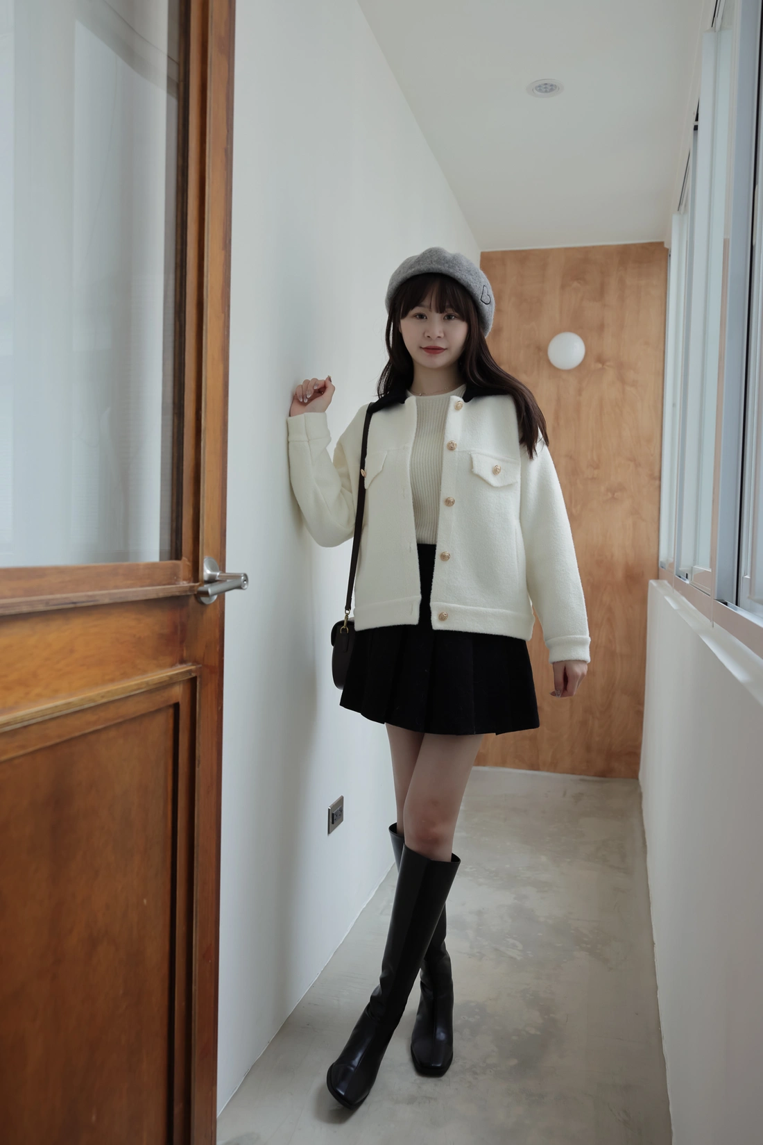 金釦設計外套/翻領撞色設計/假口袋造型設計