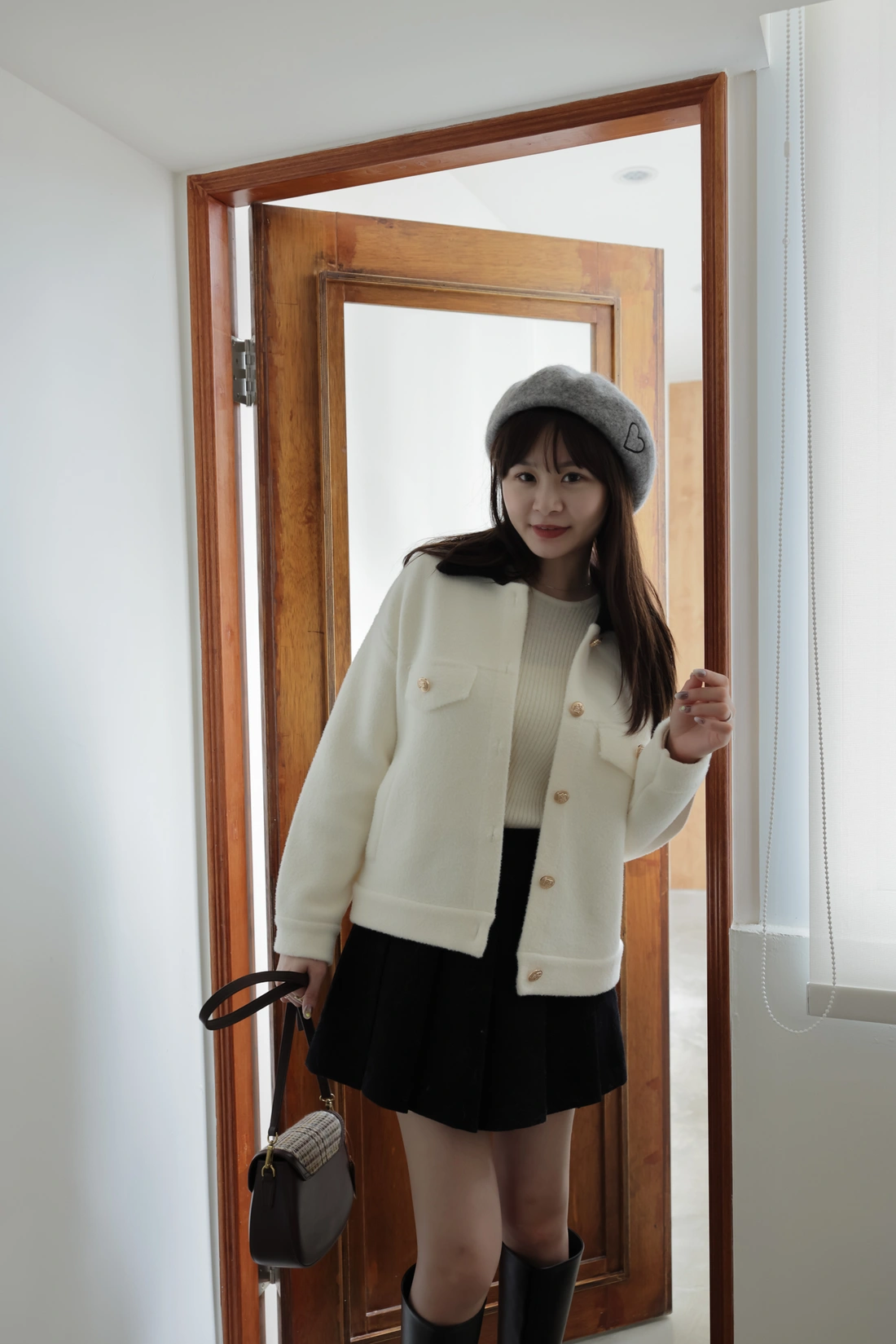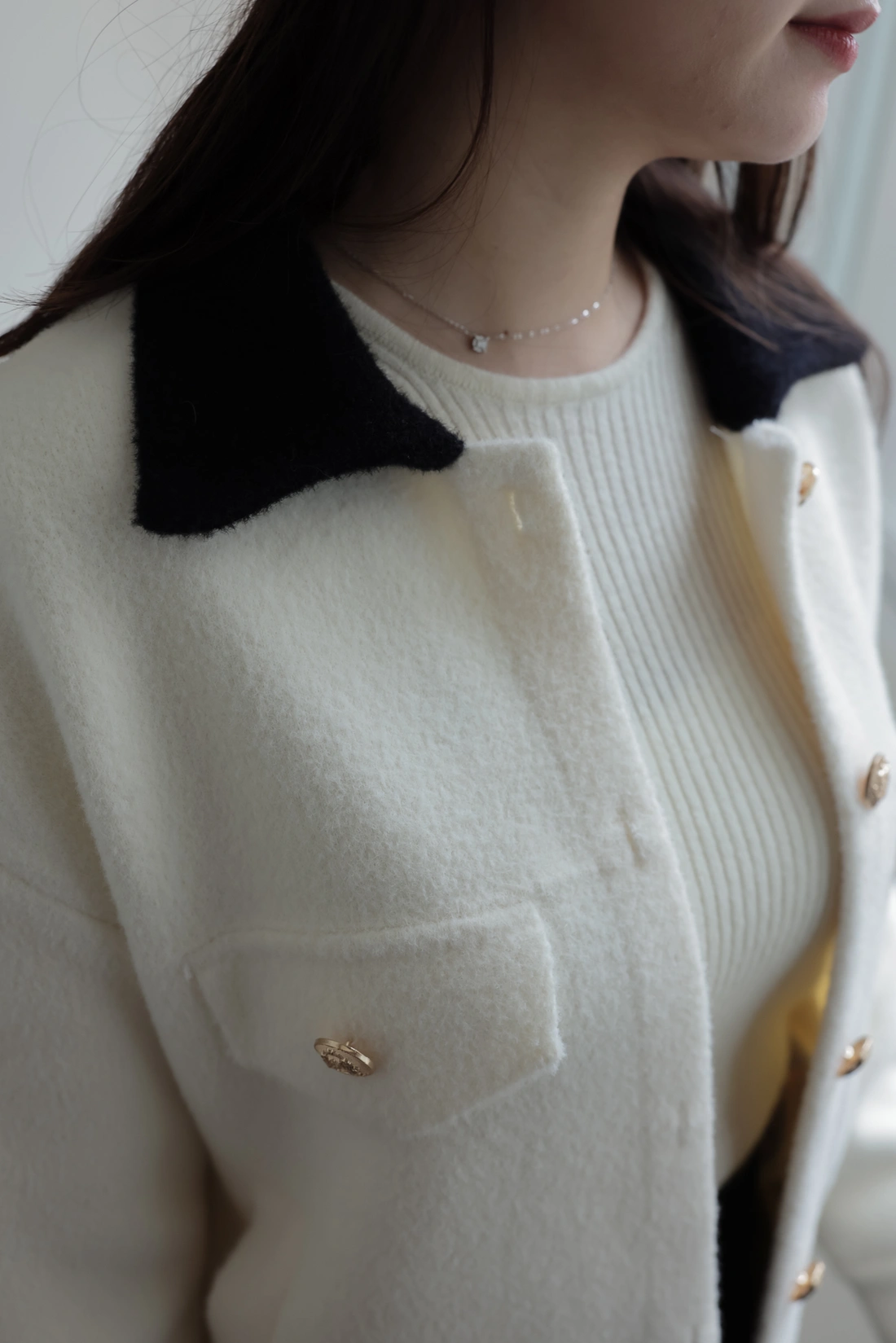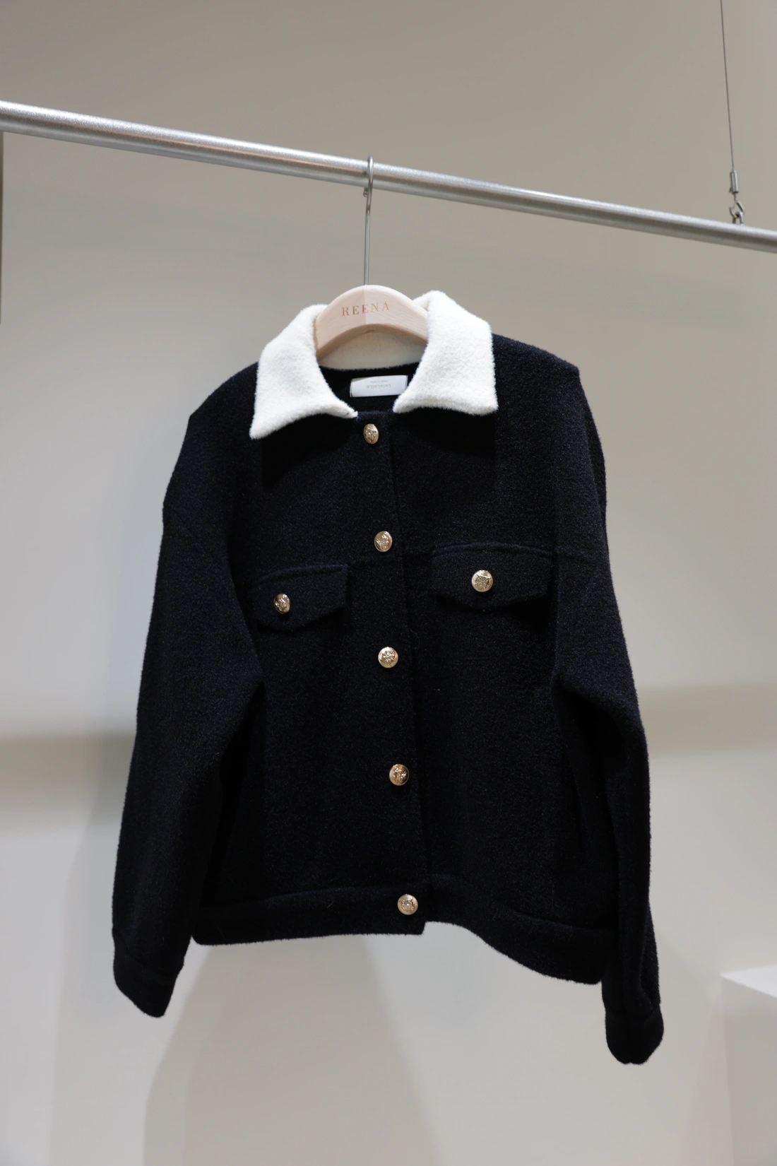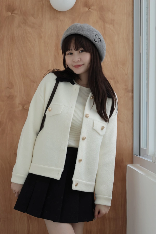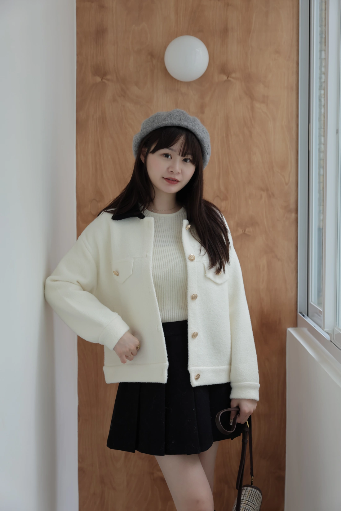 金釦設計外套/翻領撞色設計/假口袋造型設計