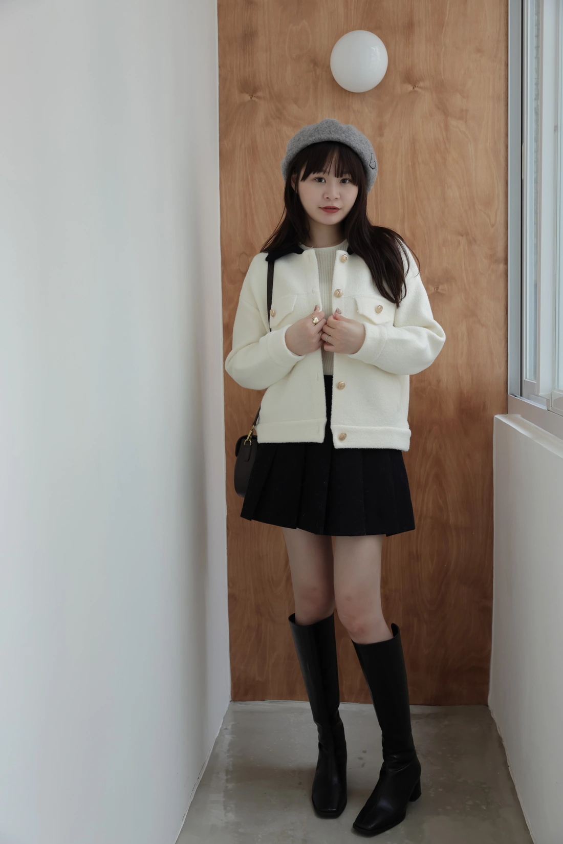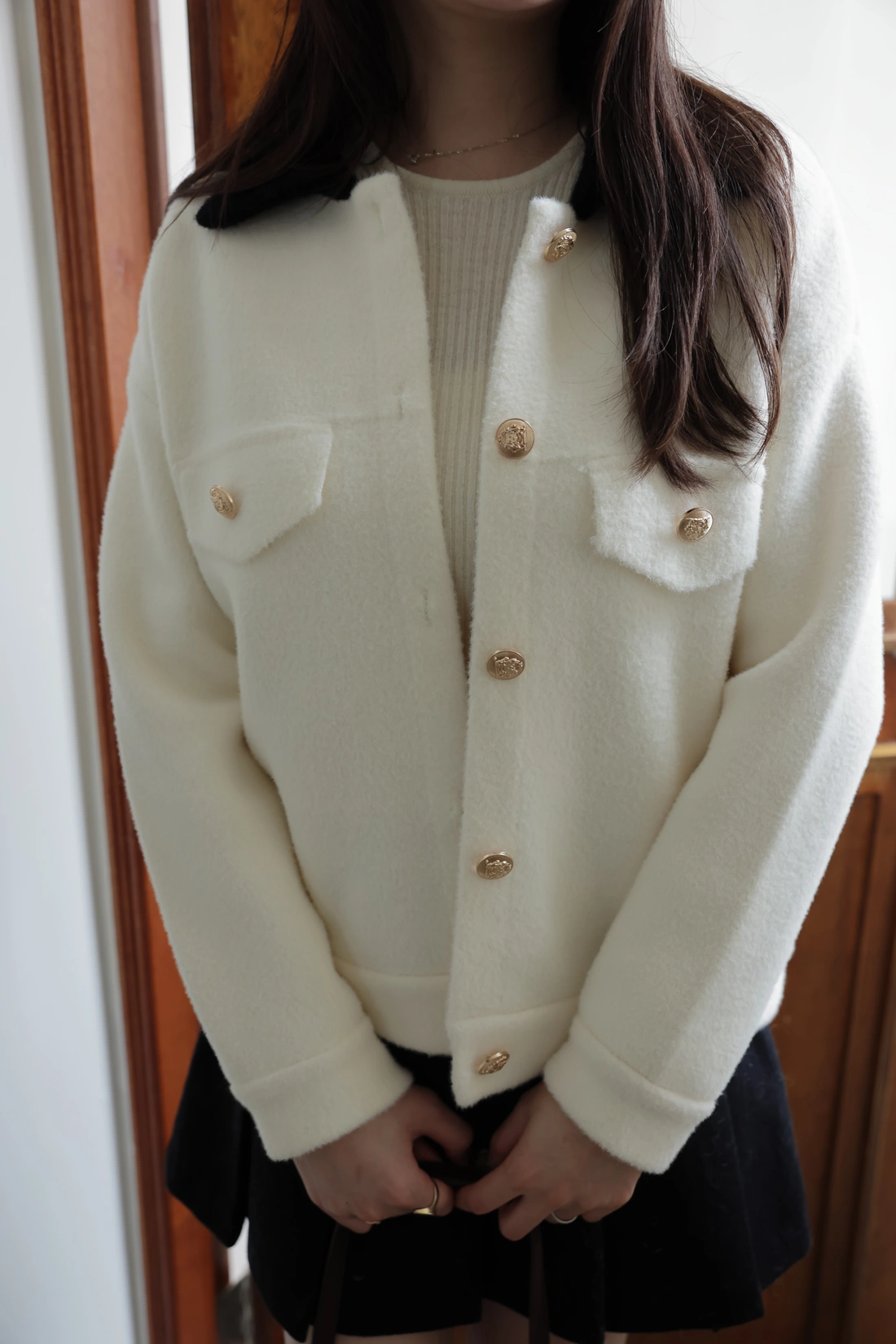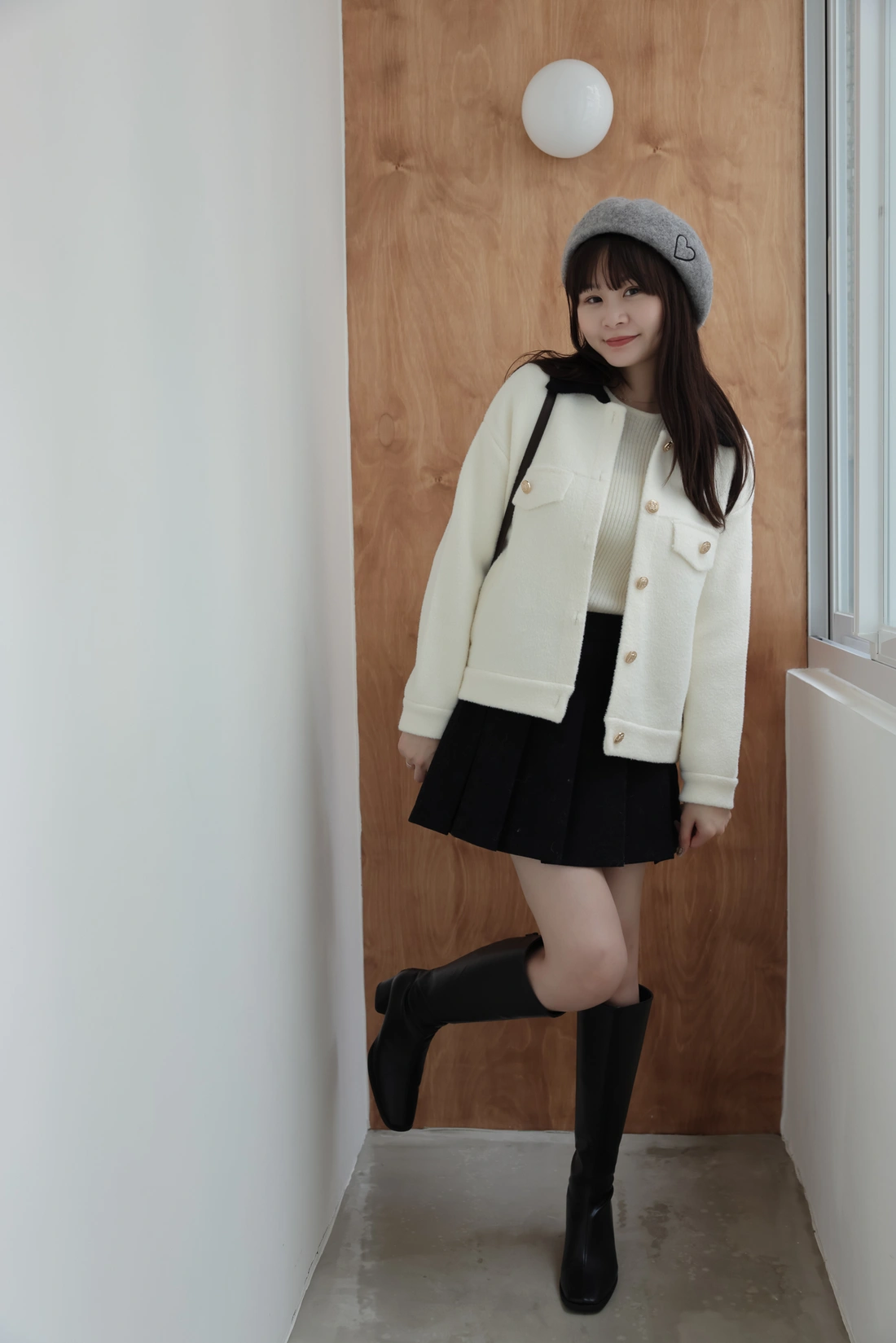 金釦設計外套/翻領撞色設計/假口袋造型設計