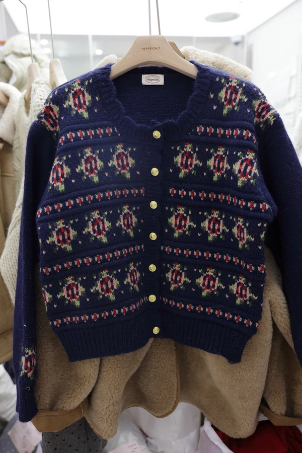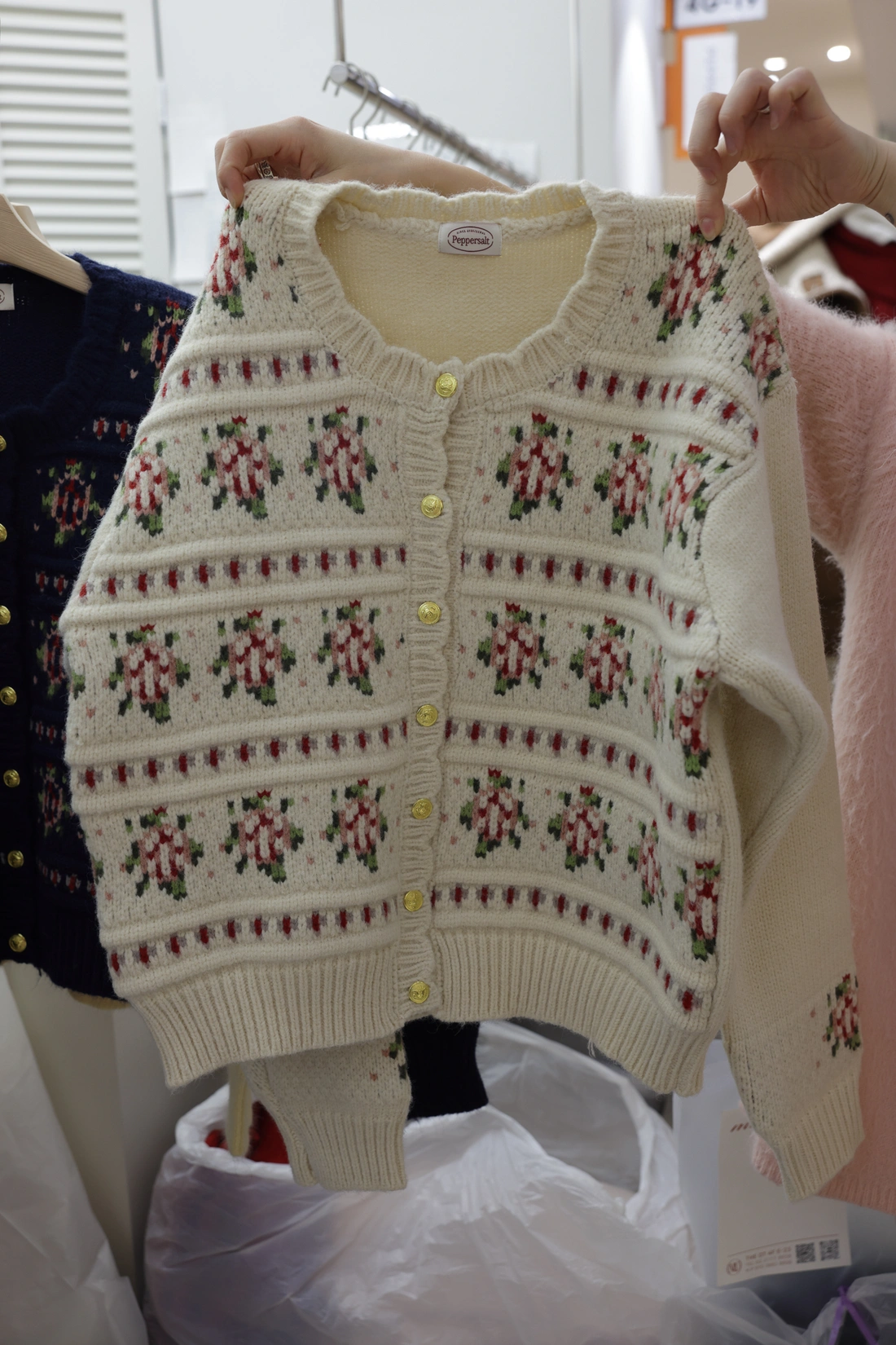 韓系小清新針織外套/舒適針織材質/正面薔薇花編織設計