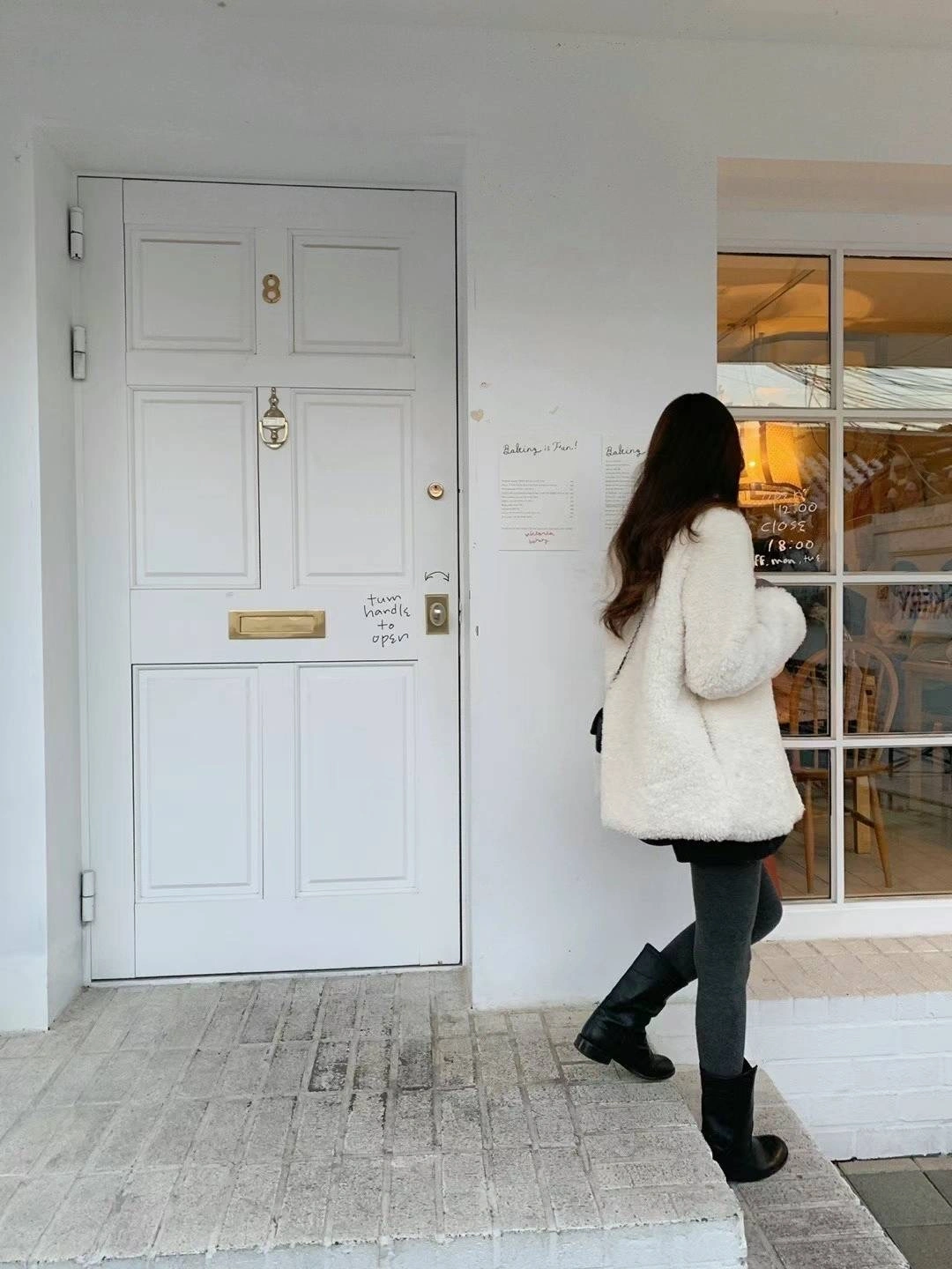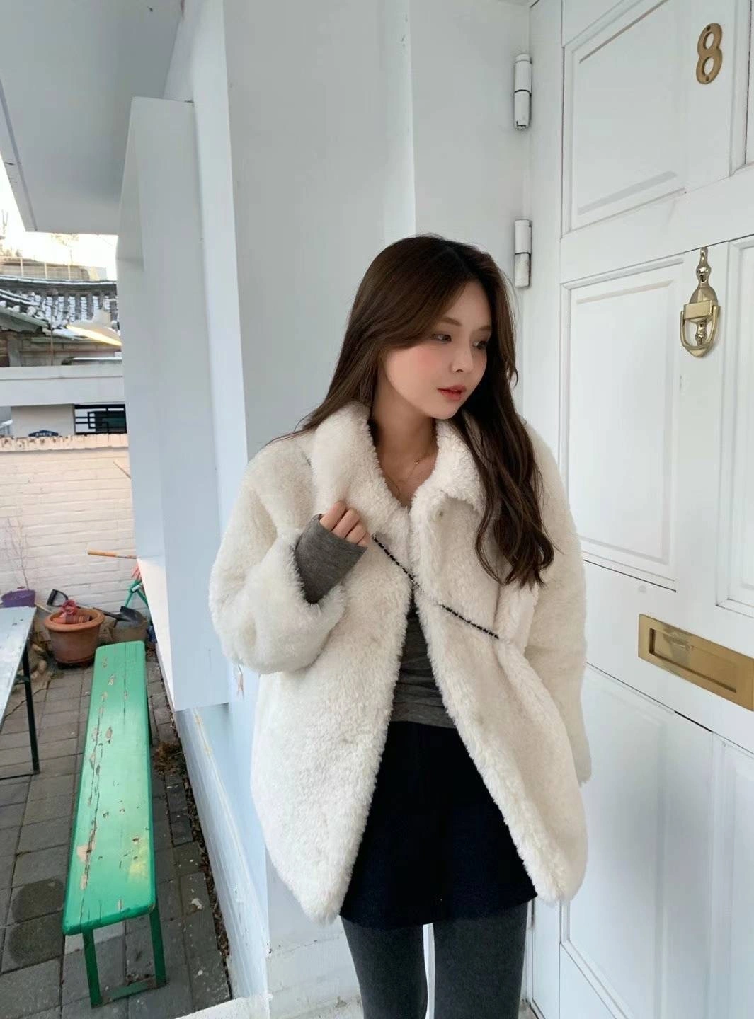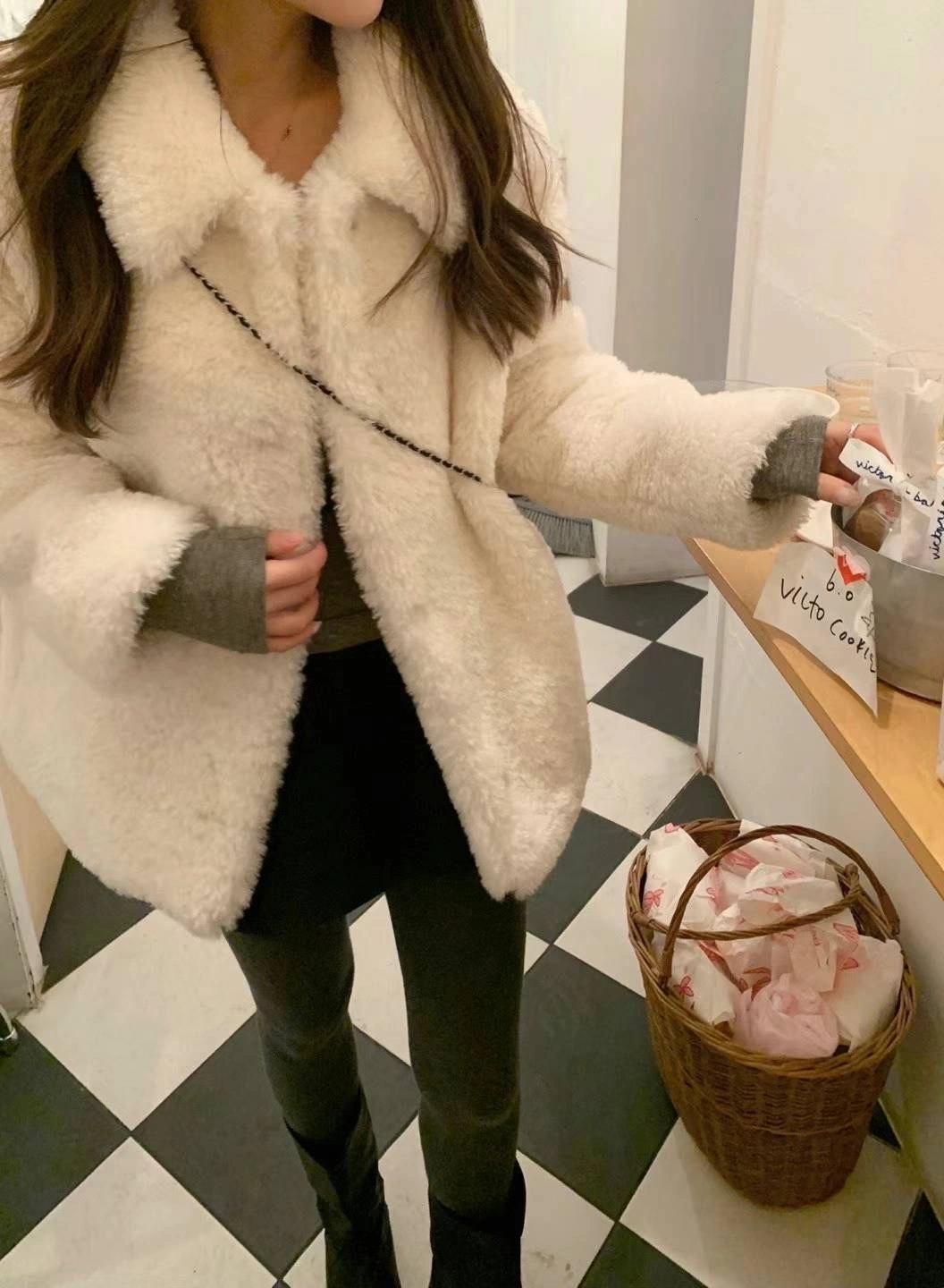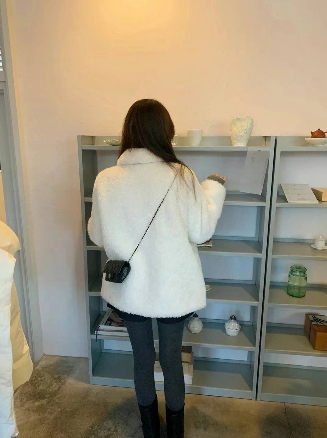口袋內裡絨布設計/非常有霸氣感的羊羔毛大衣/立領設計大衣