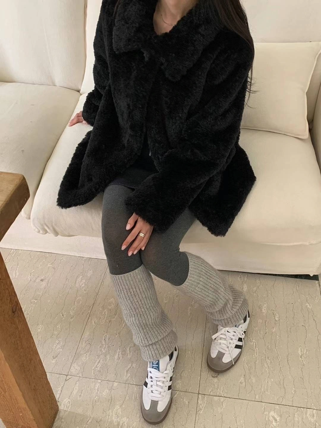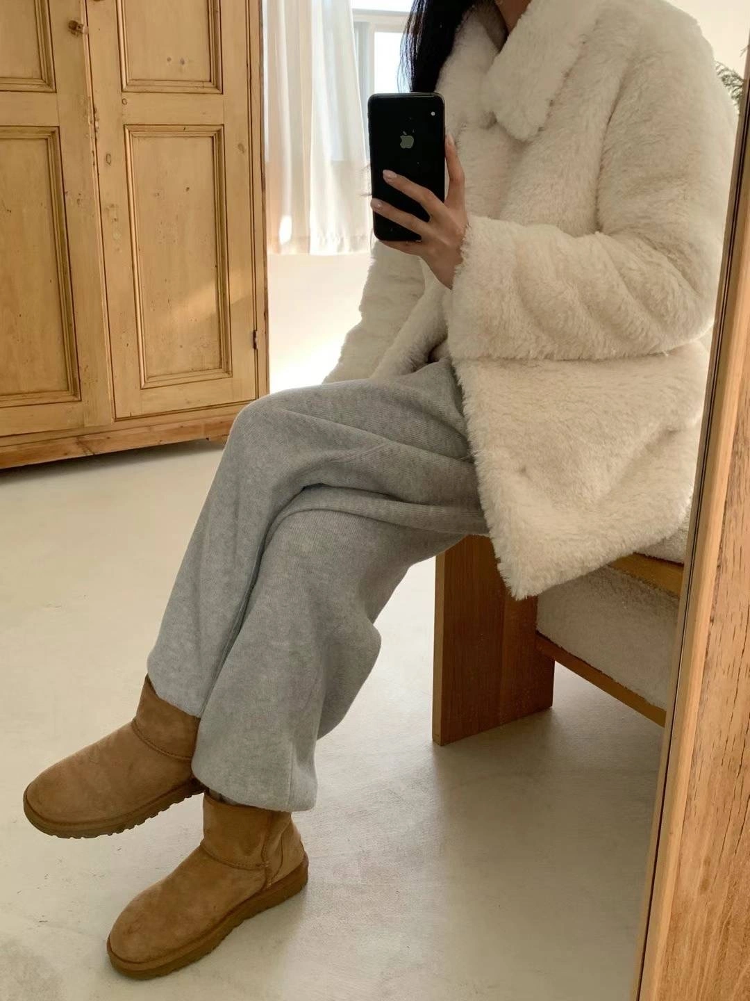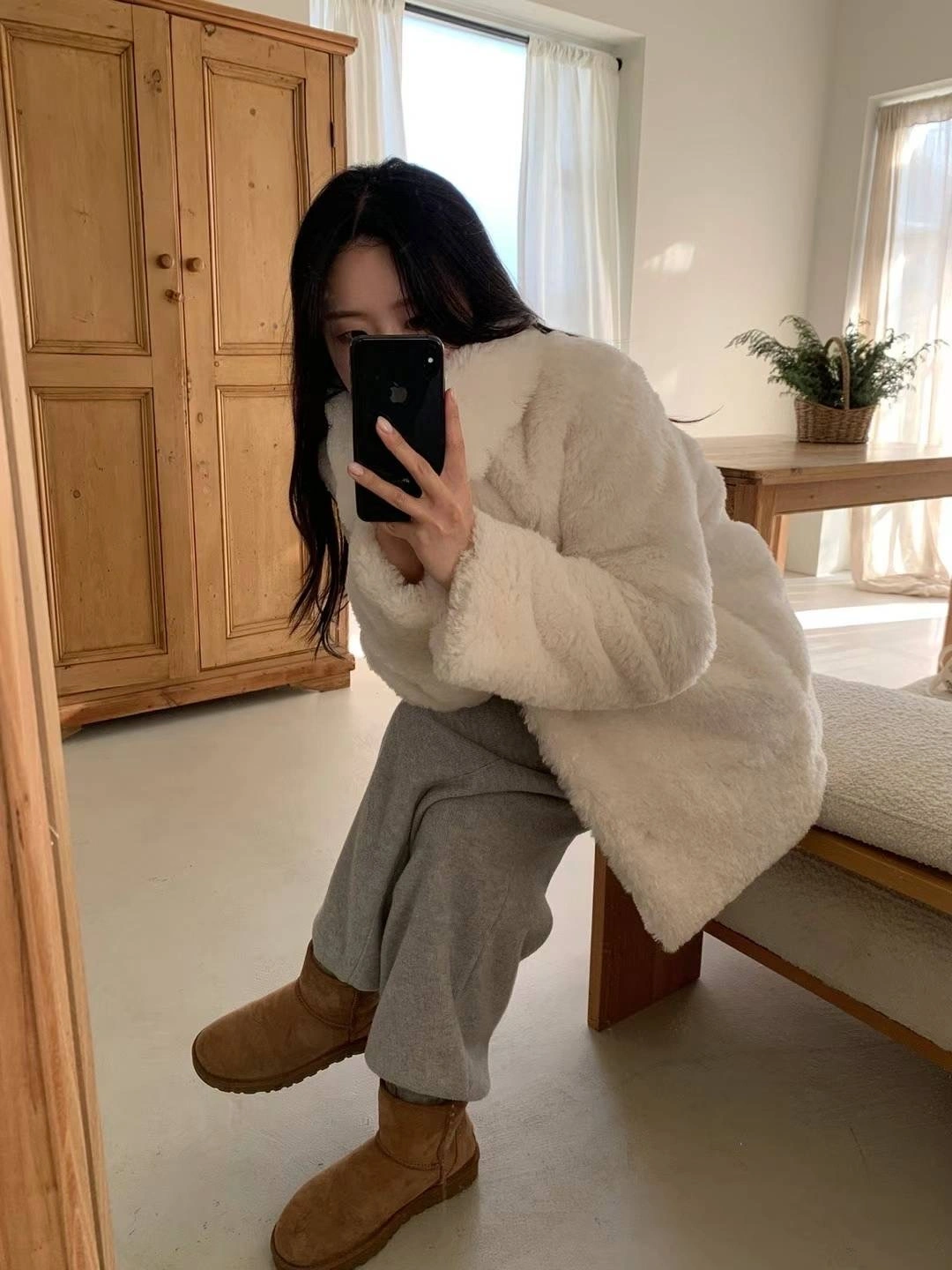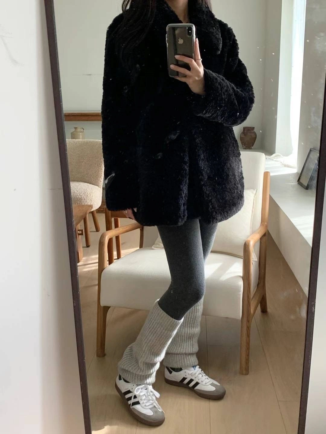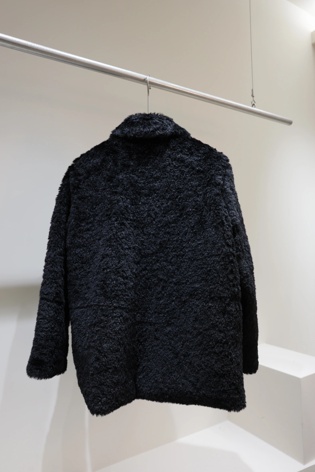 口袋內裡絨布設計/非常有霸氣感的羊羔毛大衣/立領設計大衣